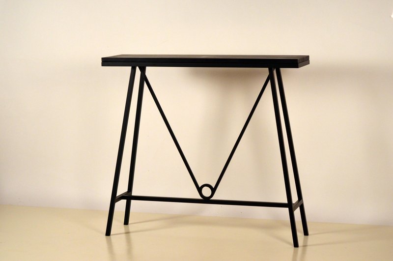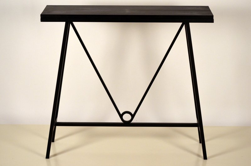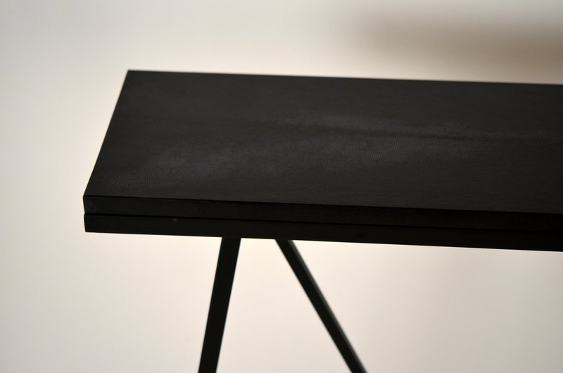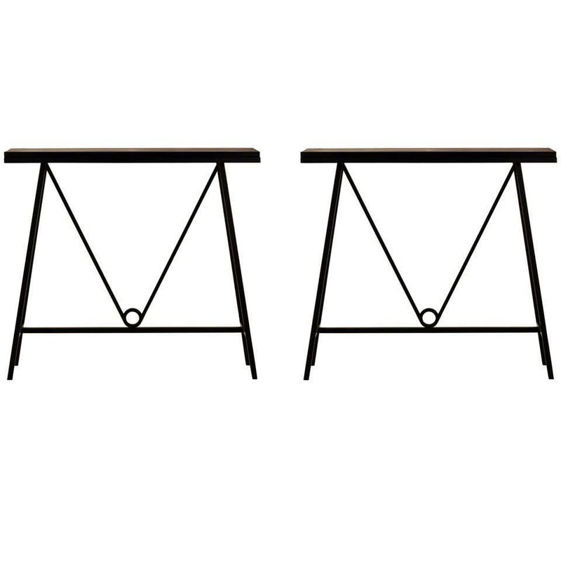 Trapèze Blackened Steel and Goatskin Consoles by Atelier Cabanel, Set of 2
