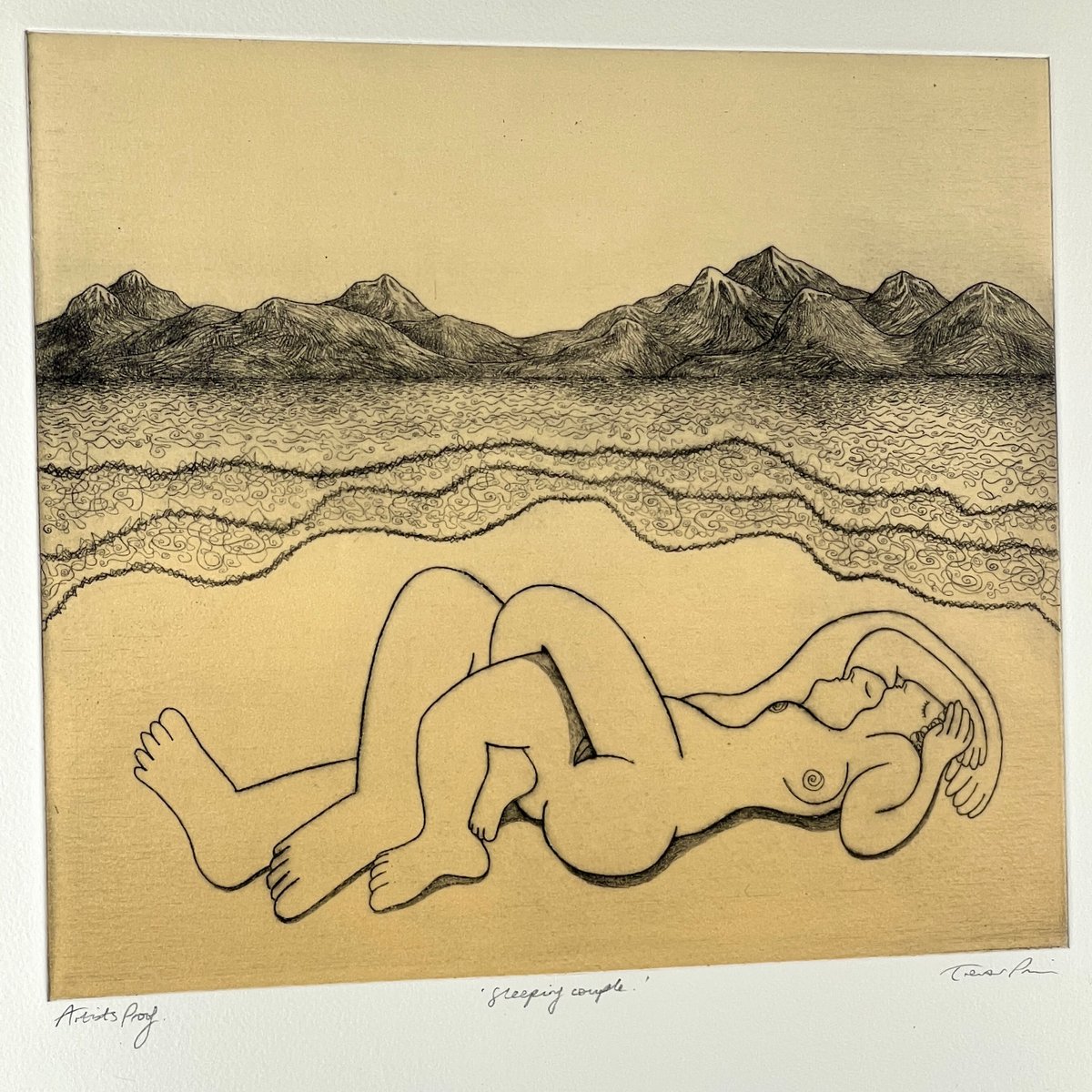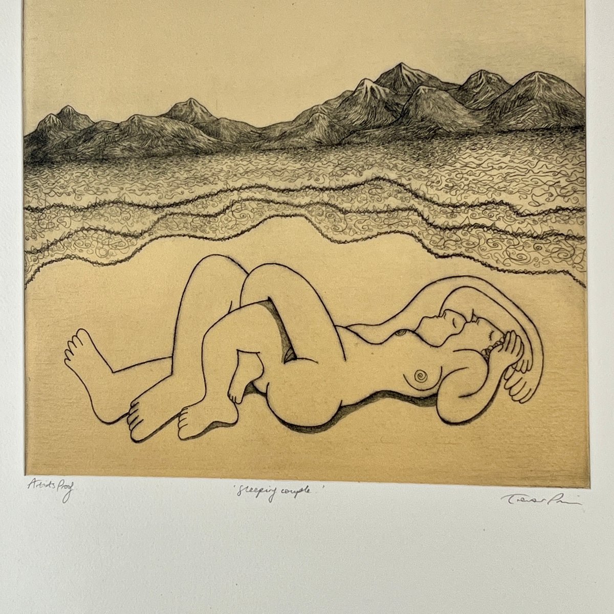 Trevor Price, Sleeping Couple, Drypoint and Etching, 2000s, Framed