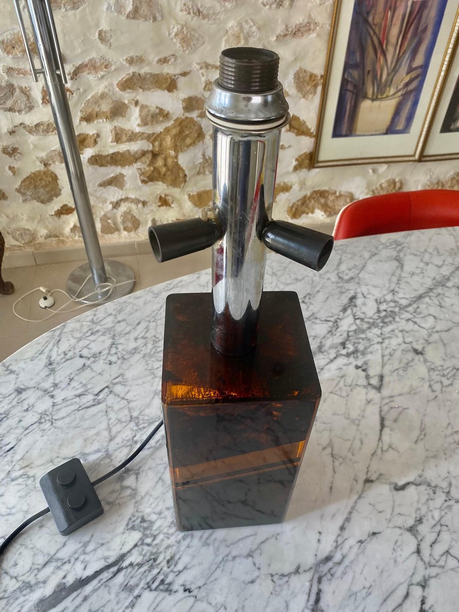 Turtle Shell Table Lamp in Chrome with 4 Bulbs, Italy, 1970s