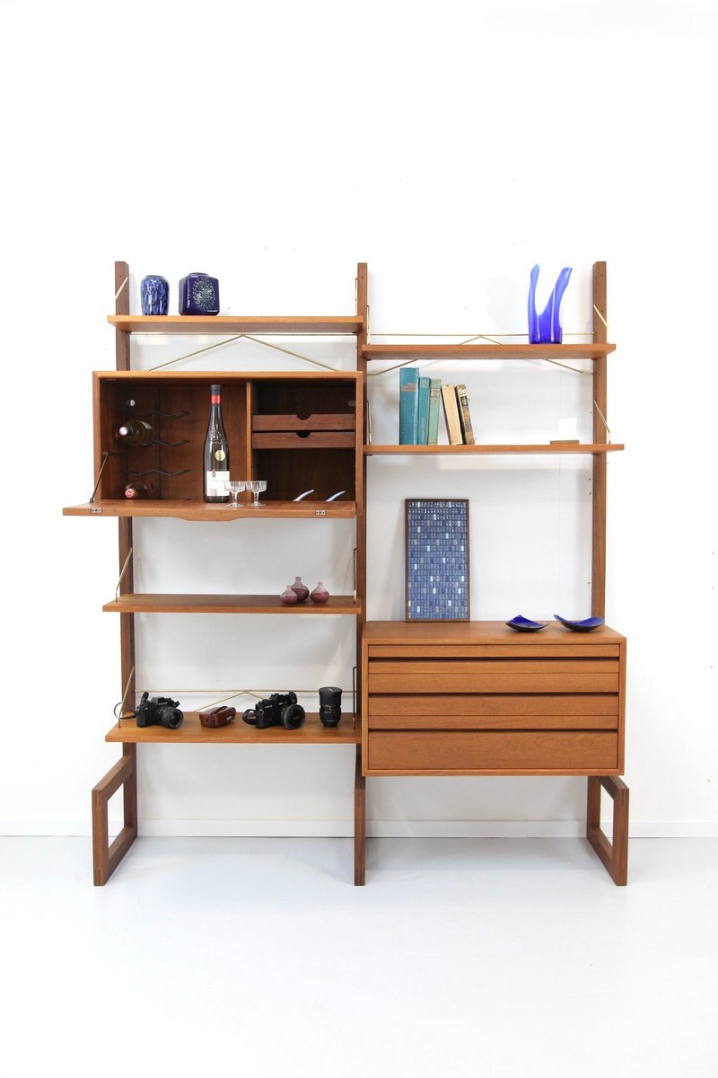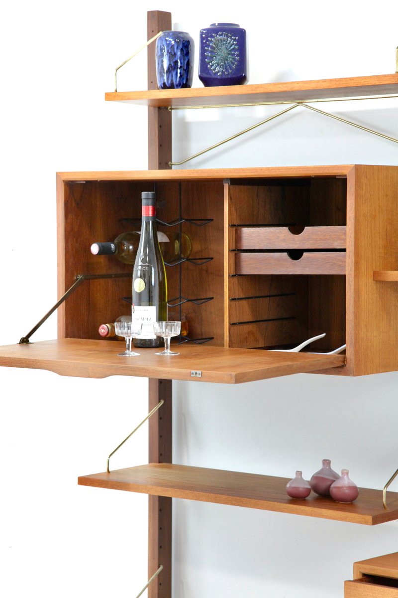 Two-Strip Freestanding Royal System Shelving System in Teak by Poul Cadovius, 1960s, Set of 10
