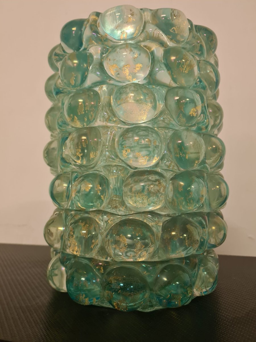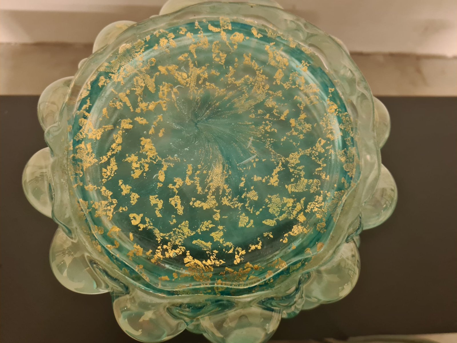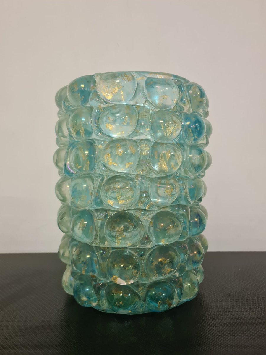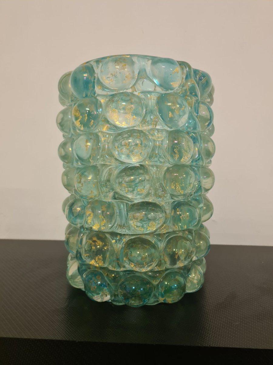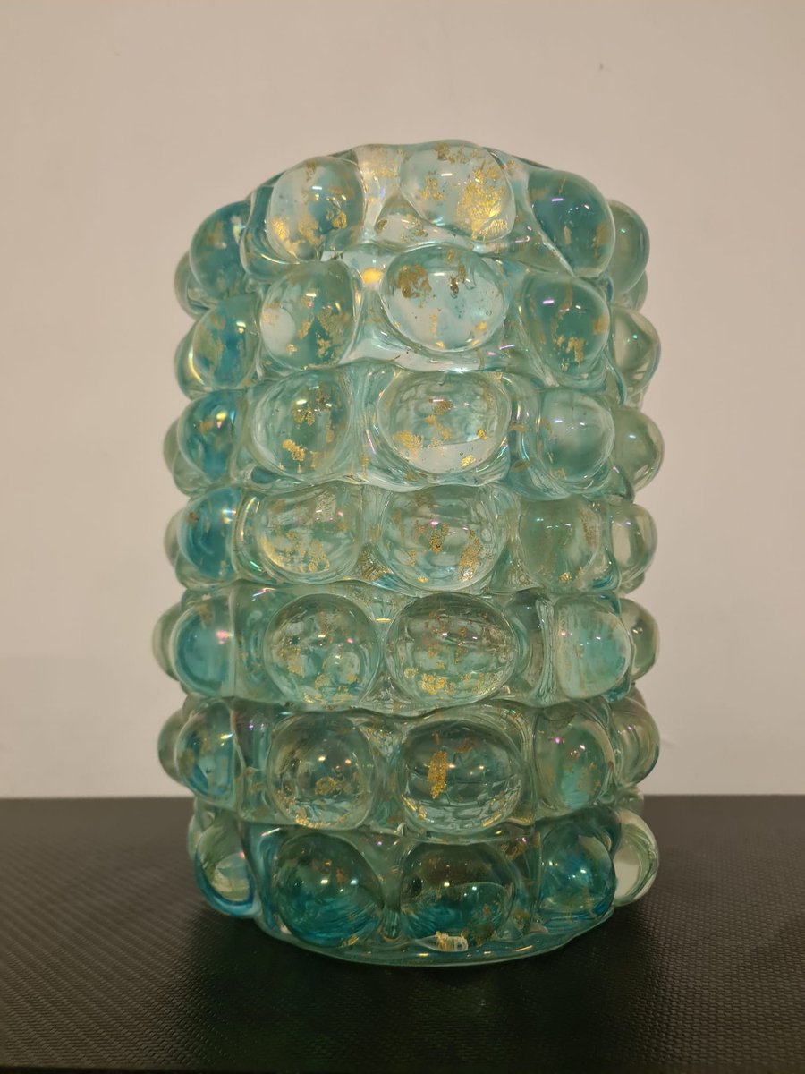 At the turn of the 20th century, the company—renamed Artisti Barovier in 1896—embarked upon a rich period of further innovation, introducing many major developments to the glass-making field. To appeal to a broader range of tastes, descendent Giuseppe Barovier and the Venetian artist Vittorio Secchin produced, into the interwar period, a motley of expressive designs using multicolored murrine: a glass type qua glassmaking process that Giuseppe revolutionized, in which molten glass is layered around a core, heated, stretched, cooled, then sliced like a babka loaf, to reveal a pattern inside. Among the rarest and most significant Barovier pieces today, these Art Nouveau-inspired designs often featured peacocks, flowers, and landscape views and include the iconic vases exhibited at the Mostra dei Fiori at Pallazo Ducale in 1914.