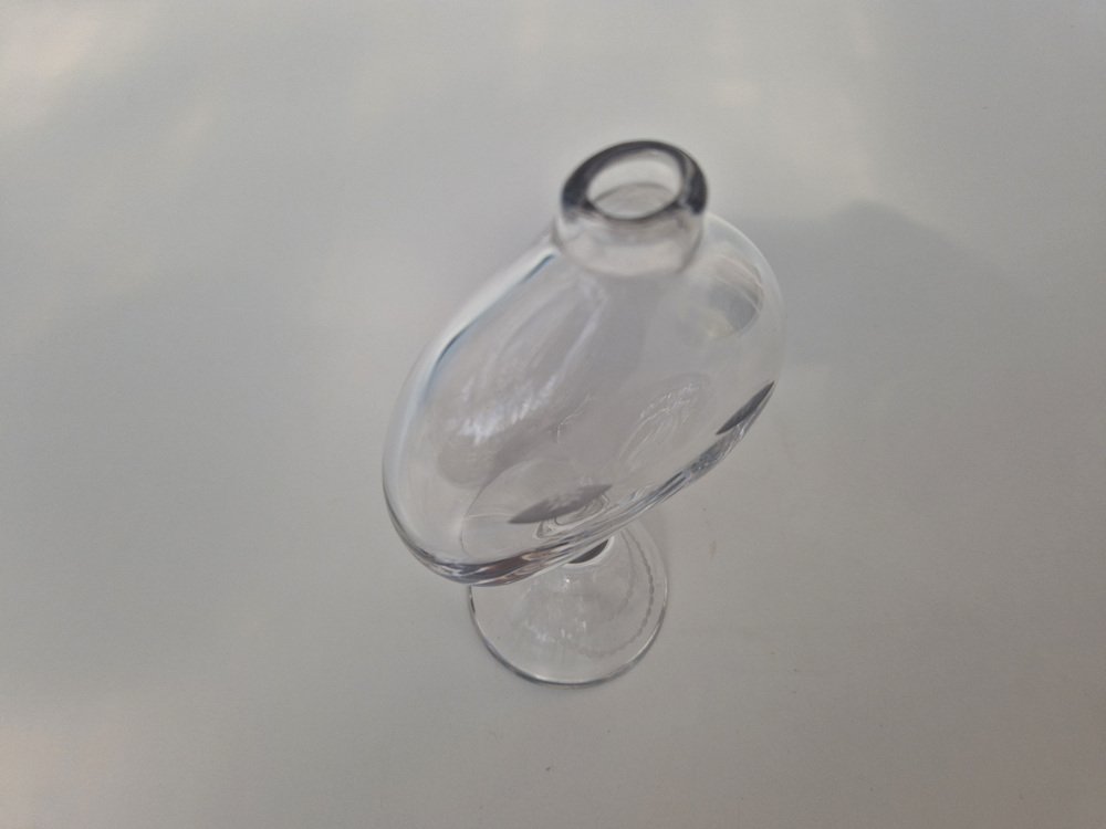 In 1942, Lindstrand left Orrefors to work for Uppsala-Ekeby, a ceramics manufacturer, where he designed groundbreaking pieces with simple lines and strong expressions, such as his Vase in Ceramic (ca. 1950s). After a 10-year tenure with the firm, he entered employment with Kosta glassworks—according to legend, Lindstrand’s Orrefors contract stated he was not allowed to work in the glass industry for 10 years after leaving. At Kosta, Lindstrand designed art glass similar to his Orrefors oeuvre, but he employed more color; among his most well-known pieces are his Höst Vase and his Atlantis Vases (both ca. 1950s), which depicted fishnet lines next to people or schools of fish.