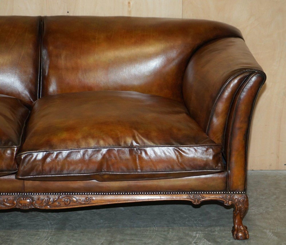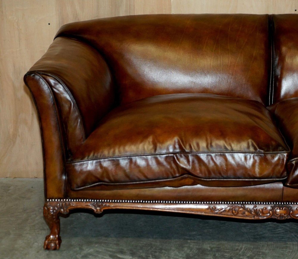 Victorian Claw & Ball Foot Brown Leather Chesterfield Sofa from Howard & Sons