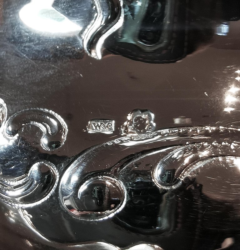 Hallmarks: Diana head - Viennese official hallmark 1872-1922 for 800 silver 'W&C' in rectangle - master's sign of WÜRBEL & CZOKALLY - Silver goods factory 1860/62-1922, Participation in exhibitions in the arts and crafts, collaboration with well-known Austrian artists. Bibliography: Waltraud Neuwirth, Viennese gold and silversmiths and their hallmarks 1867-1922, Lexicon L-Z, Vienna 1976, page 288f. Made circa 1900 Dimensions: Height: 43,0 cm / 16.92 in Width: 34,0 cm / 13.38 in Depth: 27,0 cm / 10.62 in Total weight: 2625 Grams / 92.4 oz / 84.4 troy OZ Very well-maintained condition, silver cleaned and polished.