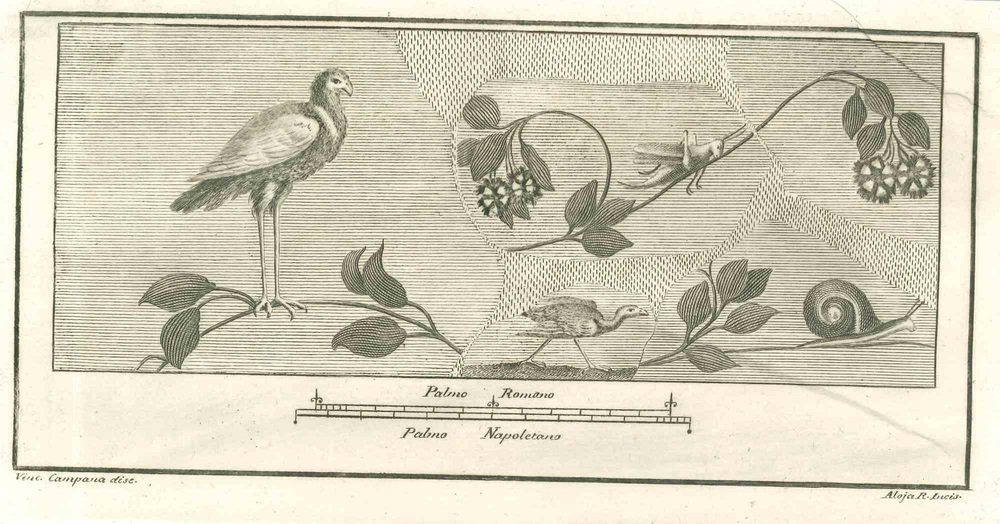 Vincenzo Campana, Birds Pompeian Fresco, Etching, 18th Century