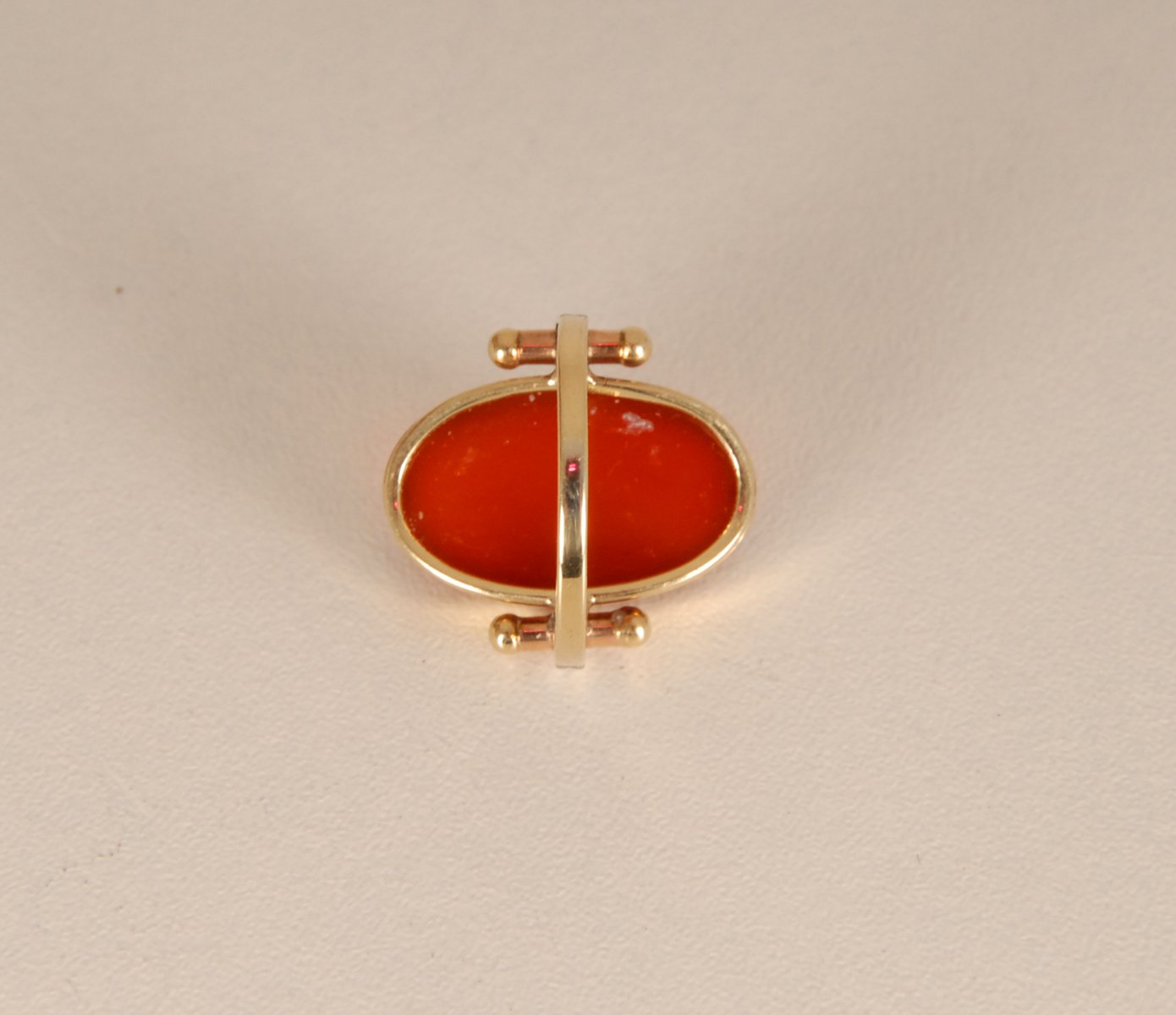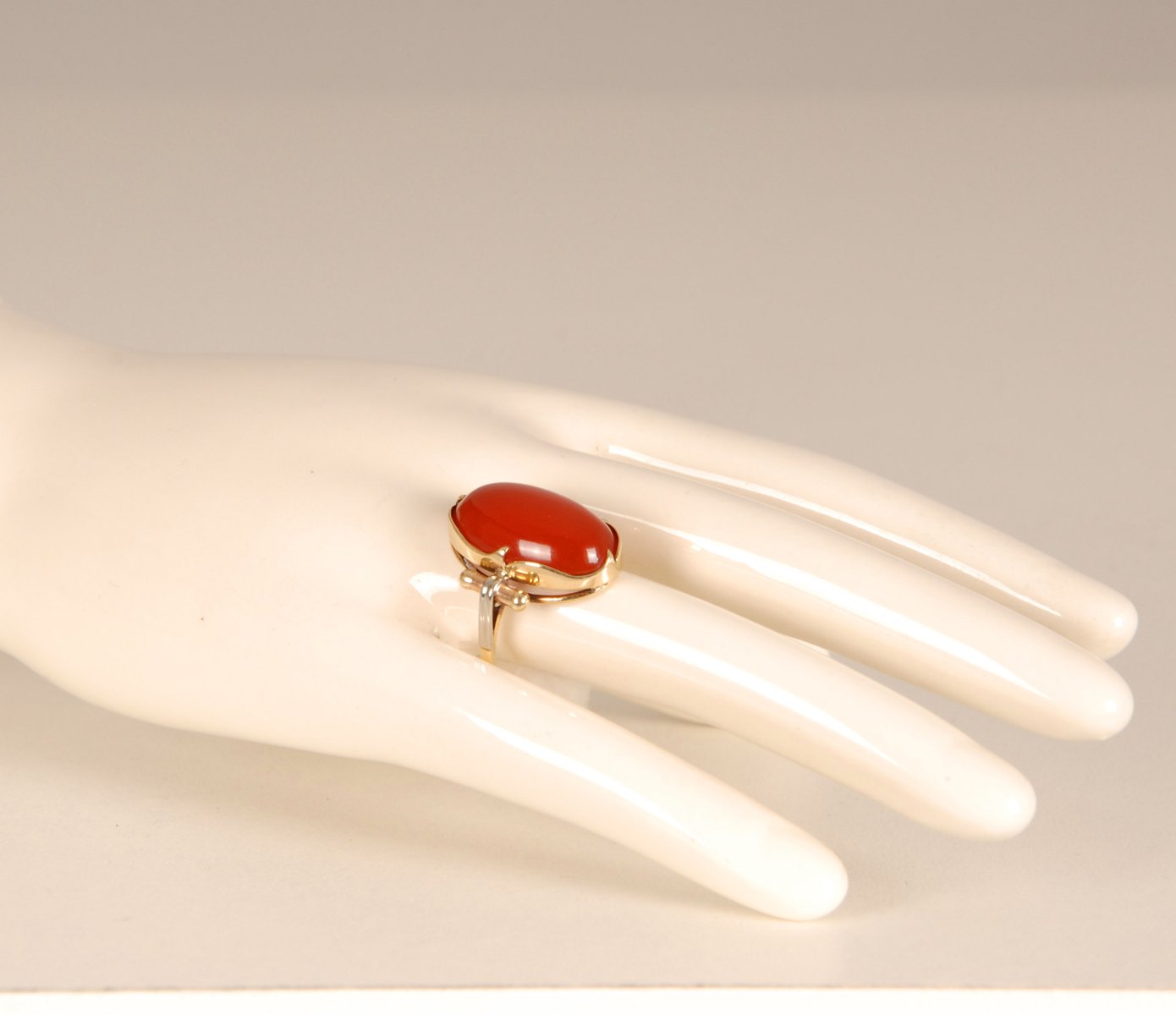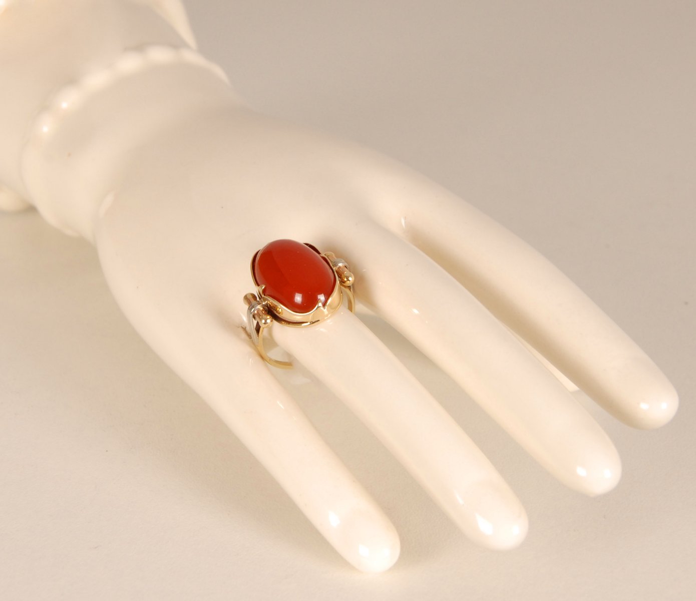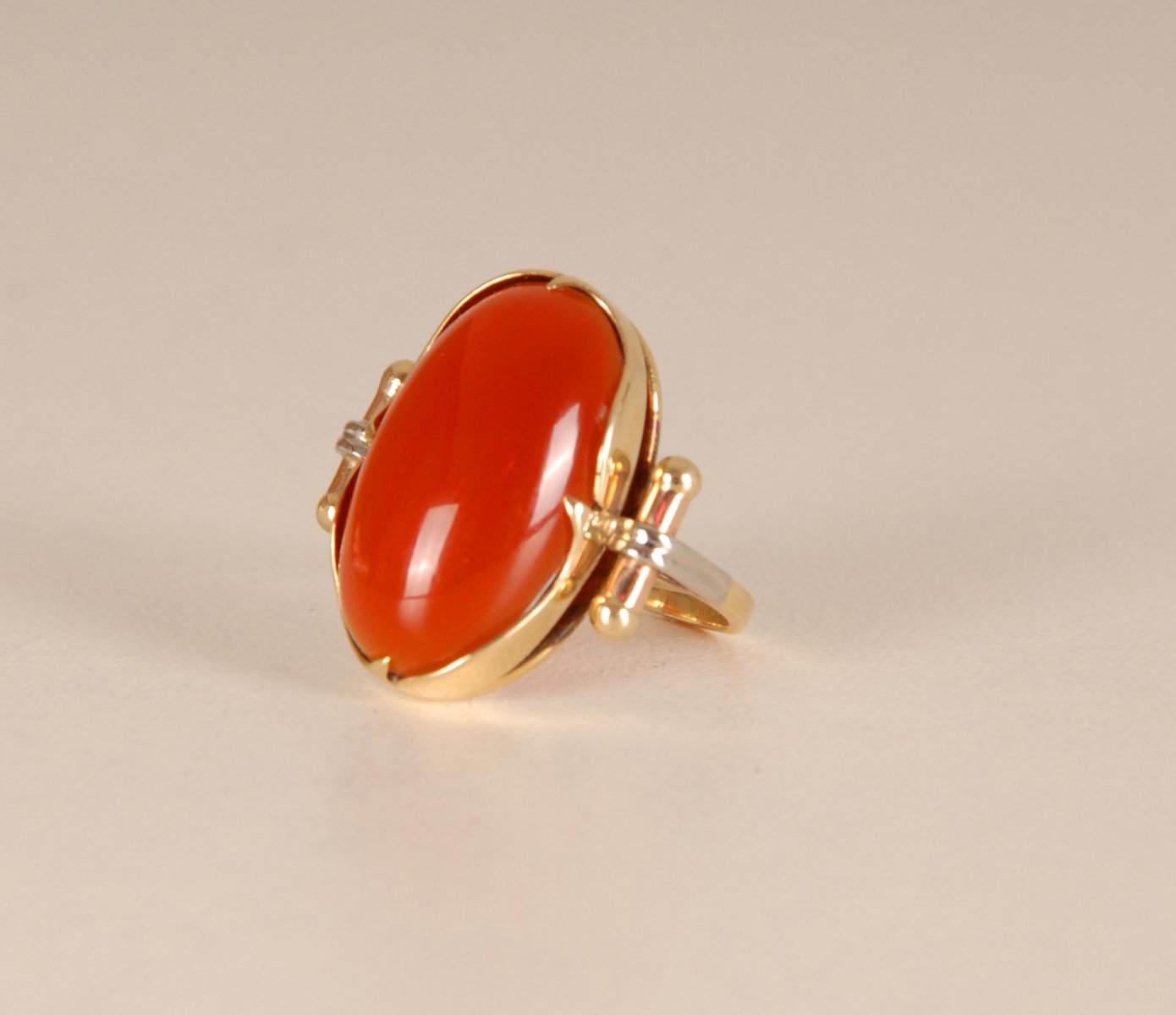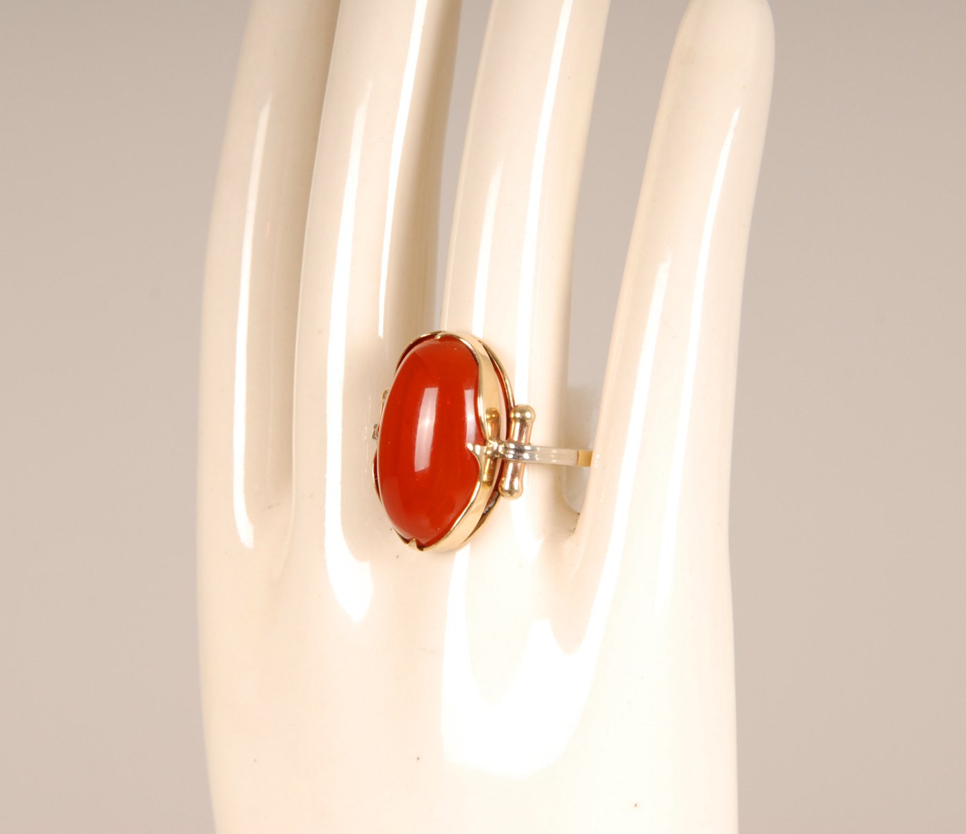 Vintage 14K Yellow Gold Statement Ring with Carnelian Agate Stone Cabochon Cut and White Gold Accent