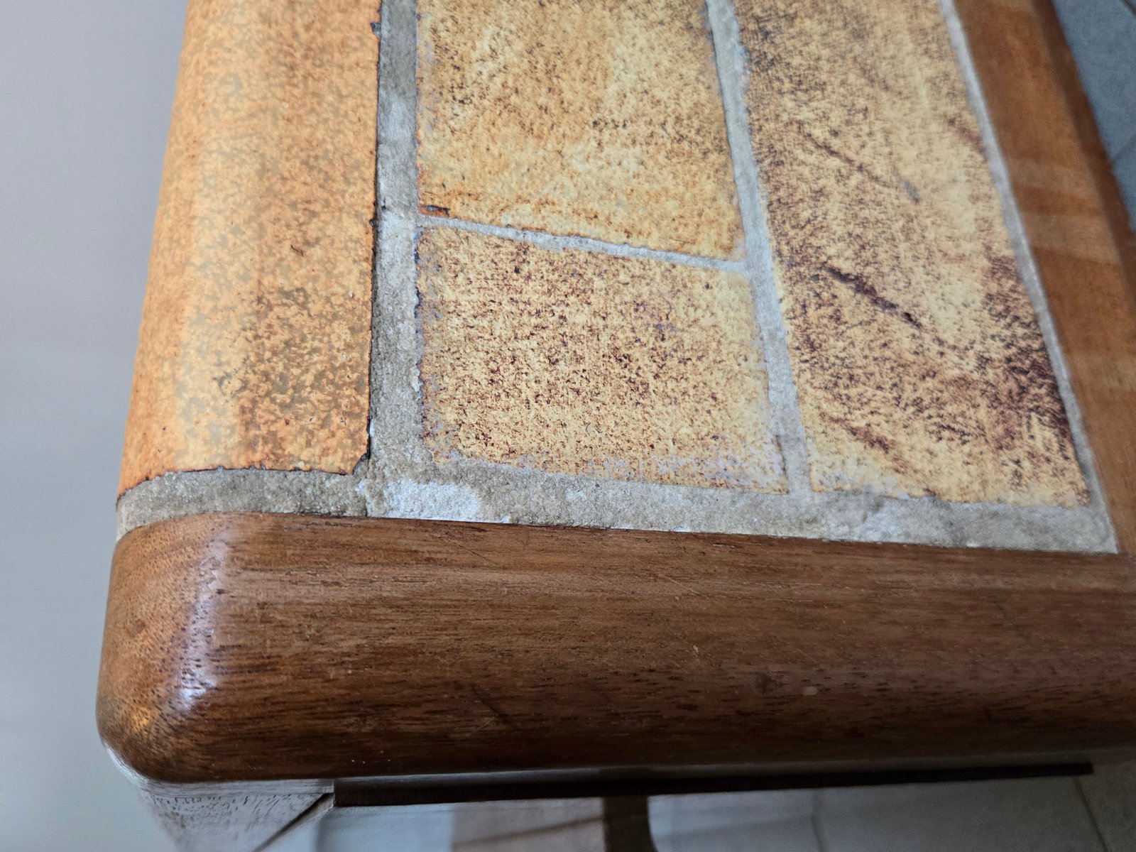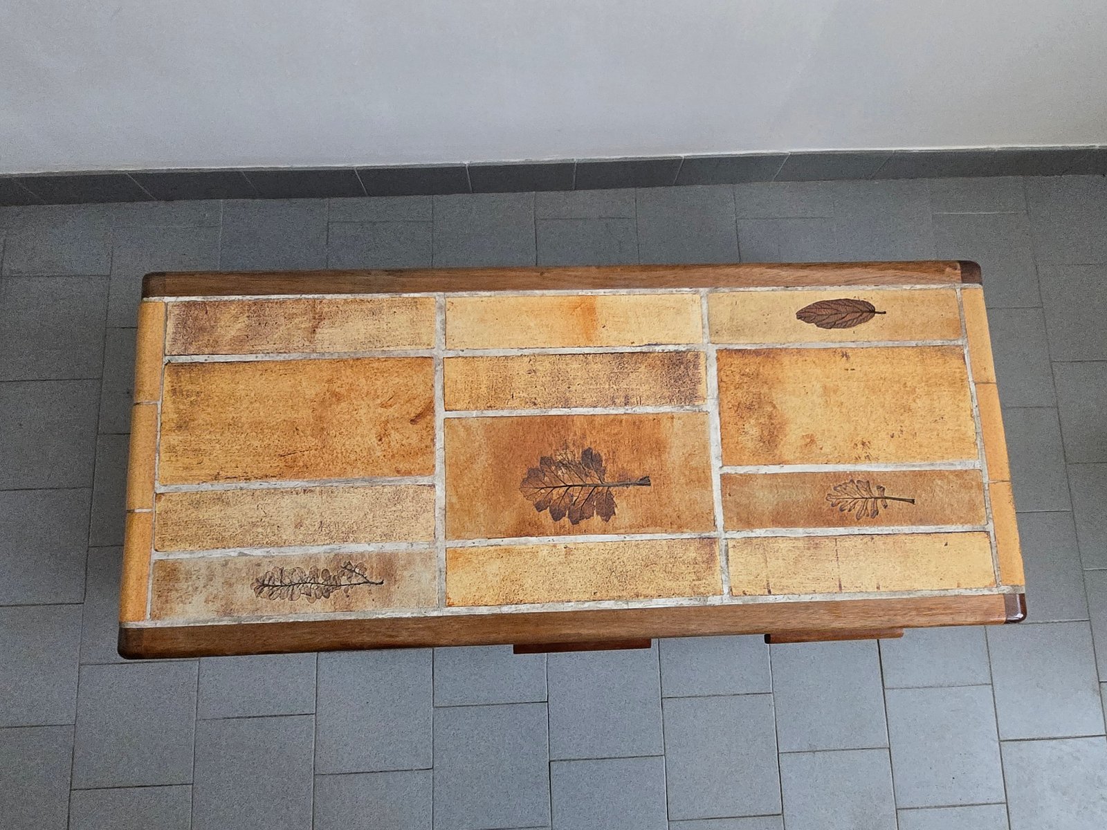 Vintage 3-Drawers Coffee Table in Oak & Ceramic, 1970s