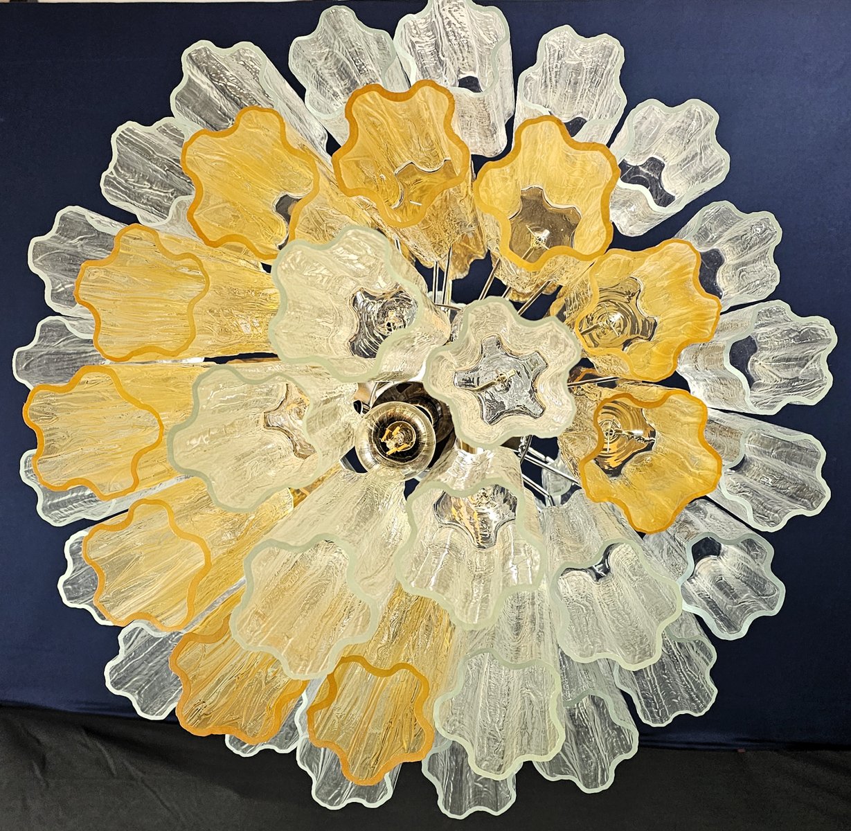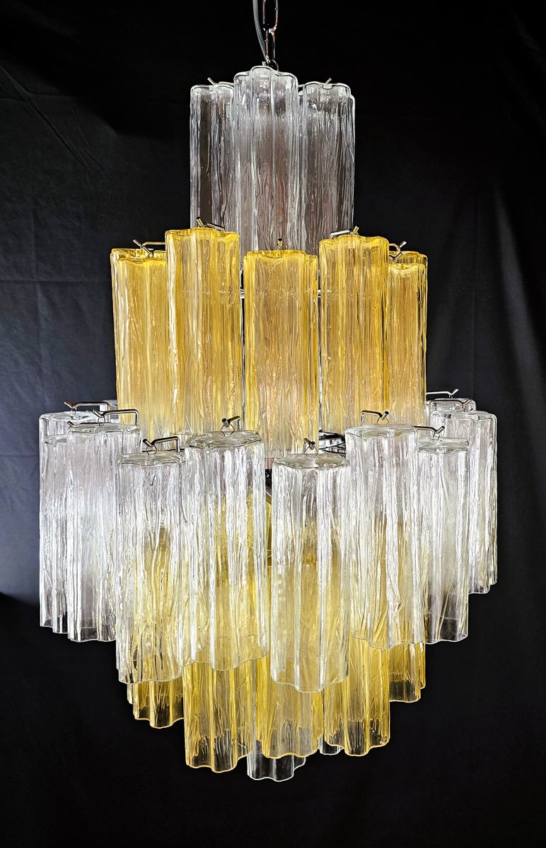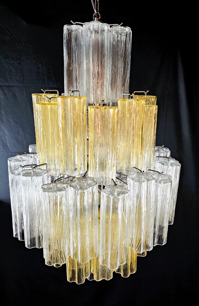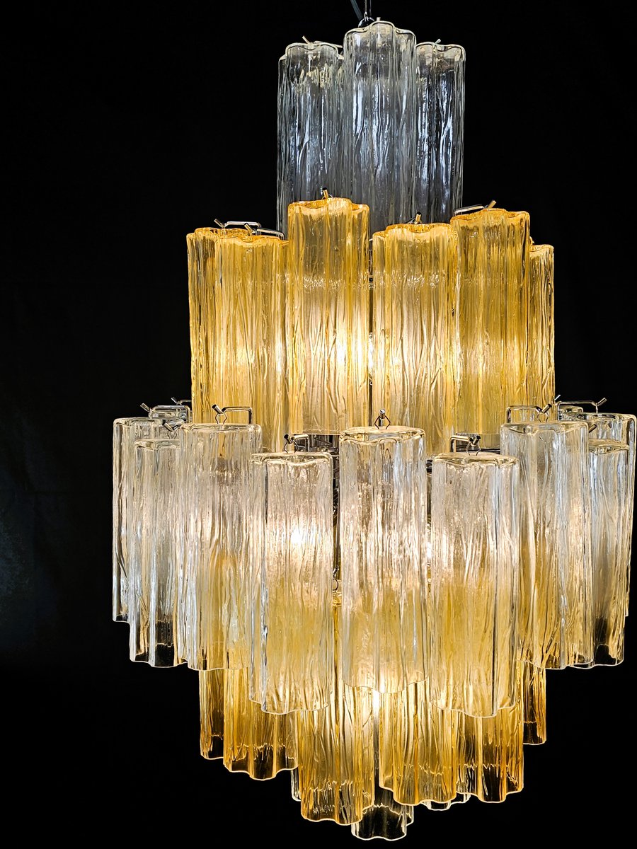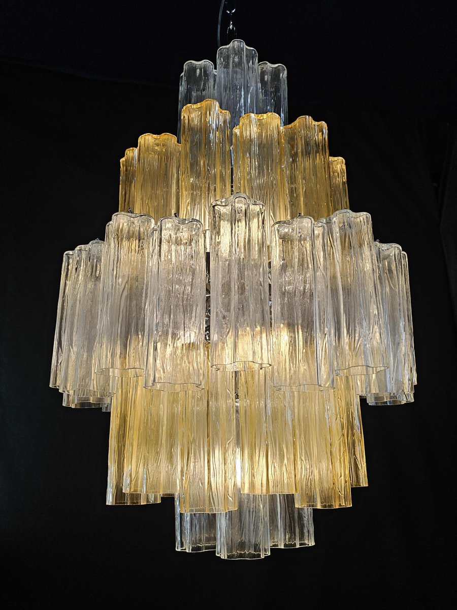 Vintage Amber and Crystal Murano Glass Chandelier, 1980s