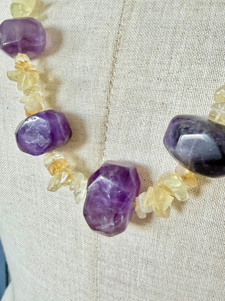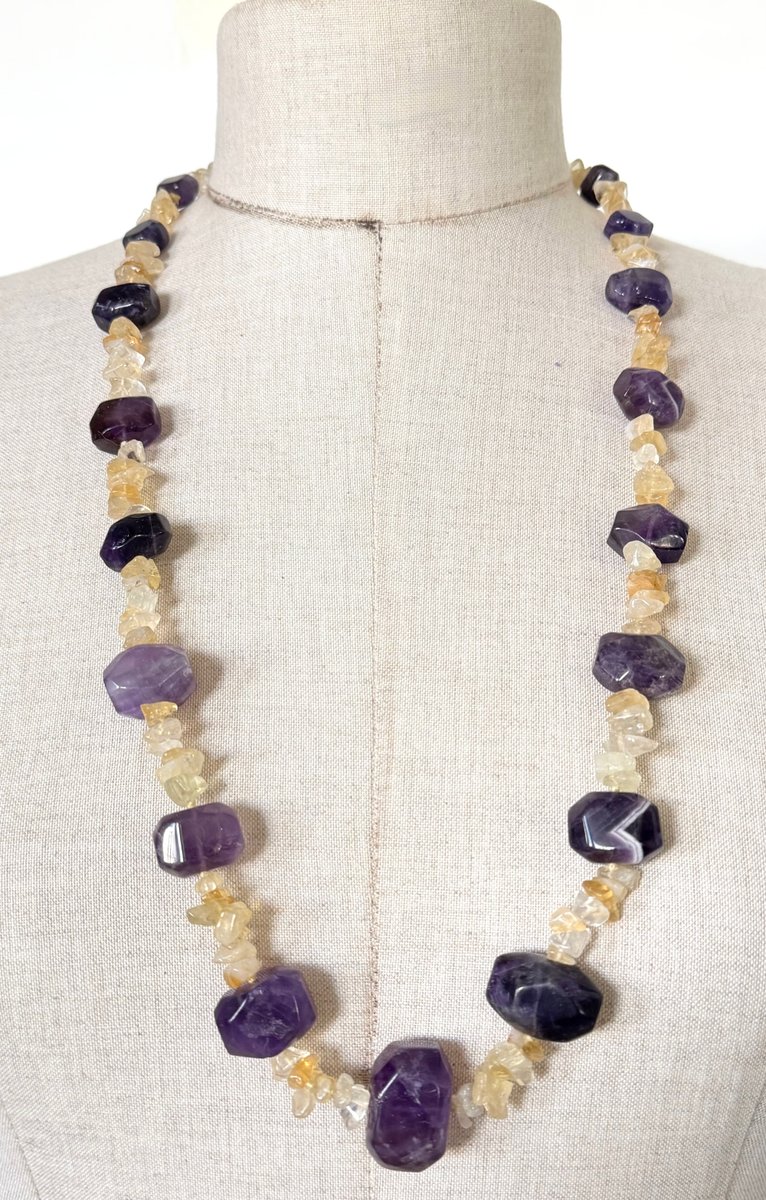 Vintage Amethyst and Citrine Quartz Necklace, 1970s