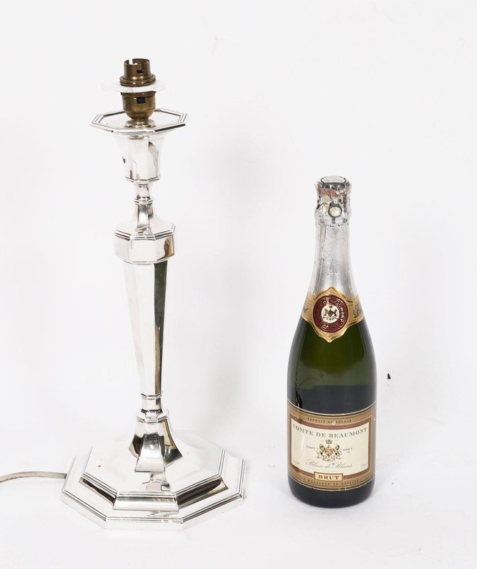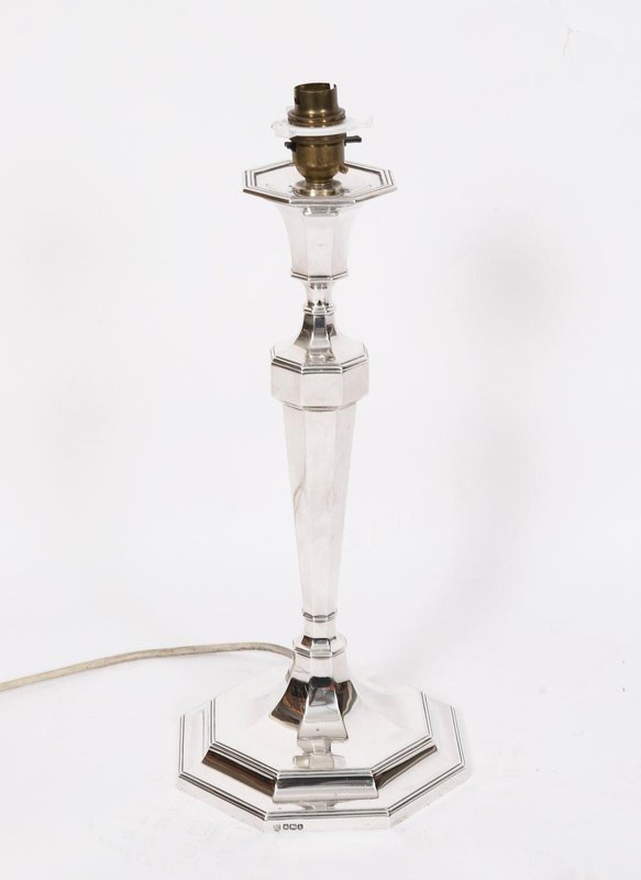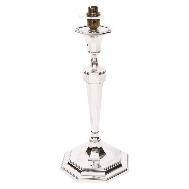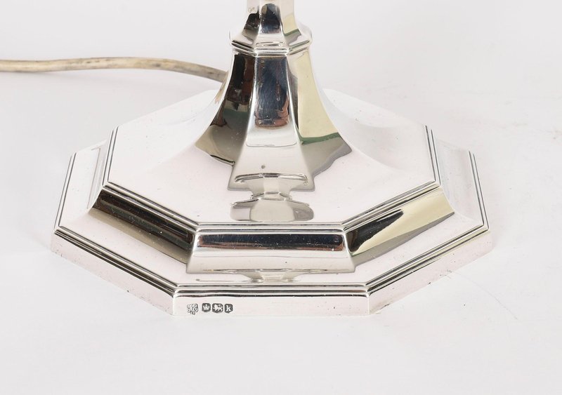 Vintage Art Deco Column Table Lamp in Sterling Silver, 1920s
