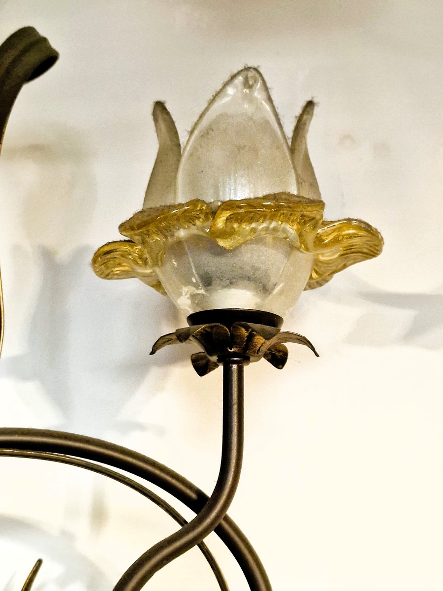 Vintage Amber and Crystal Murano Glass Chandelier, 1980s