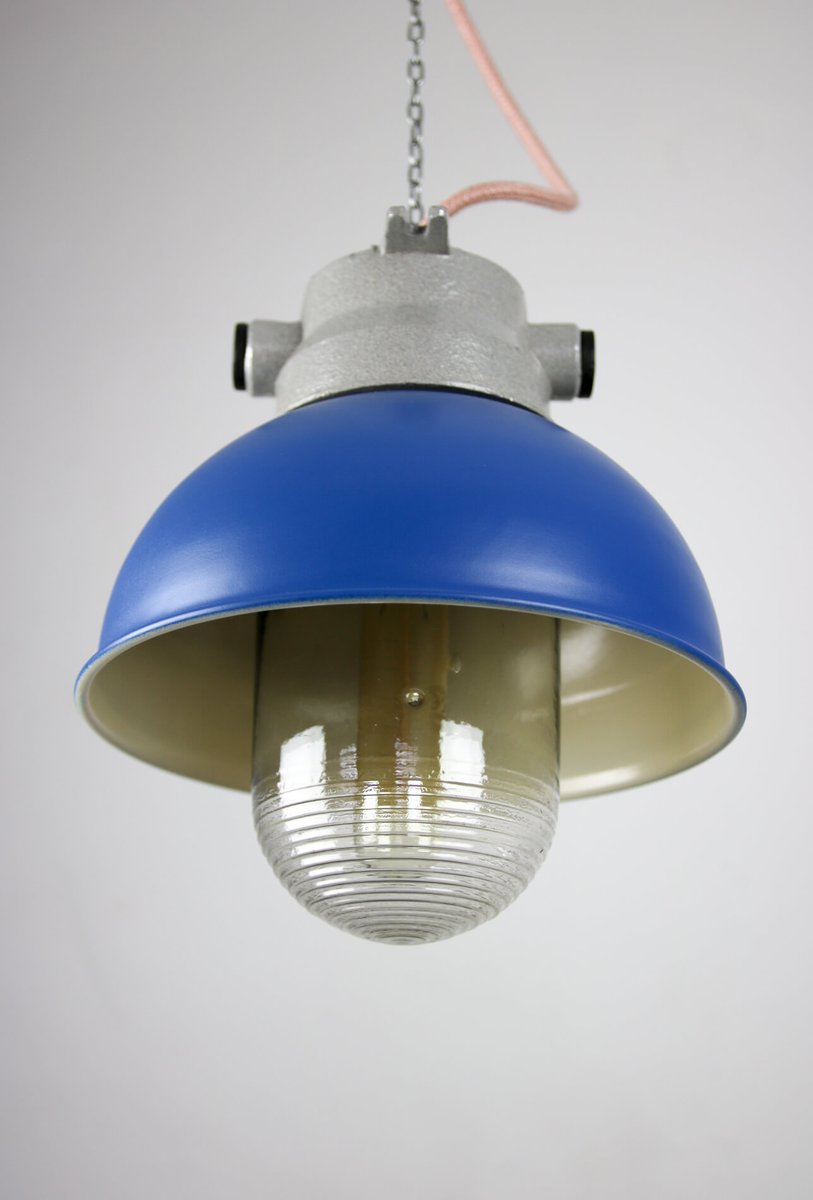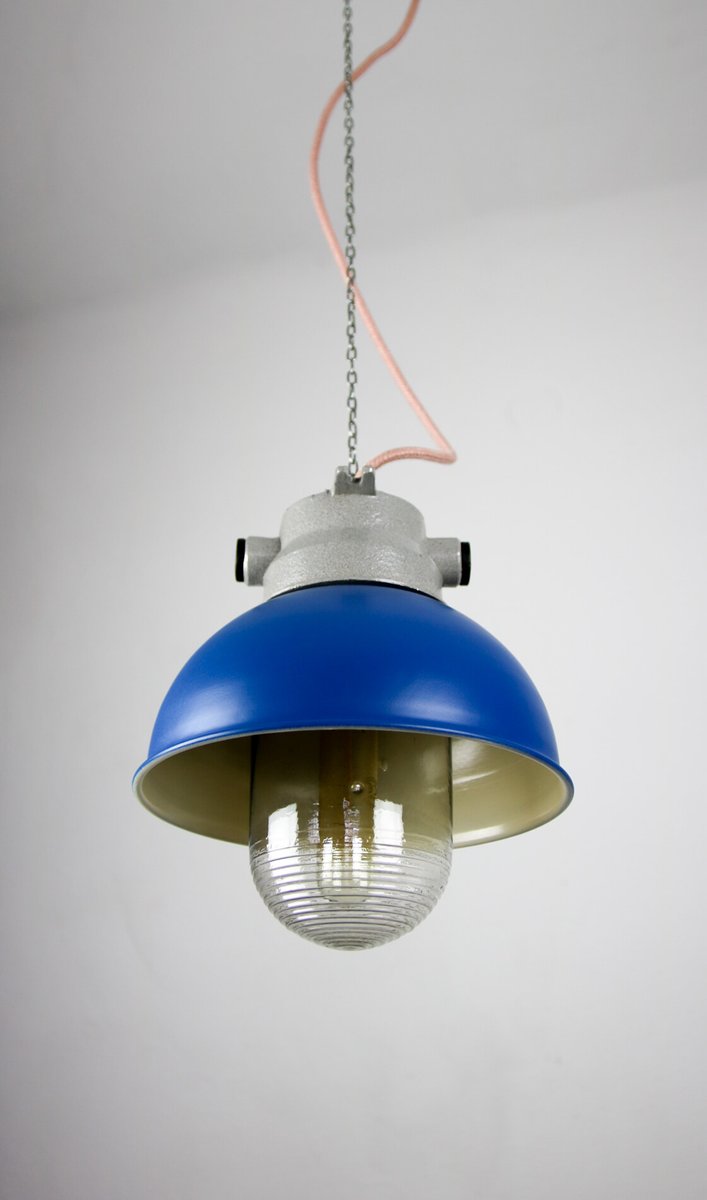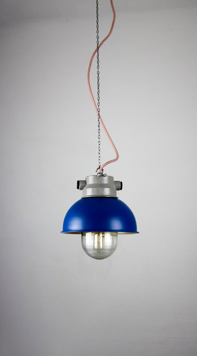 Vintage Blue Small Industrial Pendant Lamp from TEP