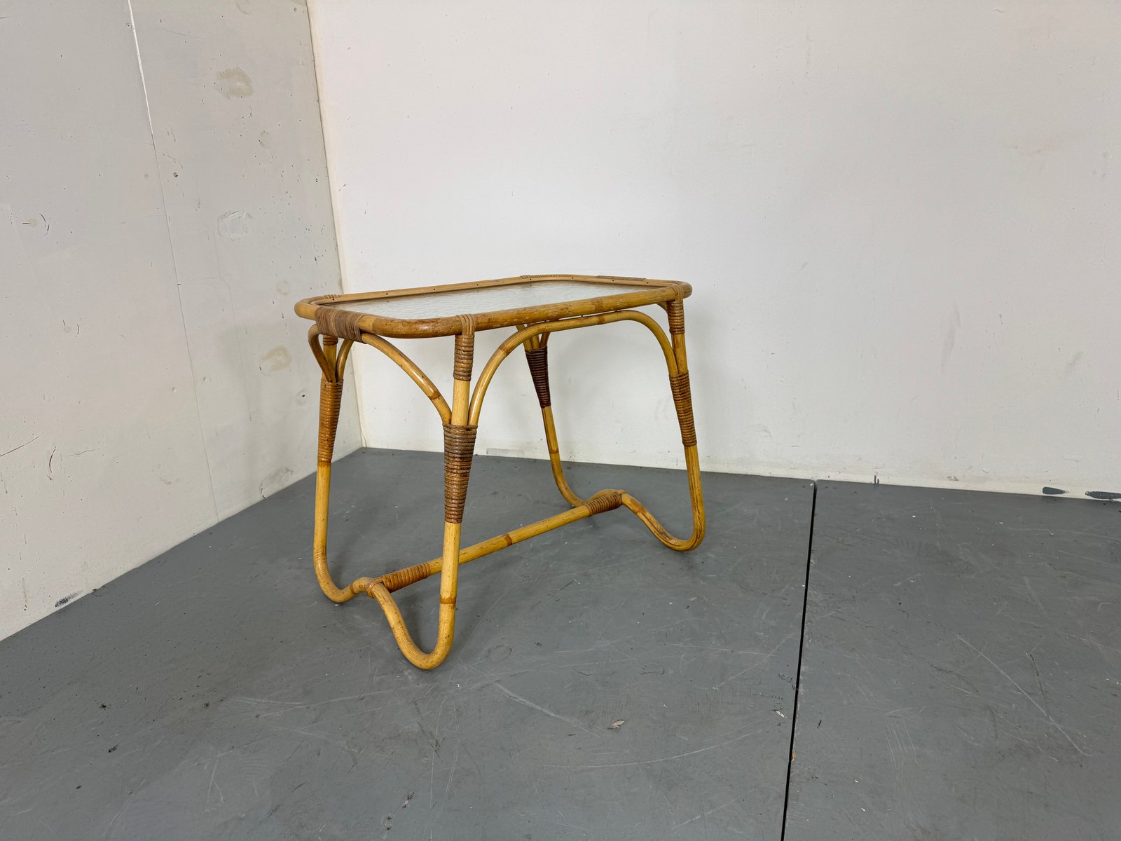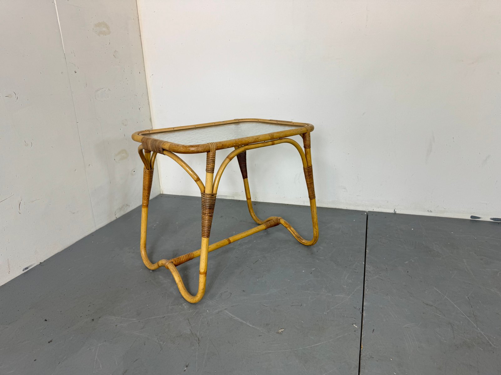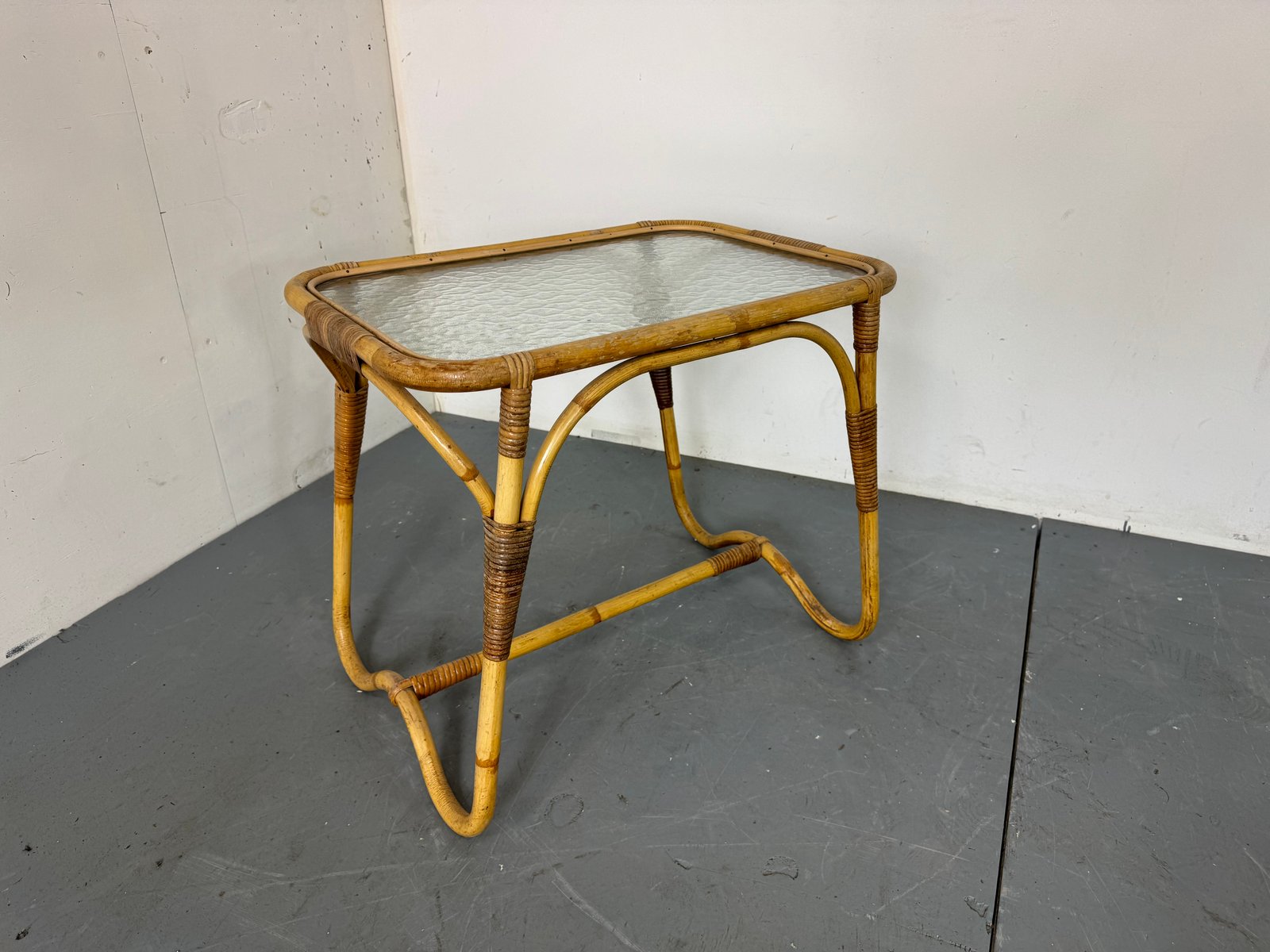 Vintage Bohémien Rattan Bamboo and Glass Side Table from Rohé Noordwolde, 1950s
