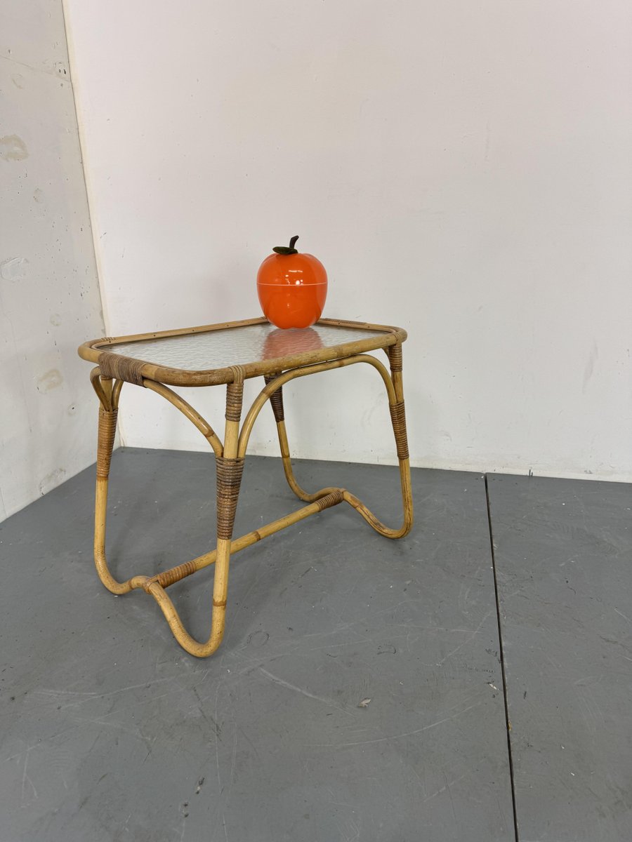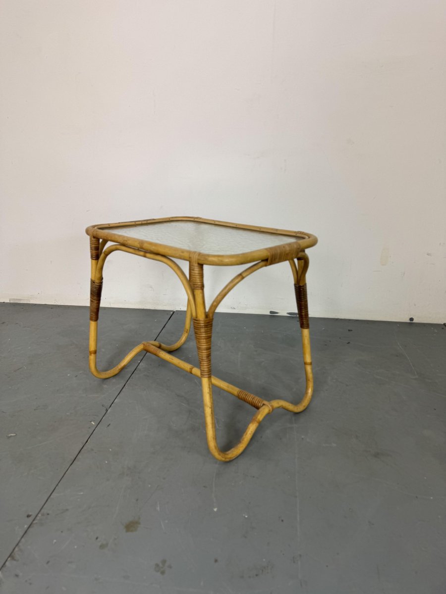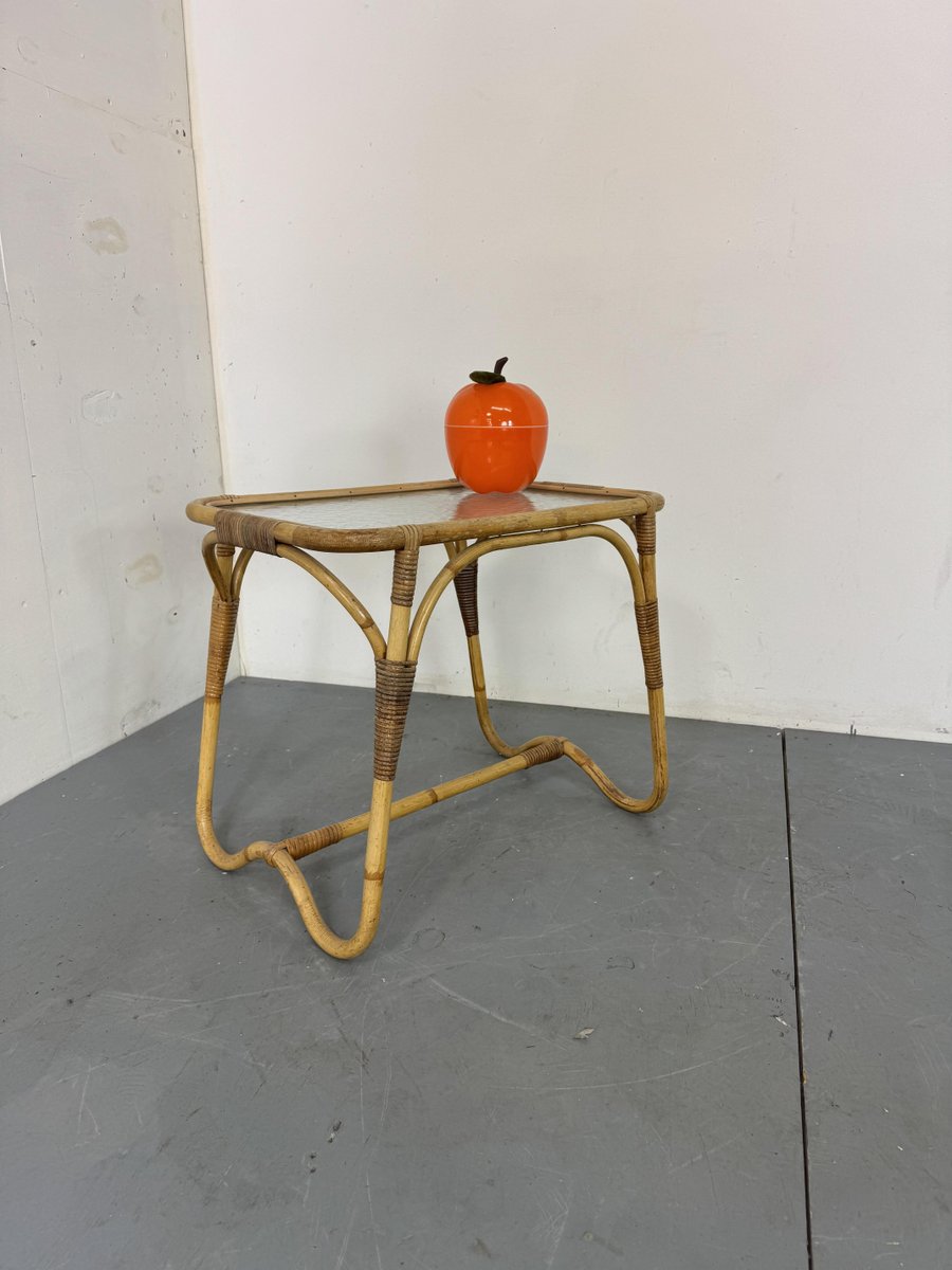 Vintage Bohémien Rattan Bamboo and Glass Side Table from Rohé Noordwolde, 1950s