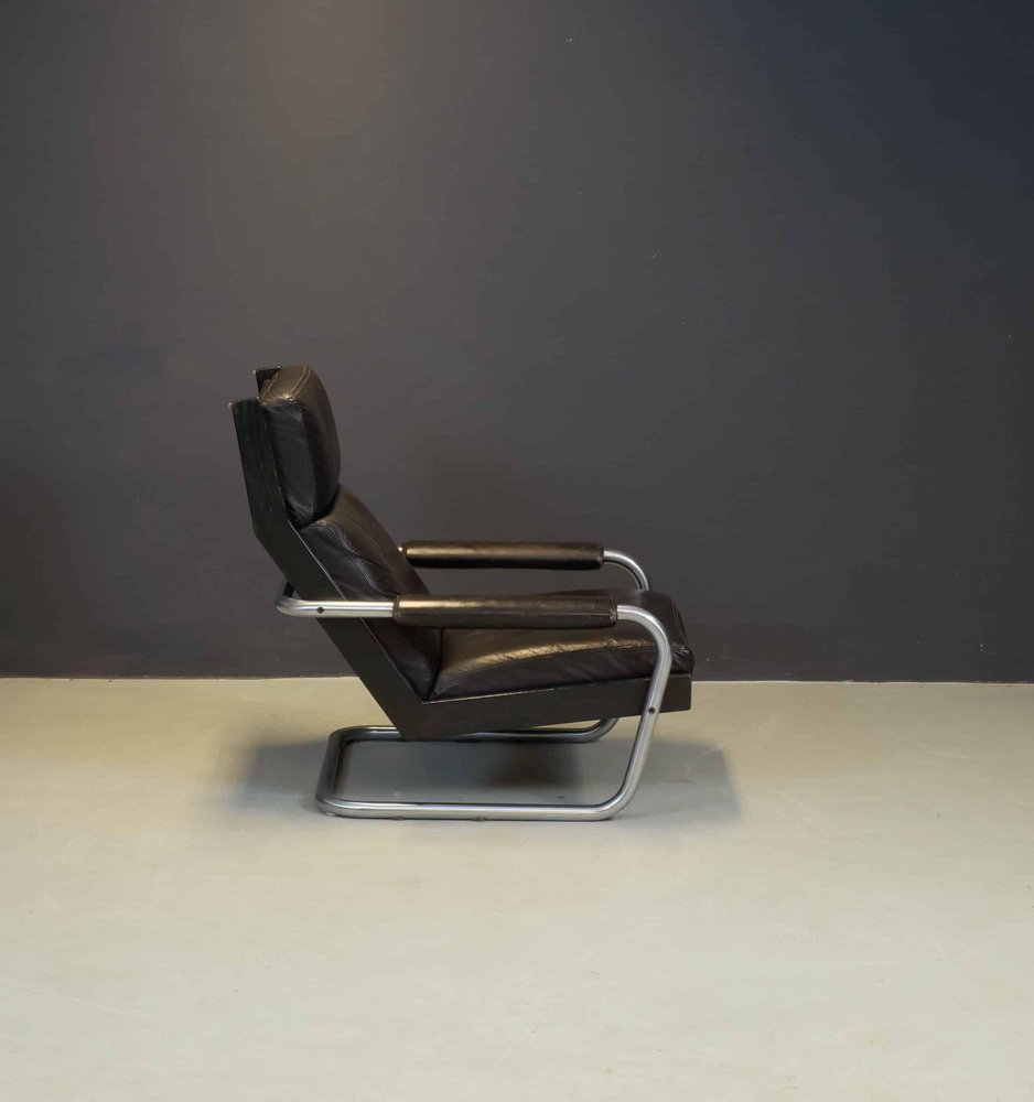 Parry continued to design interiors, furniture, stands, exhibitions, jewelry, lettering, and toys until 1995. He lectured at Willem de Kooning Academy in Rotterdam for thirty years. Parry’s midcentury designs are not well known today, because most were created for special projects and were never serially produced. Examples include a Plexiglas dining chair (1947) molded in the form of the human body, a magazine rack made from a single sheet of bent aluminum (1947), an armchair with an adjustable back (1950), and a multi-functional, shifting piece of furniture that functioned as an armchair, sofa, and bed all-in-one (1959). Parry’s characteristically postwar Dutch work tends toward strong lines and simple silhouettes and can be found in the collections of the Stedelijk Museum in Amsterdam, Boijmans Van Beuningen Museum in Rotterdam, the Museum for Communication in The Hague, and the Stedelijk Museum in ’s-Hertogenbosch. In 2006, Rotterdam’s VIVID Gallery presented a retrospective exhibition of Parry’s work.