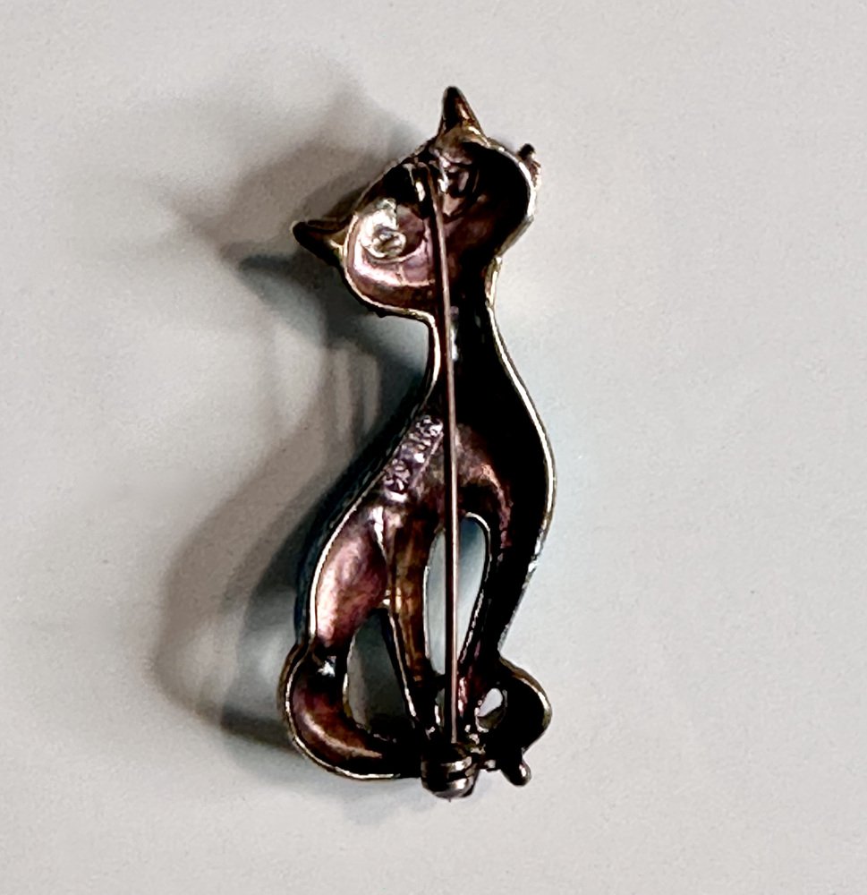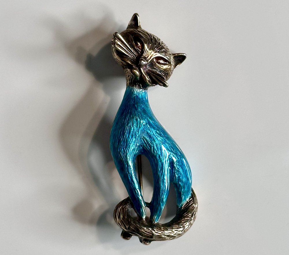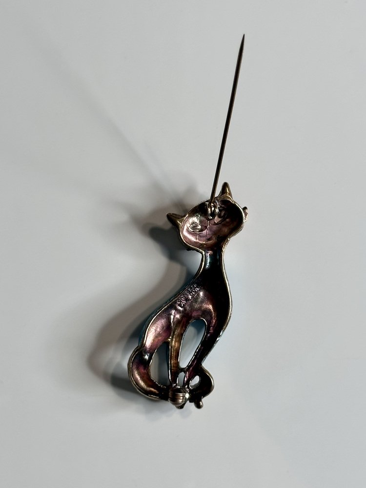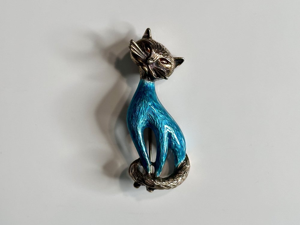 Vintage Cat Brooch in Silver and Enamel from Finn Jensen, Norway, 1960s