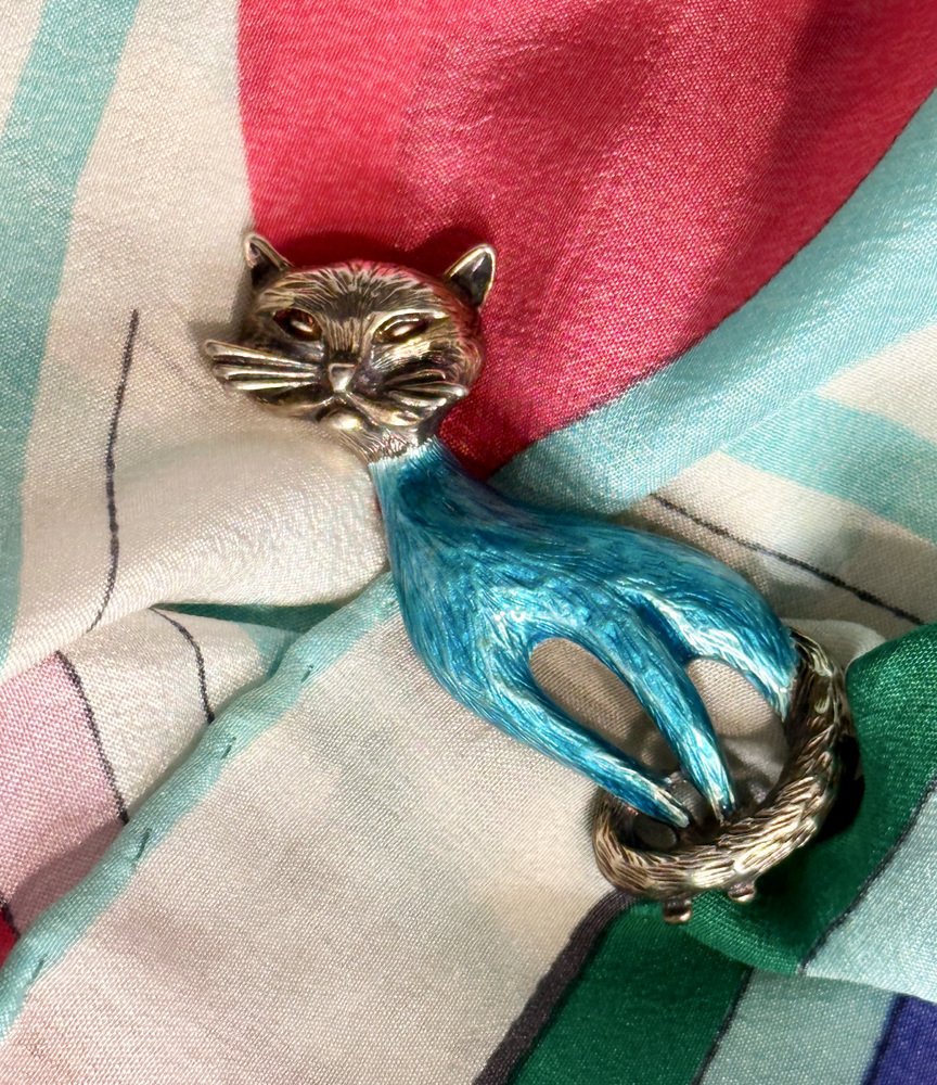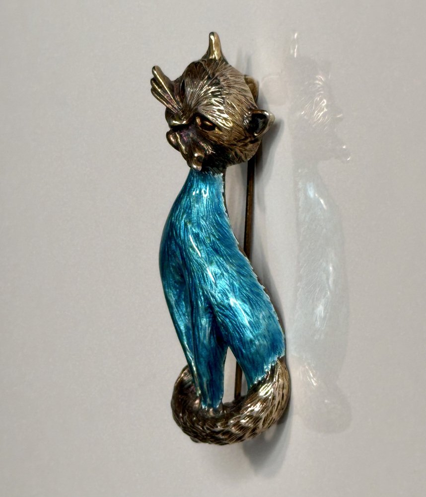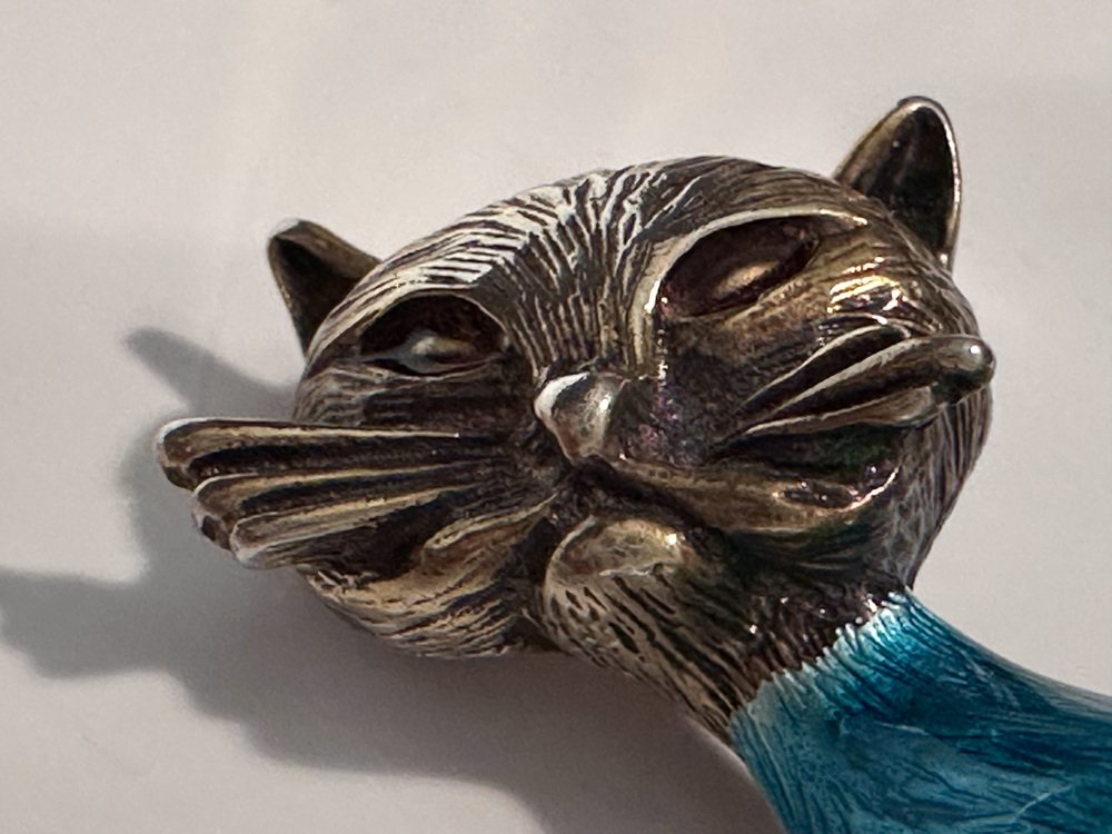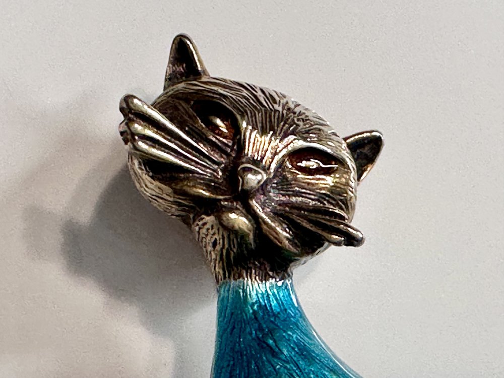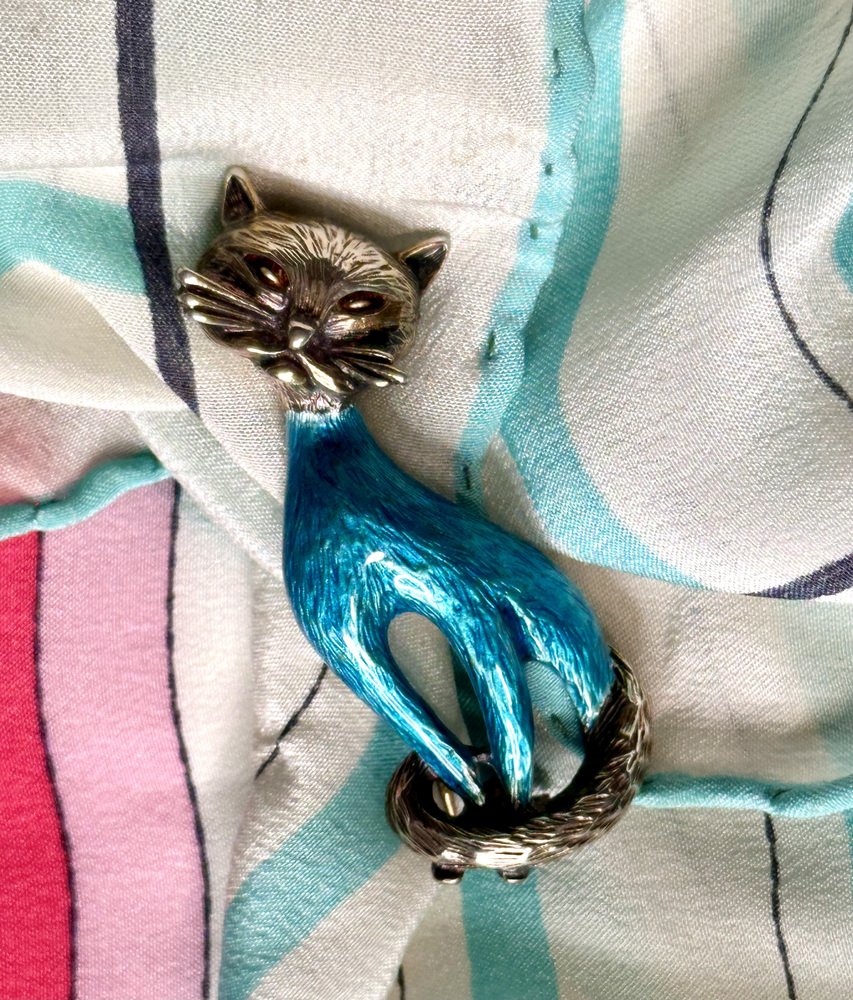 Vintage Cat Brooch in Silver and Enamel from Finn Jensen, Norway, 1960s