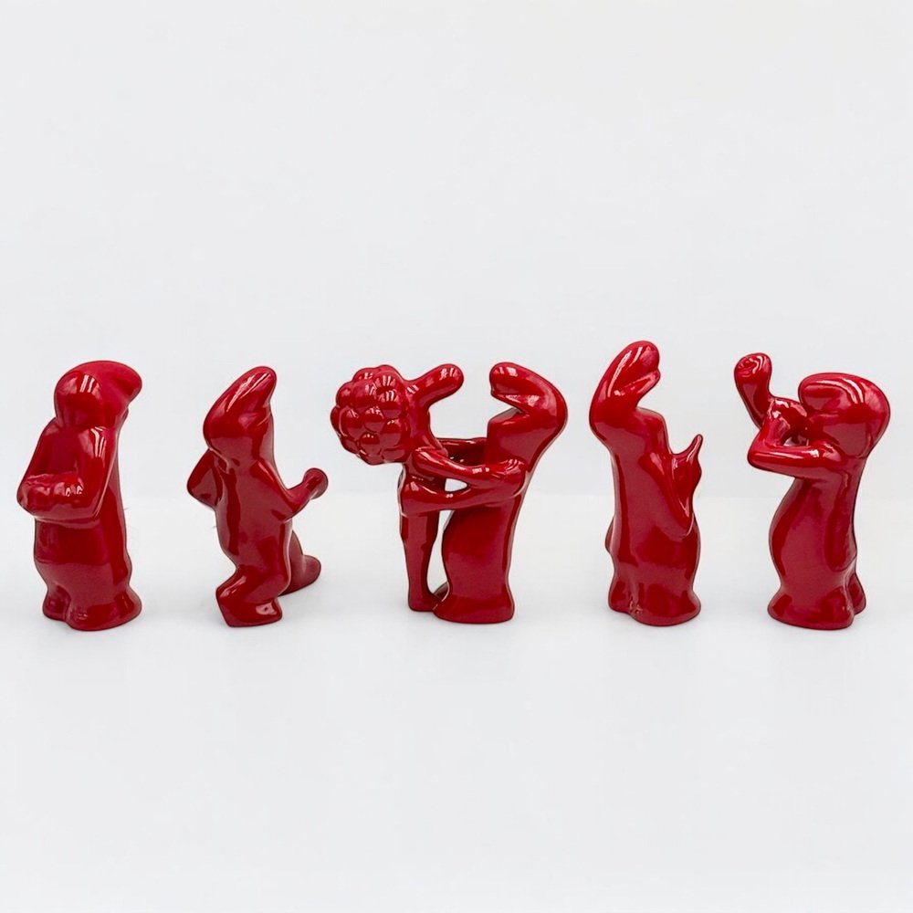 Vintage Ceramic La Linea Figurines in Red by Osvaldo Cavandoli, 1960s, Set of 5