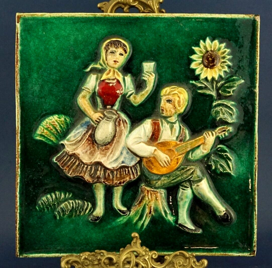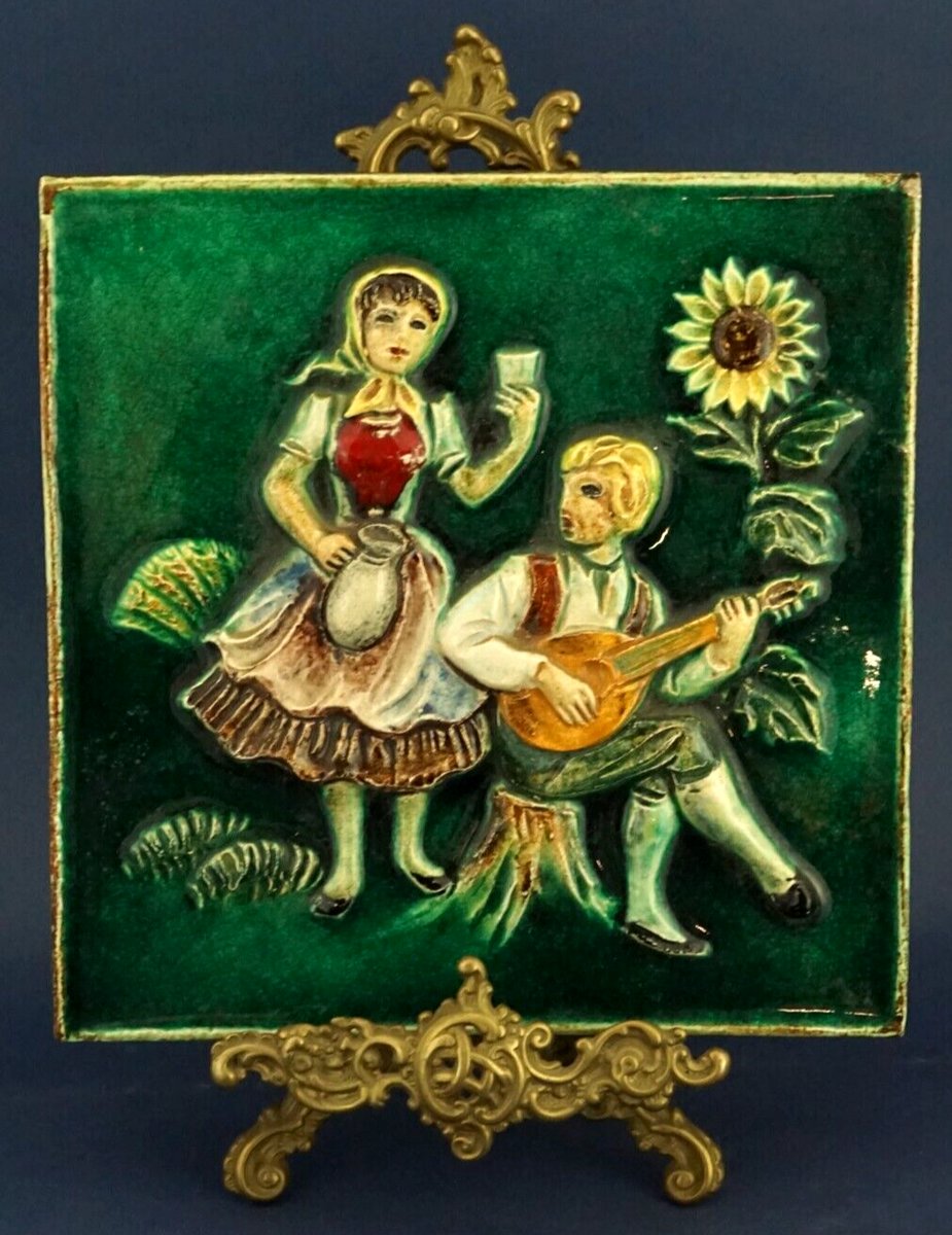 Vintage Ceramic Plaque from Karlsruher Majolika, 1930s