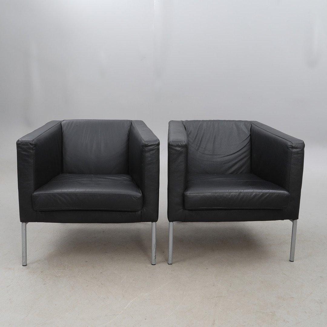 Vintage Chairs in Black Leather with Metal Frames from Ikea, 2000, Set of 2