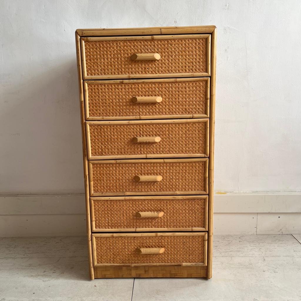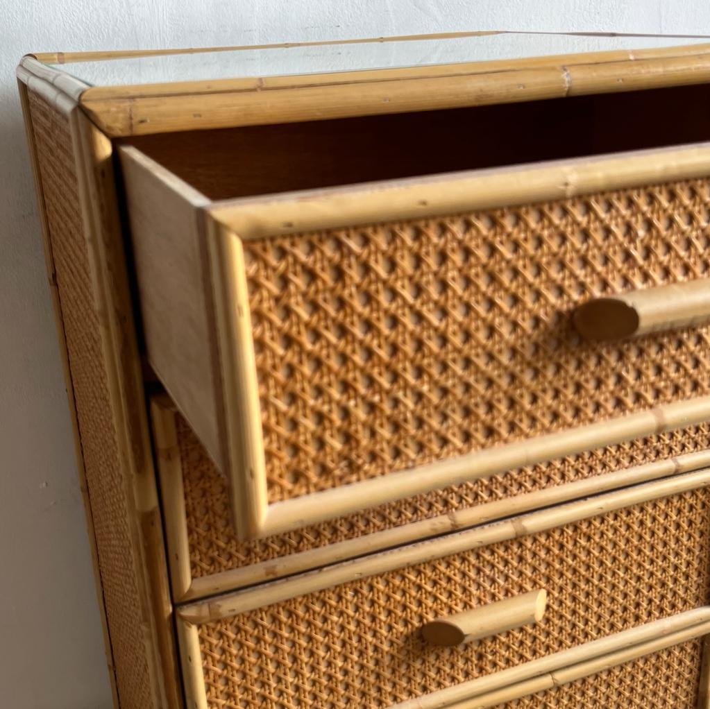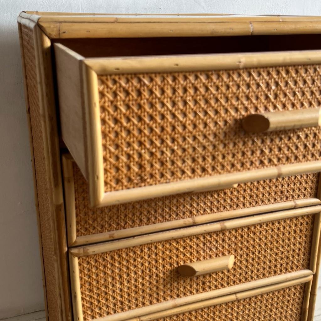 Vintage Chest of Drawers in Cane and Bamboo, 1970s