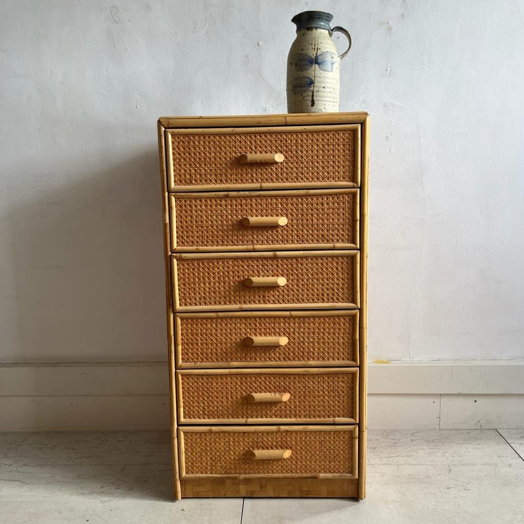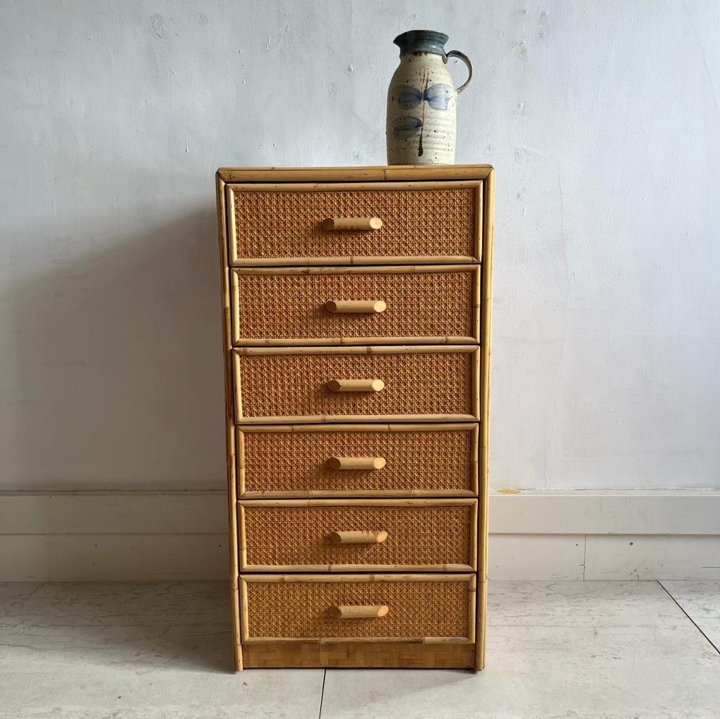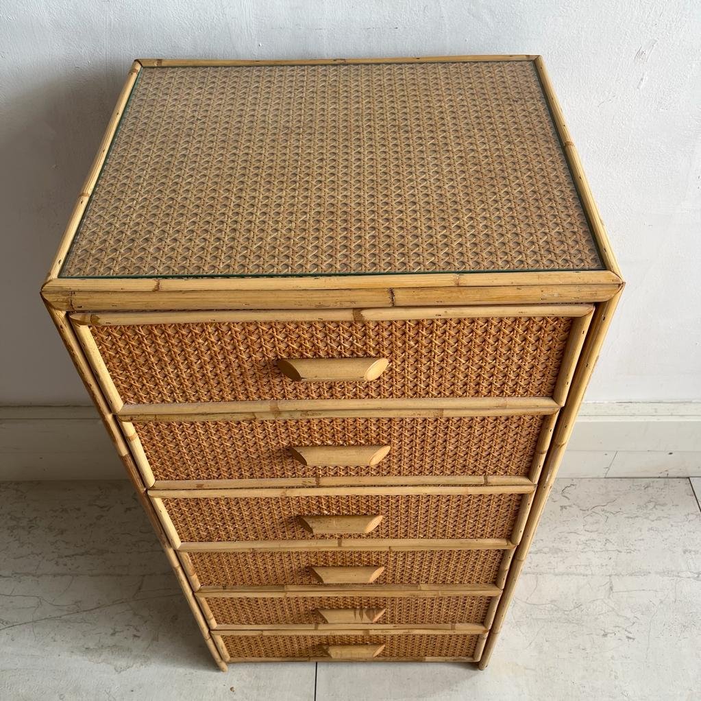Vintage Chest of Drawers in Cane and Bamboo, 1970s