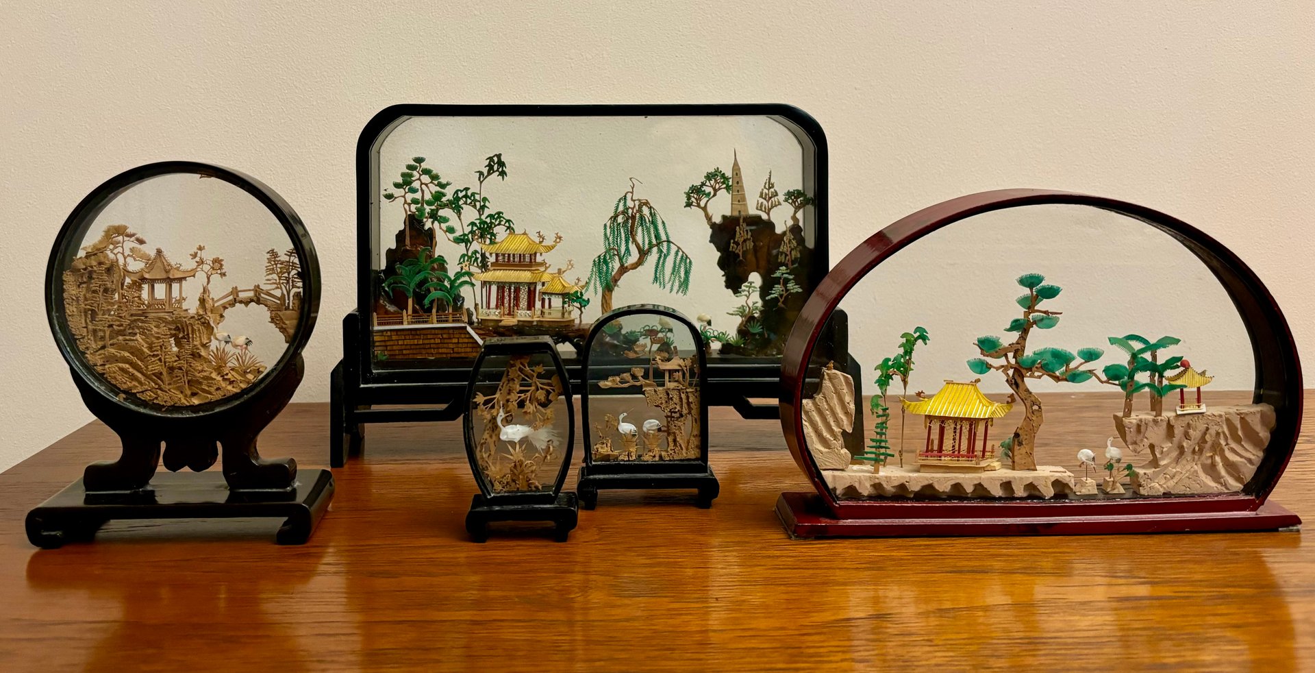 Vintage Chinese Dioramas, 1955, Set of 5