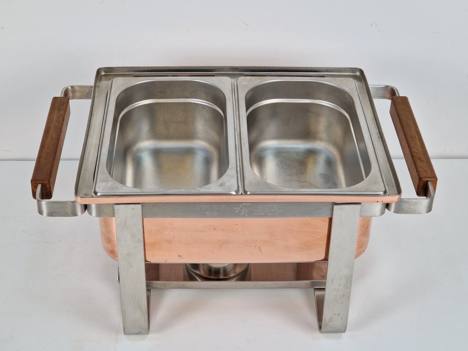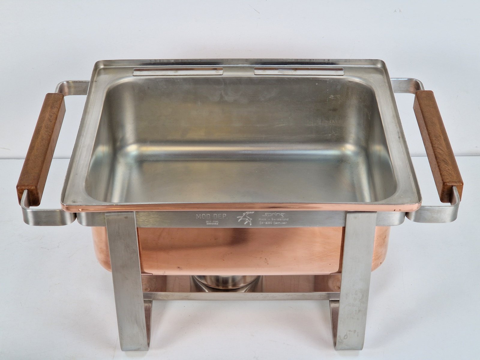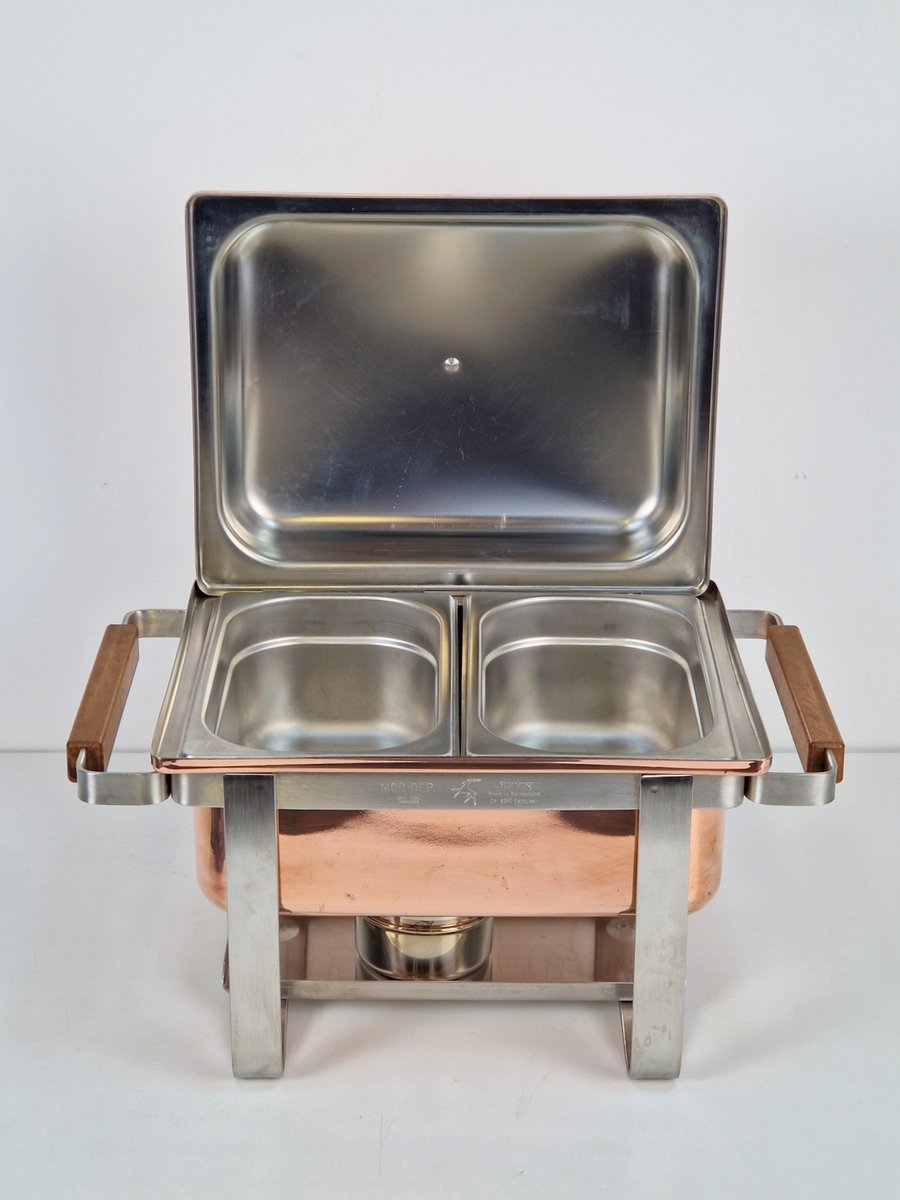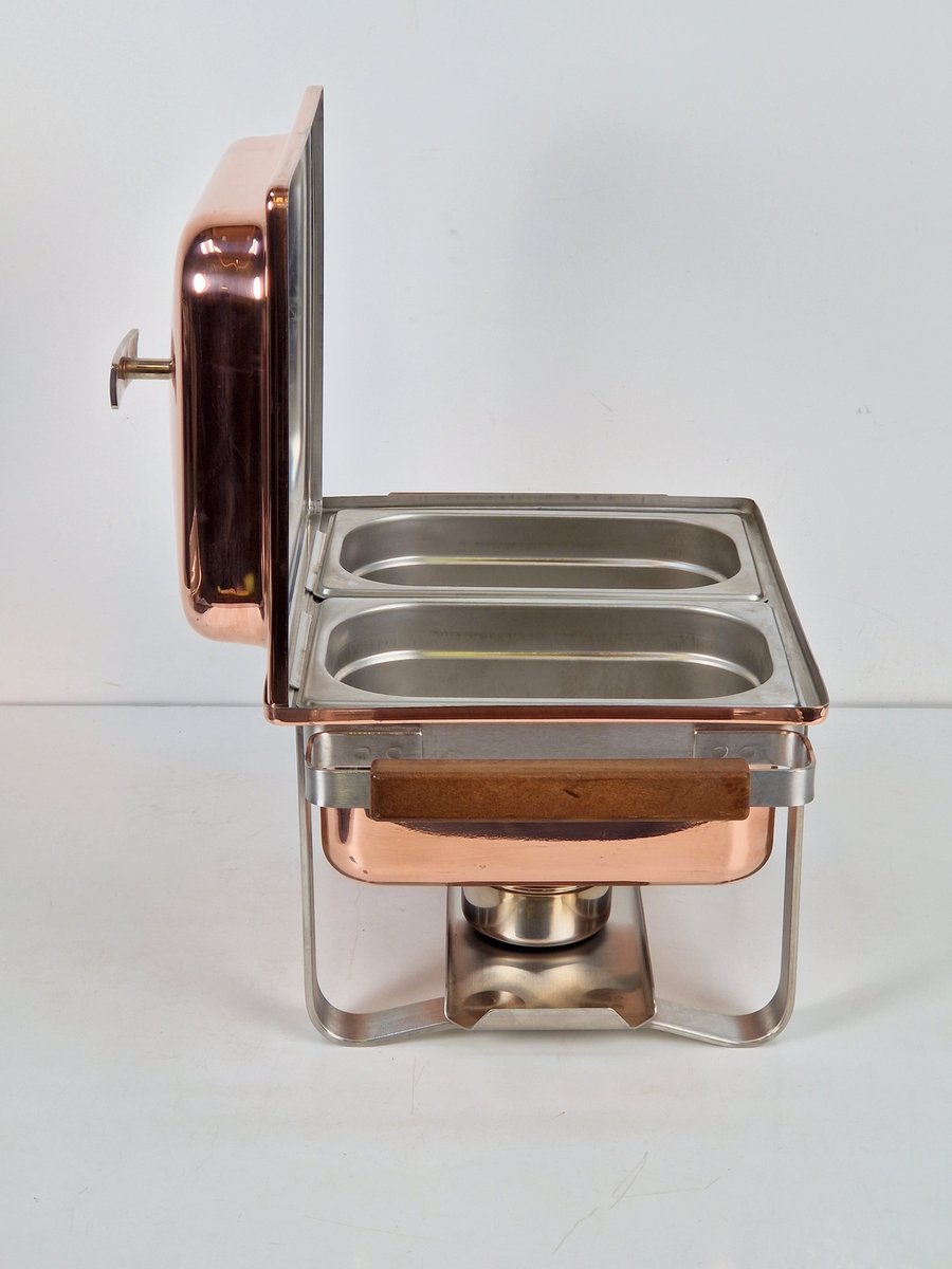Vintage Copper-plated Stainless Steel Spring Chafing Dish, Switzerland, 1980s