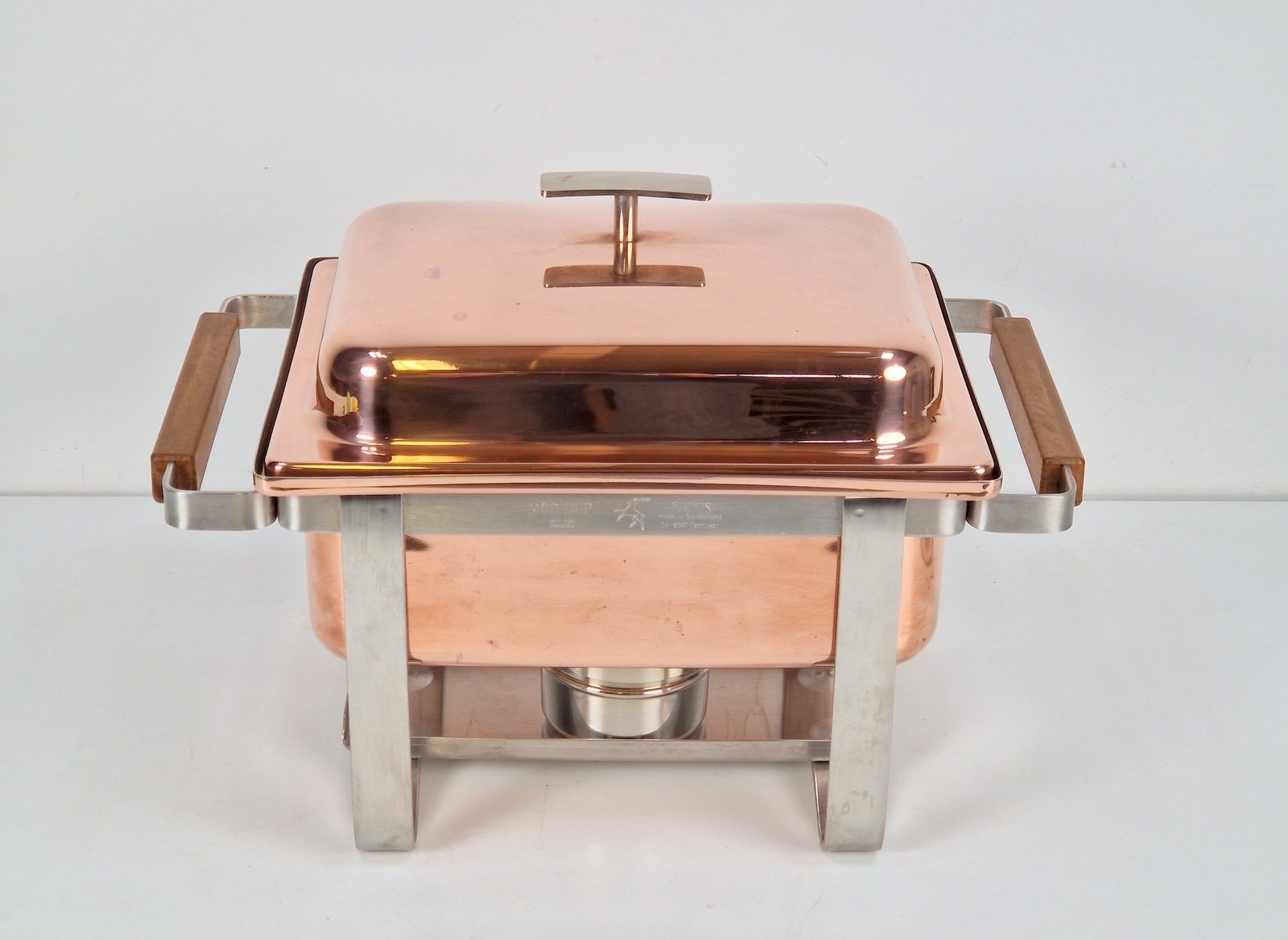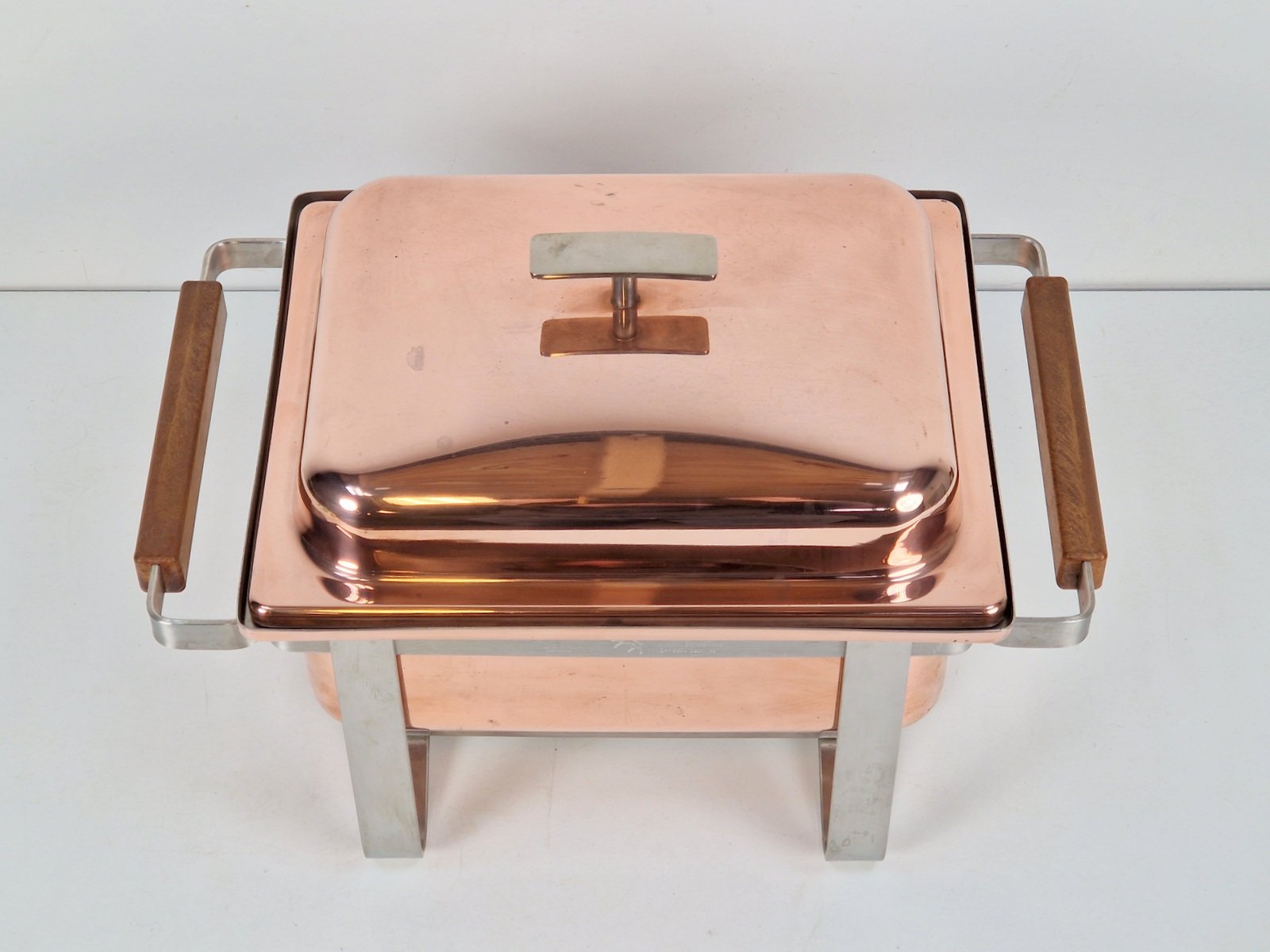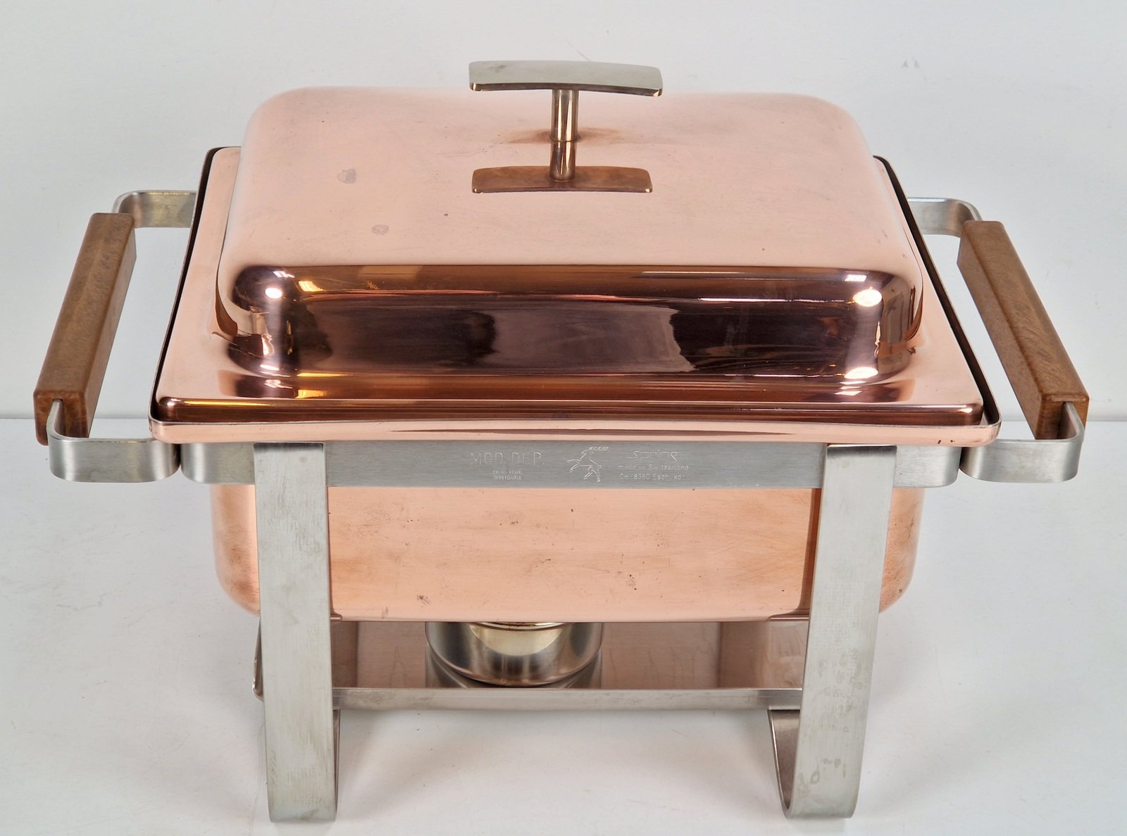 Vintage Copper-plated Stainless Steel Spring Chafing Dish, Switzerland, 1980s