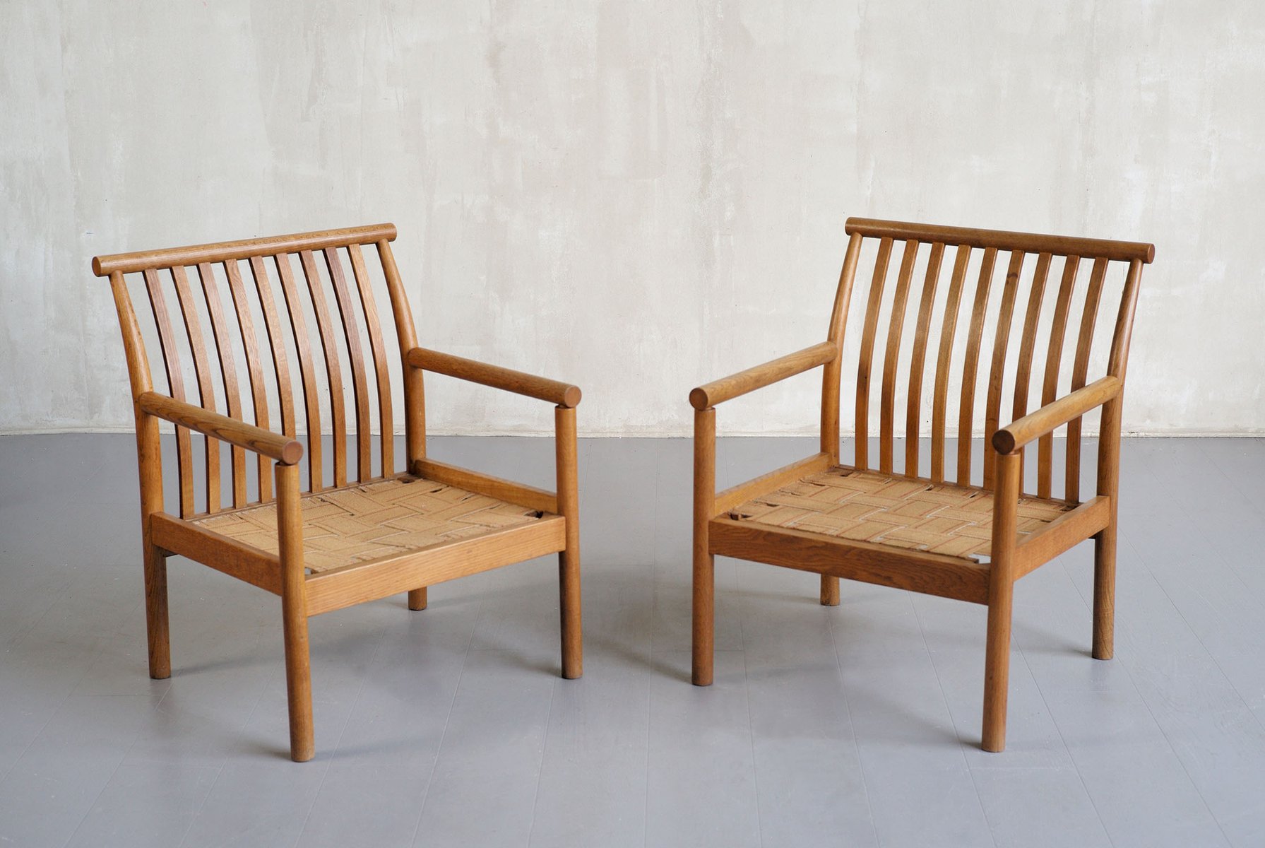 Vintage Curved Oak Armchairs by Isamu Kenmochi, Japan, 1960s, Set of 2