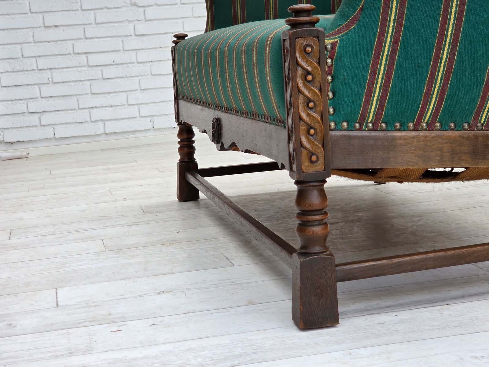 Vintage Danish Two-Seater Sofa in Green Furniture Wool and Oak, 1950s
