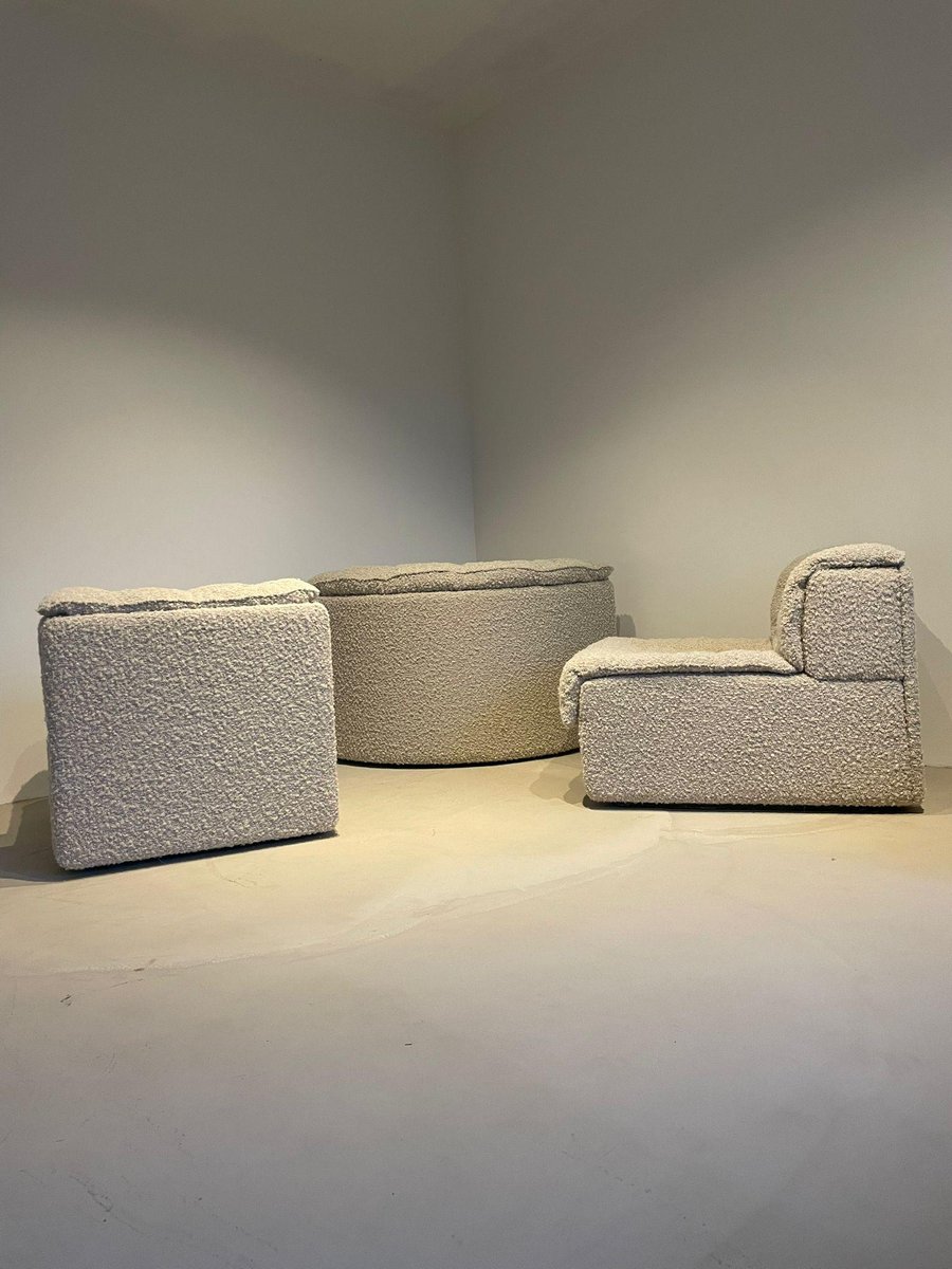 Mid-Century Italian Corolla Lounge Chair by I.P.E in Bouclé