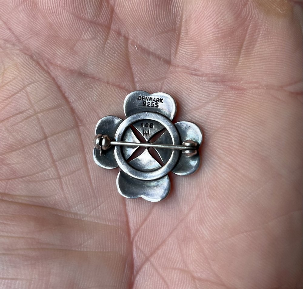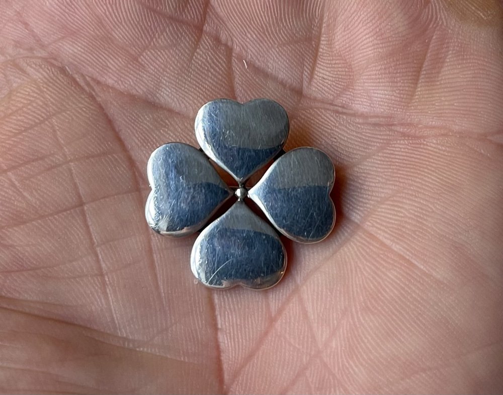 Vintage Four Clover Heart Pin Brooch in Silver from Hans Hansen, 1960s