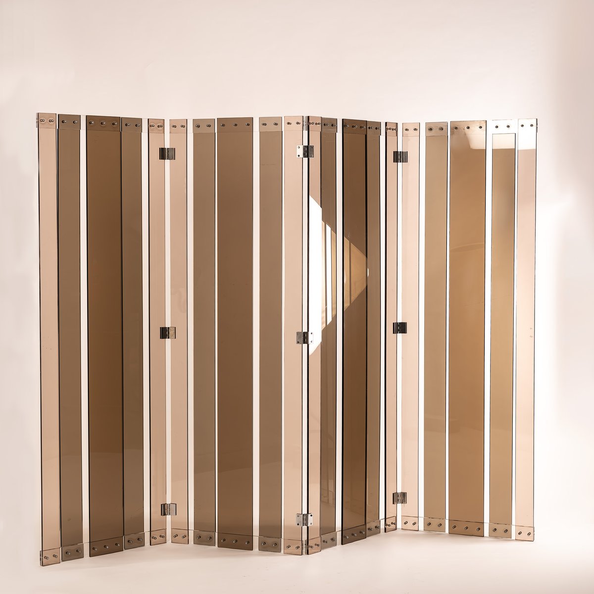 Vintage French 4-Panel Screen in Smoked Acrylic Glass attributed to Philippe Jean, 1970s