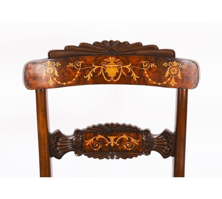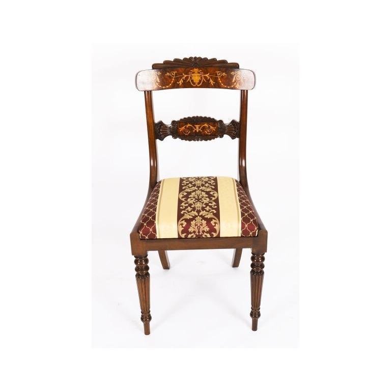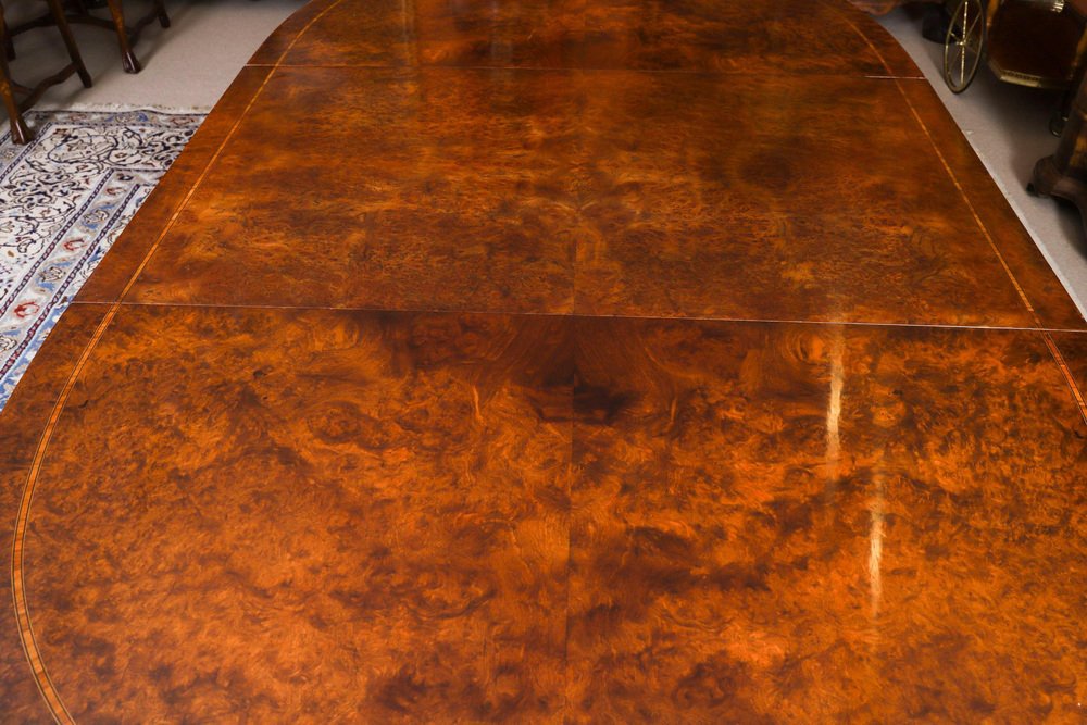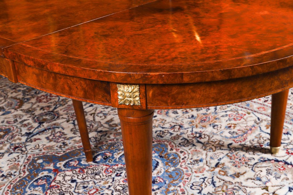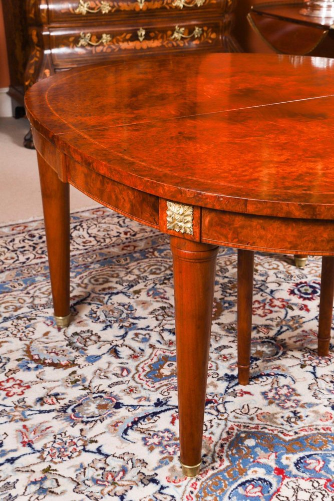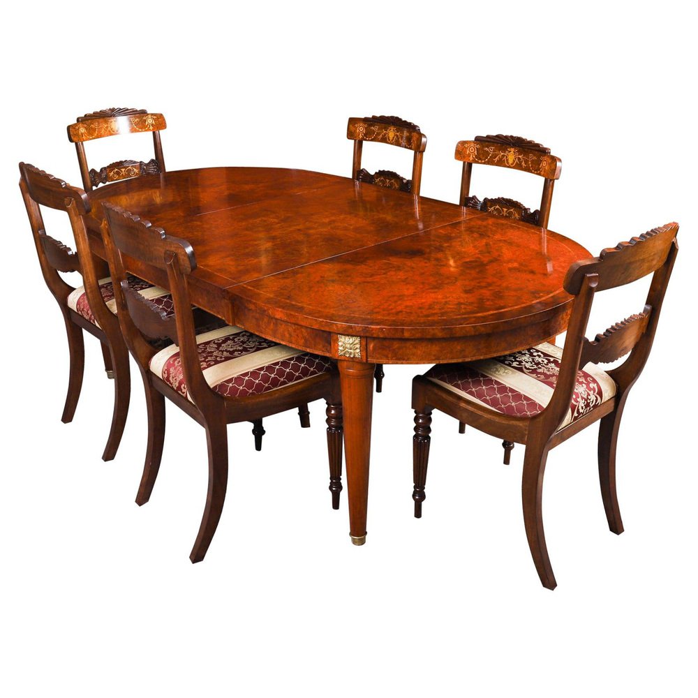 Vintage French Empire Revival Burr Walnut Dining Table and Chairs, 20th Century, Set of 7