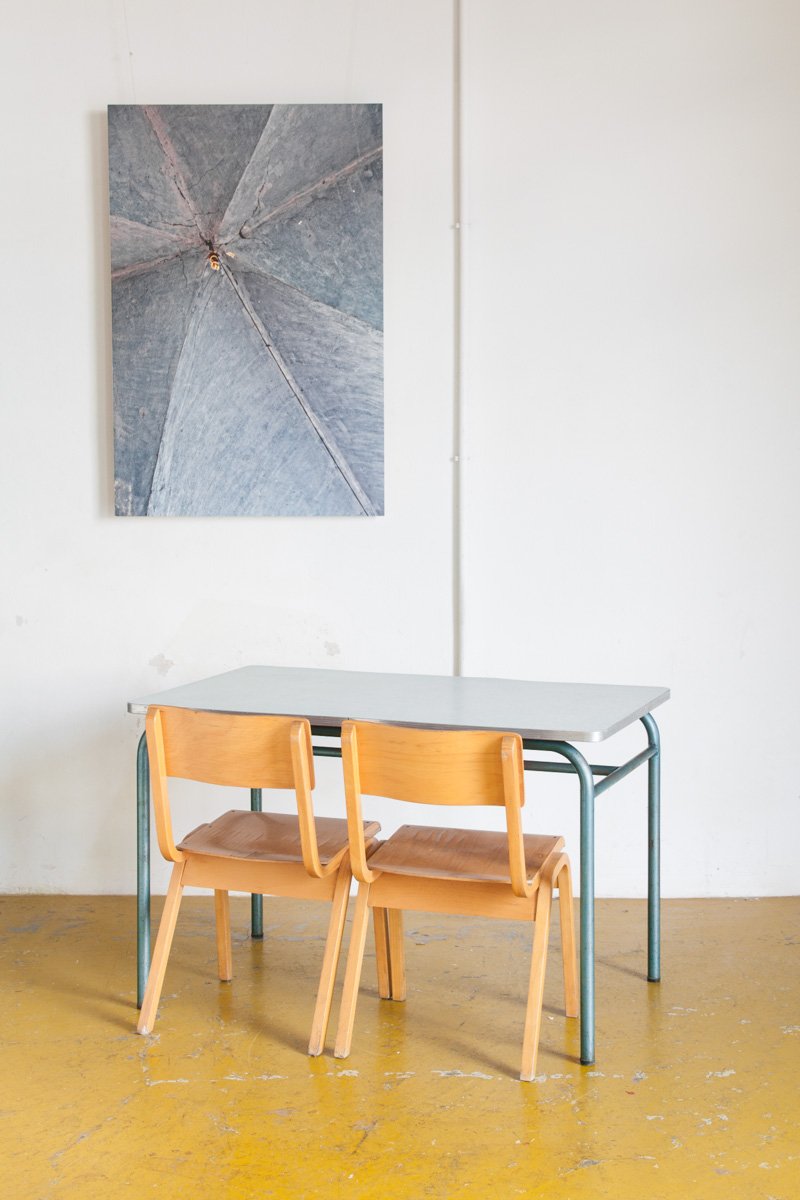 Vintage French Lacquered Iron and Formica Side Table, 1950s
