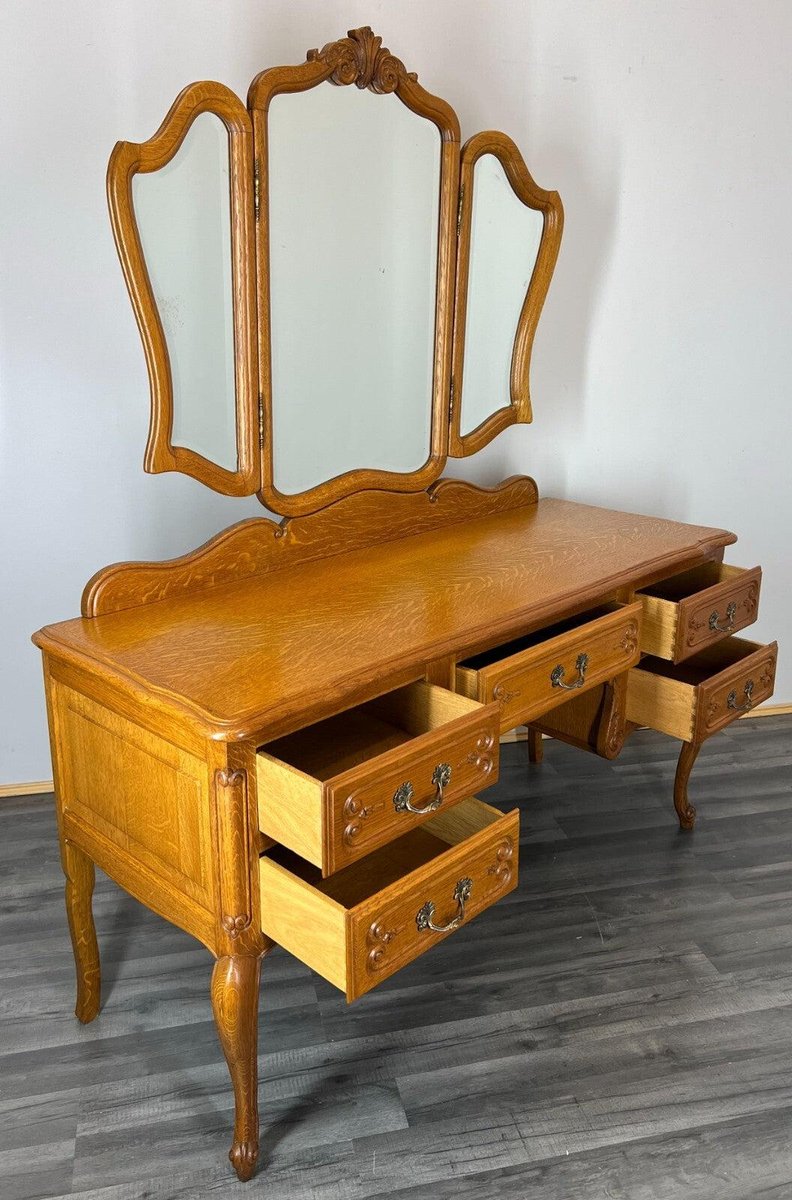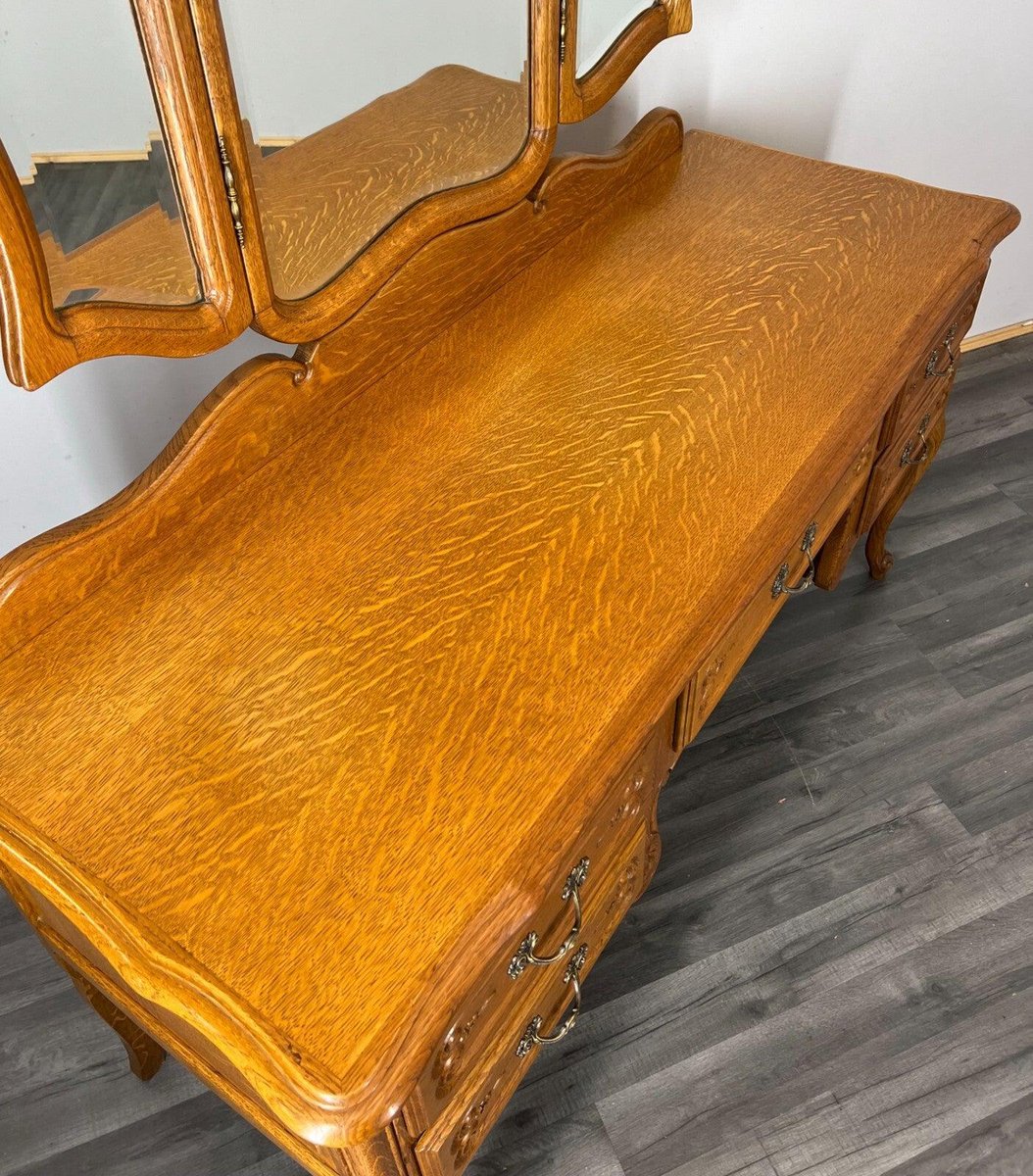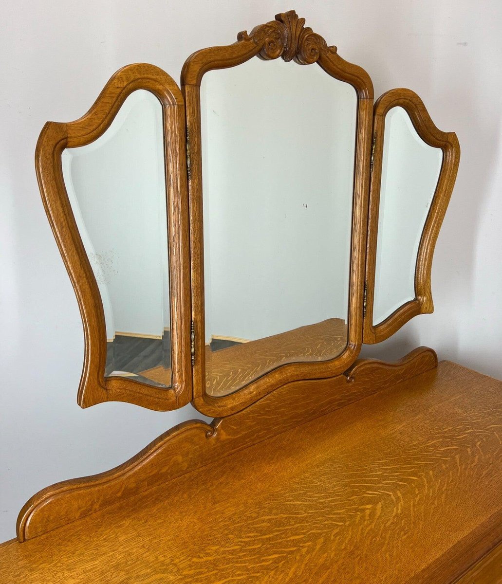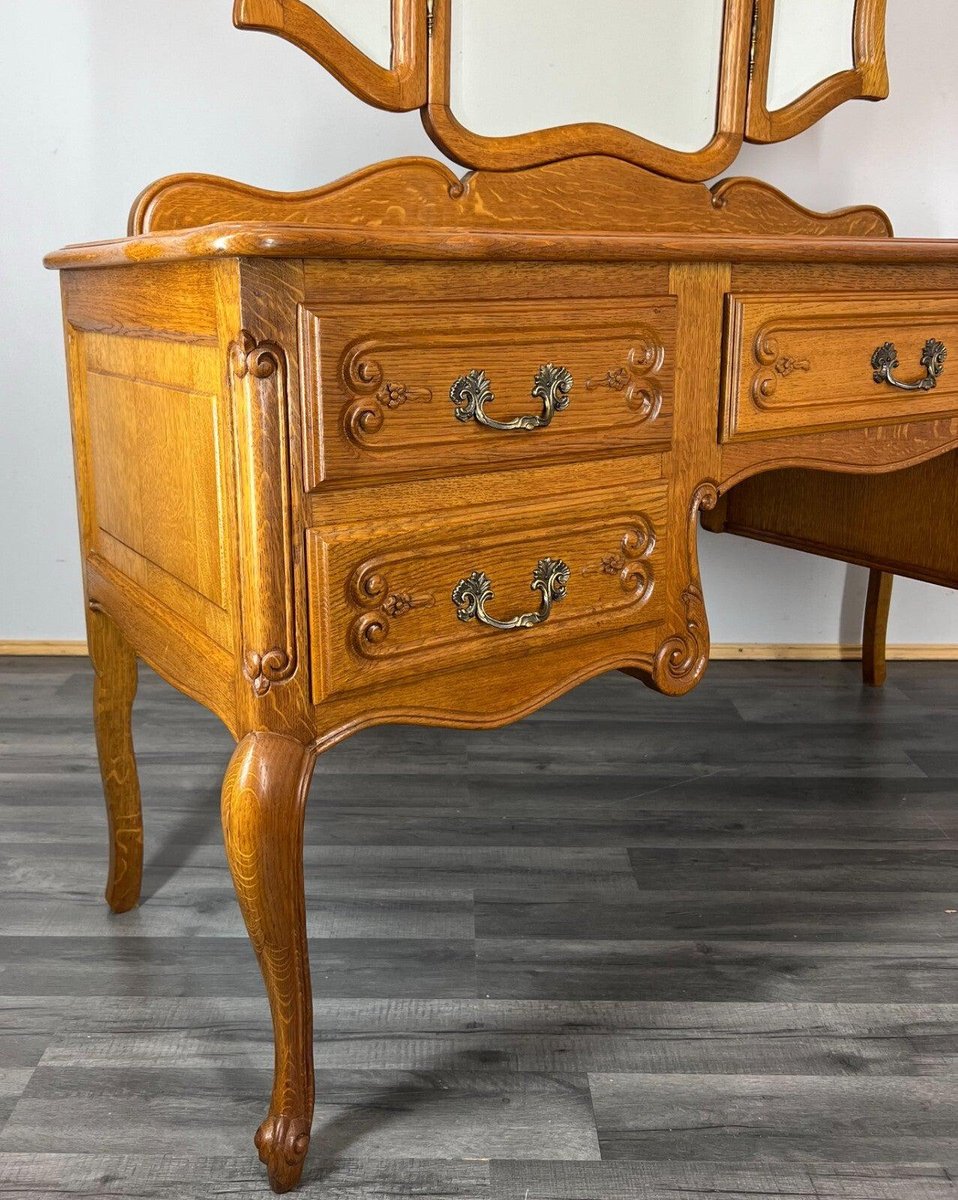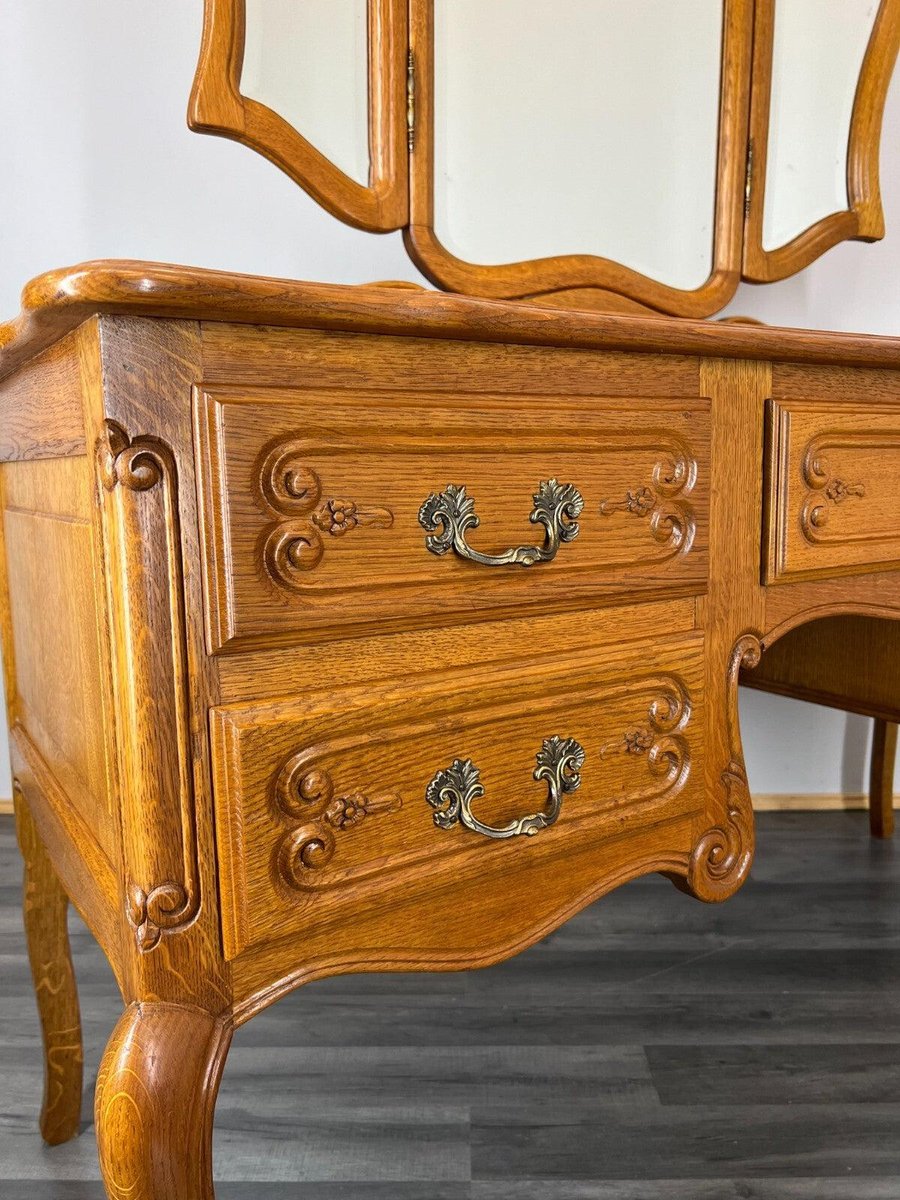 Vintage French Oak Dressing Table with Mirror