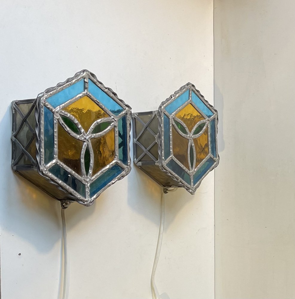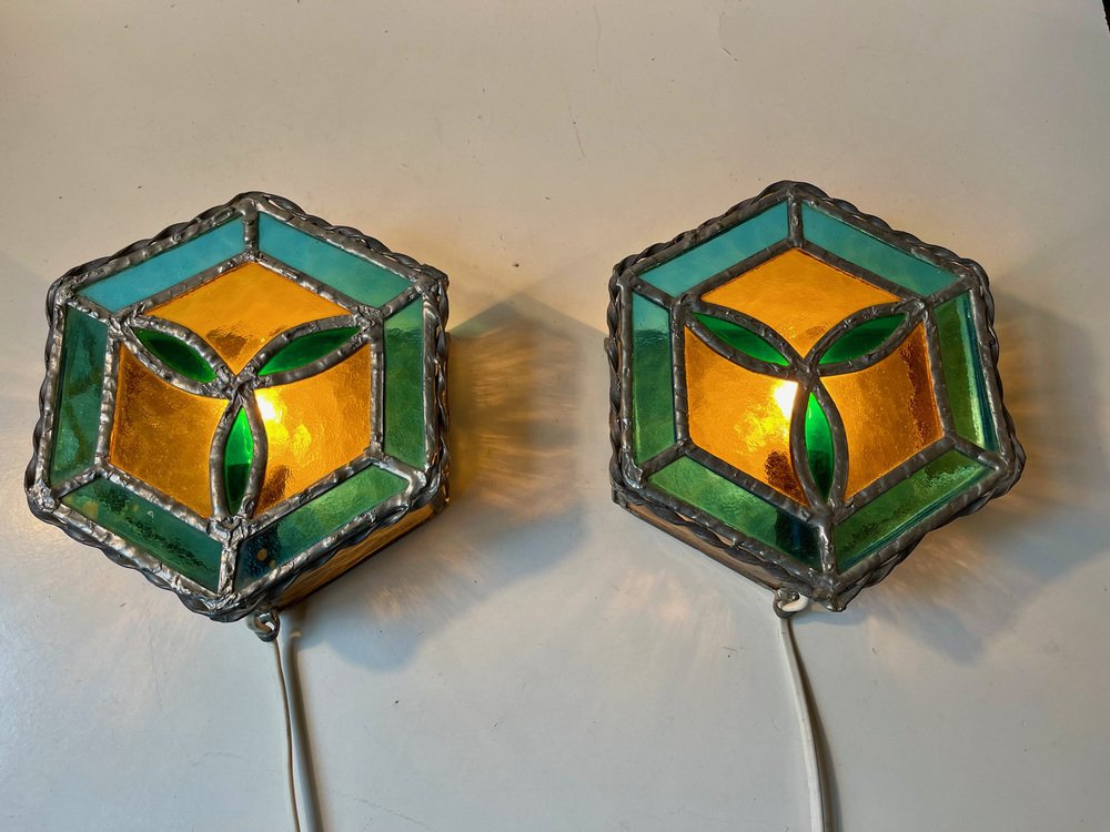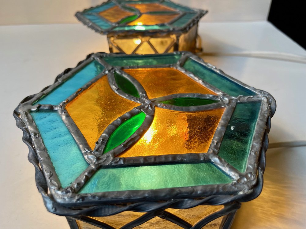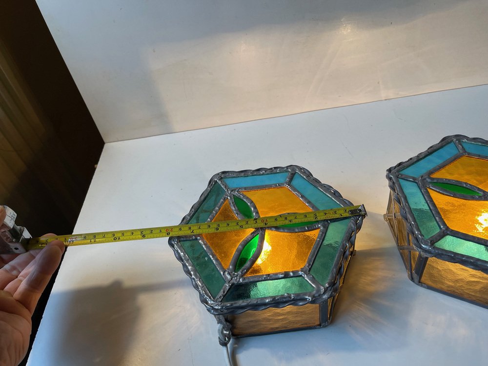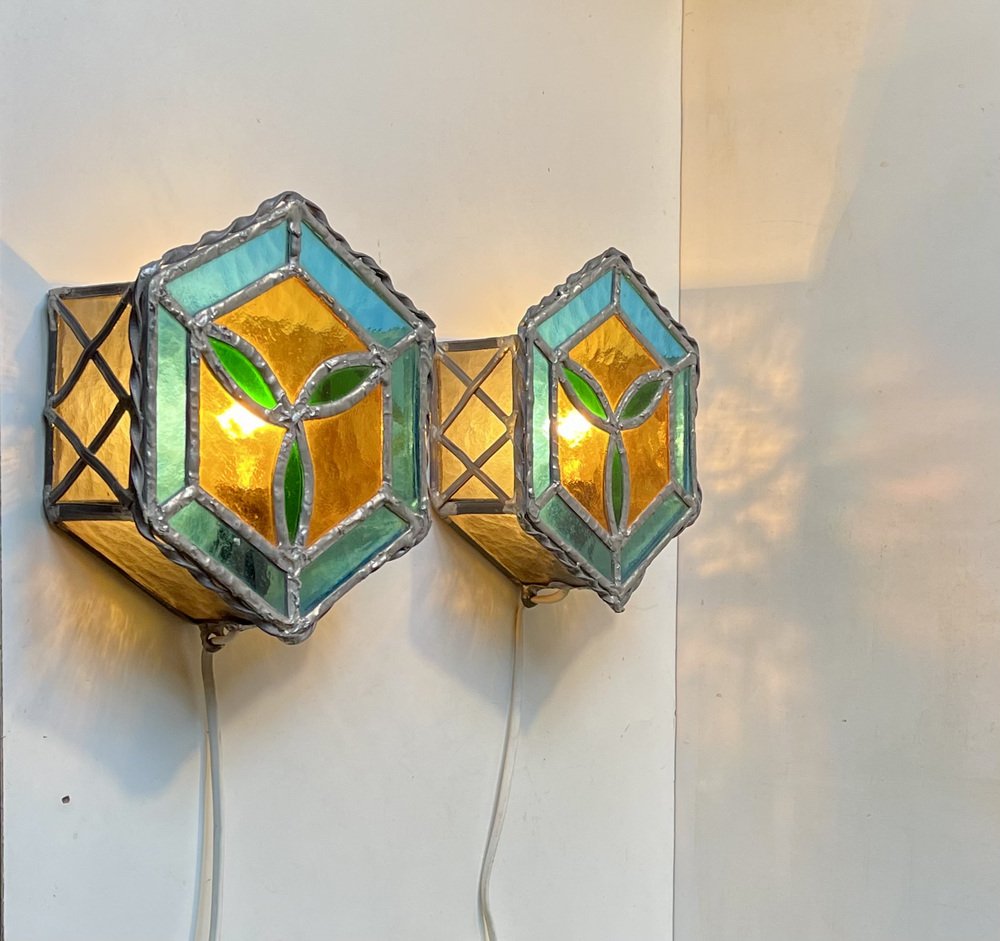 Vintage Gothic Stained Glass Wall Sconces, 1970s, Set of 2