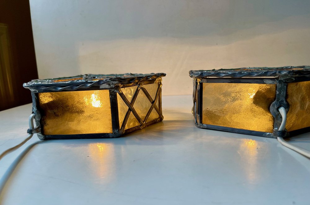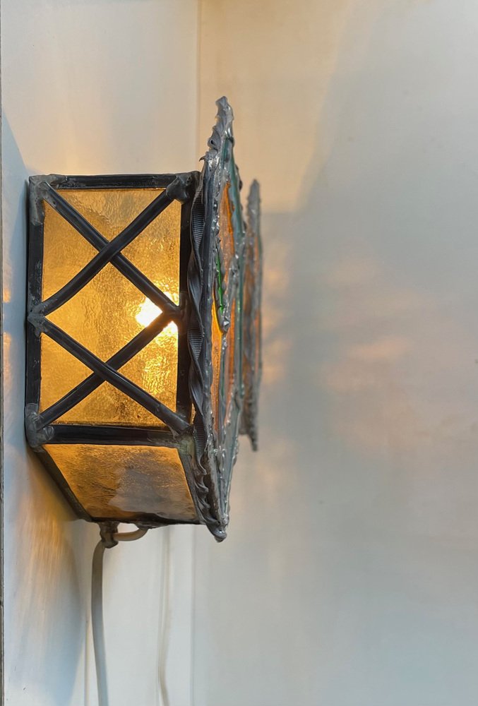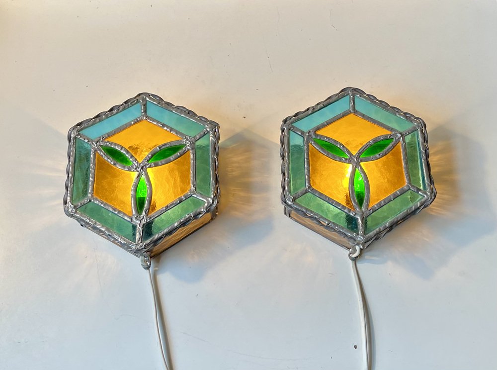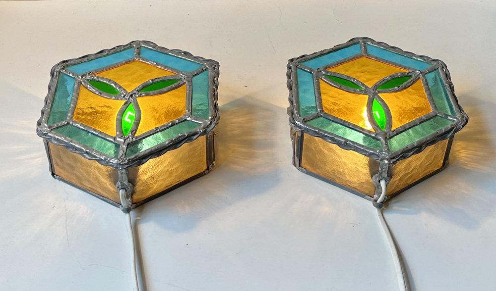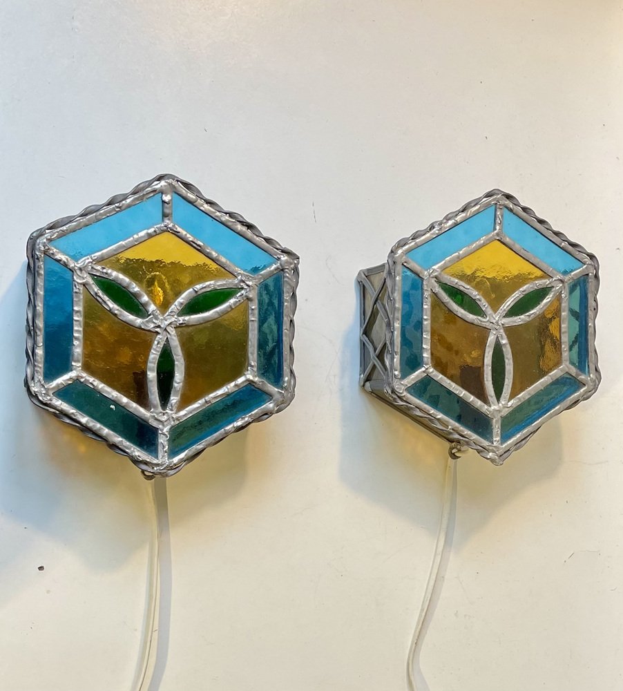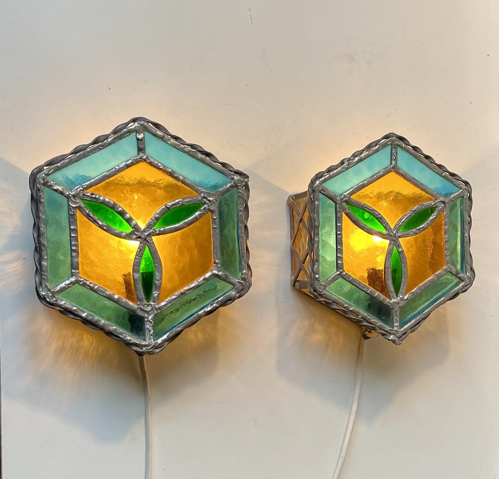 Vintage Gothic Stained Glass Wall Sconces, 1970s, Set of 2