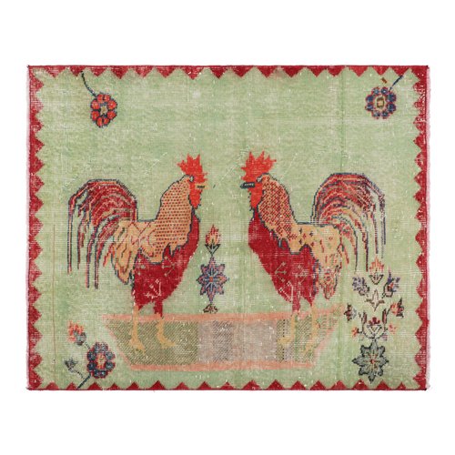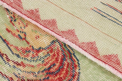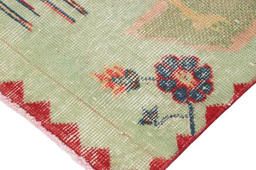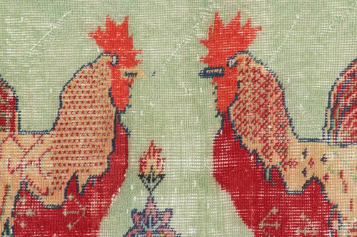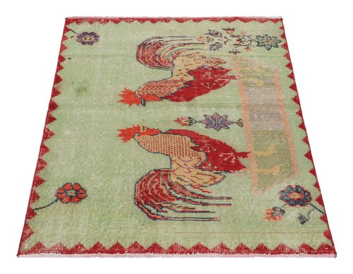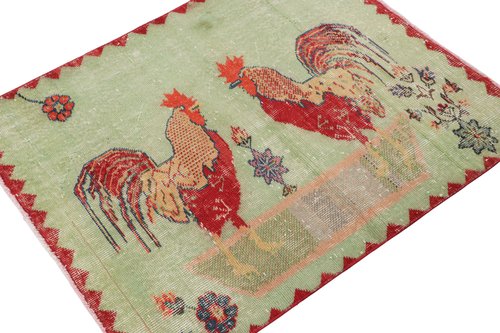 Vintage Green and Red Rug with Pictorials by Zeki Müren