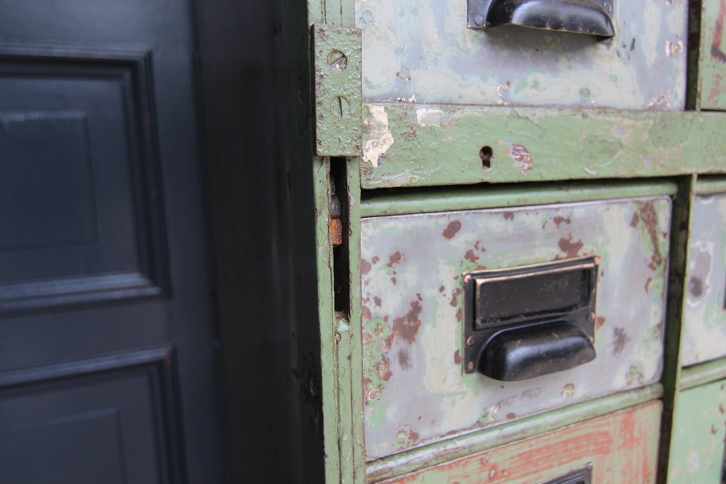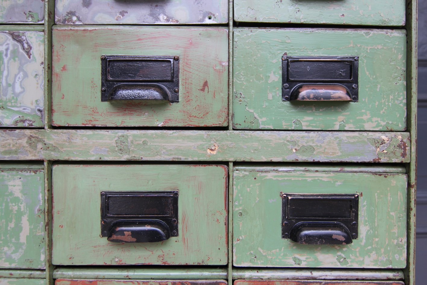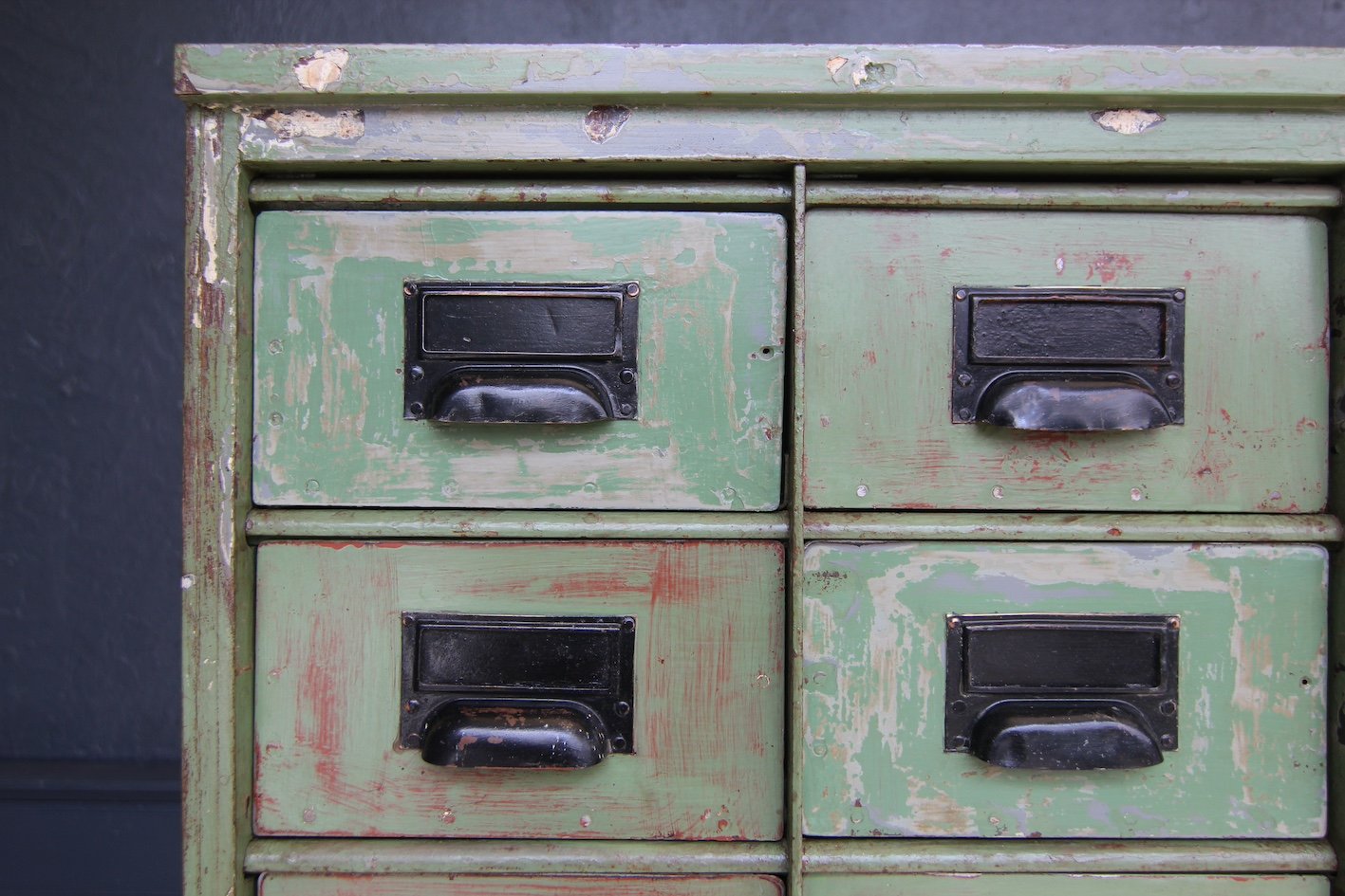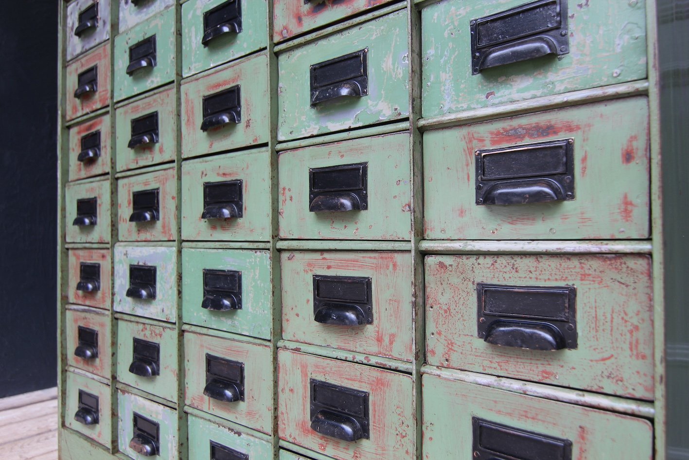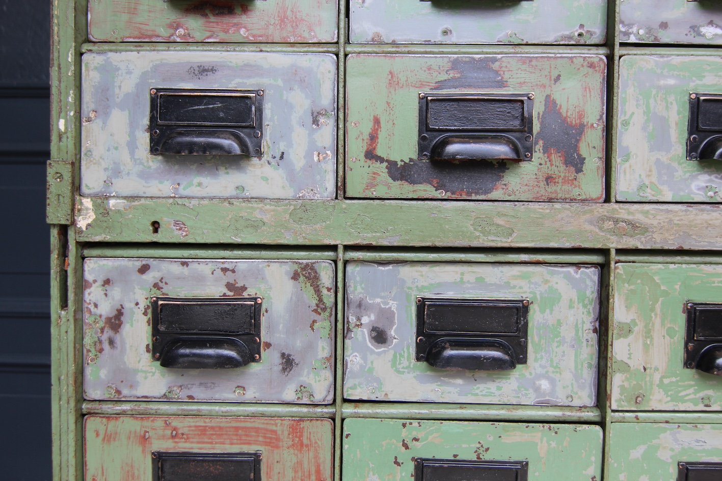 Vintage Industrial Metal Drawer Cabinet, 1920s