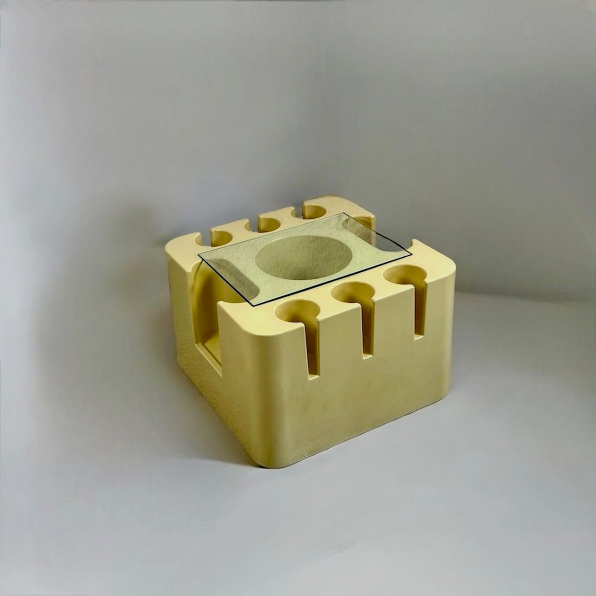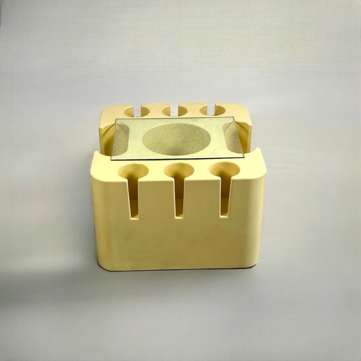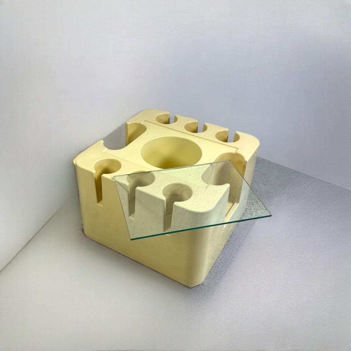 Mazza continued to contribute to Artemide’s ever-evolving collections over the following decades, including fiberglass molded seating and other home furnishings for Artemide throughout the 1960s, which were produced for a short period time, and are highly-sought after by collectors today. He also spearheaded the company’s mission to develop distinctive, architecturally-driven lamps, pendants, and other fixtures in collaboration with major design talents from around the world. Notable designs include the Delta Lamp (1963), Mida Armchair (1966), Bacco Bar (1967), the stacking Toga Chair (1968), which is made from one continuous piece of fibreglass and was first shown at the International Furniture Exhibition in Milan in 1969.