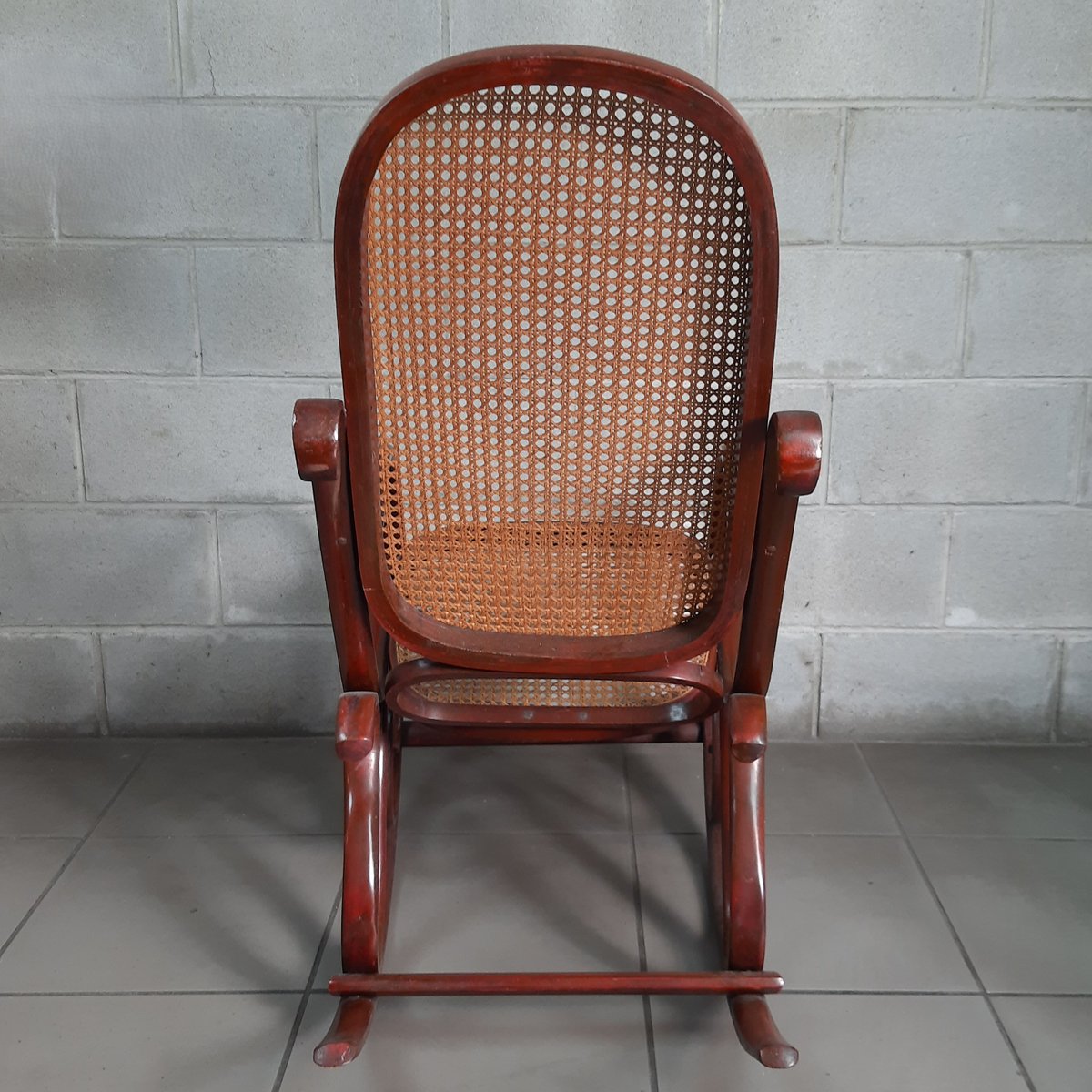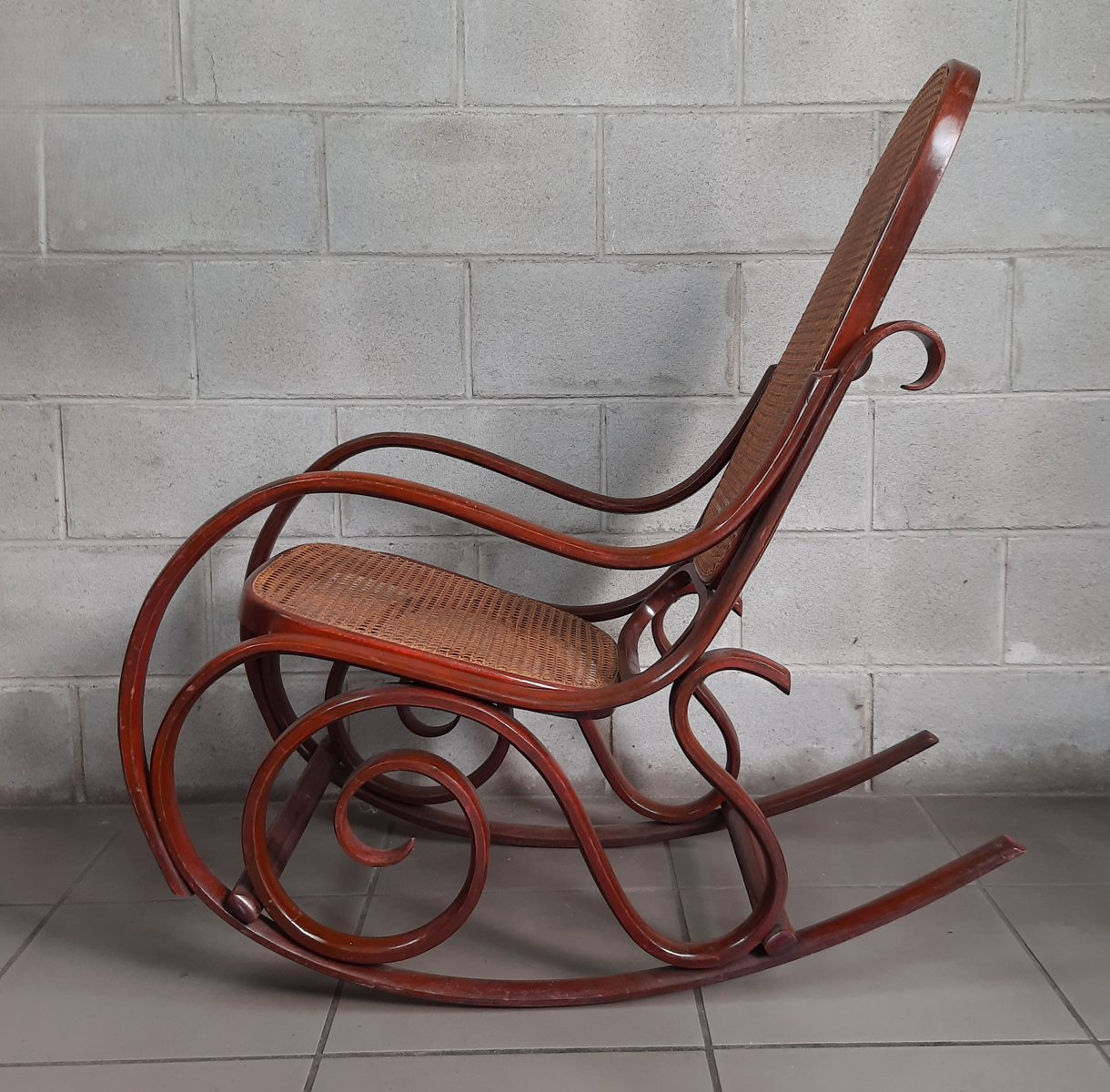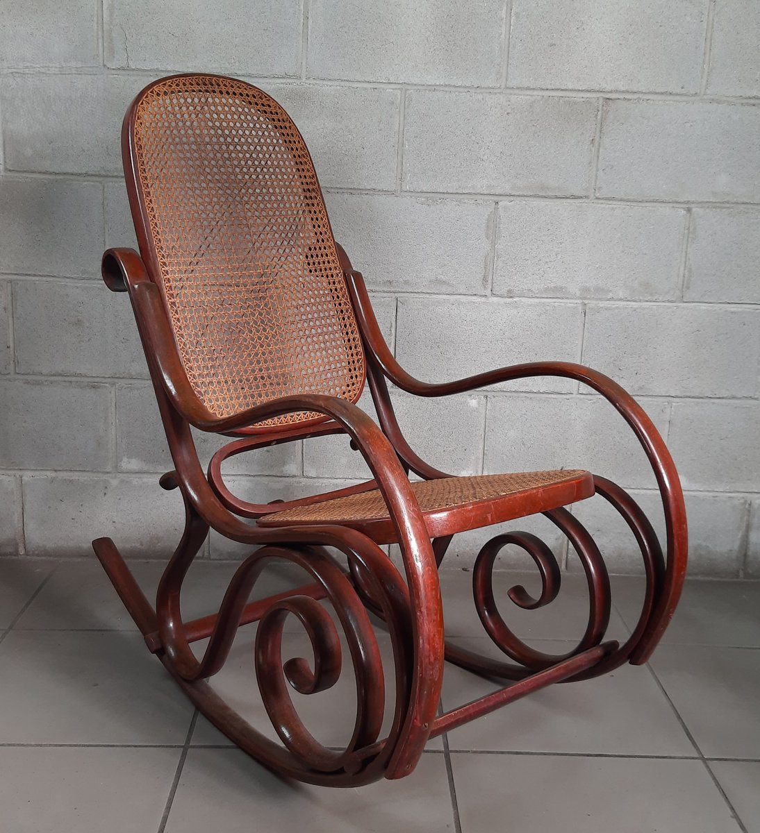 Vintage Italian Bentwood Rocking Chair with Vienna Straw, 1920s