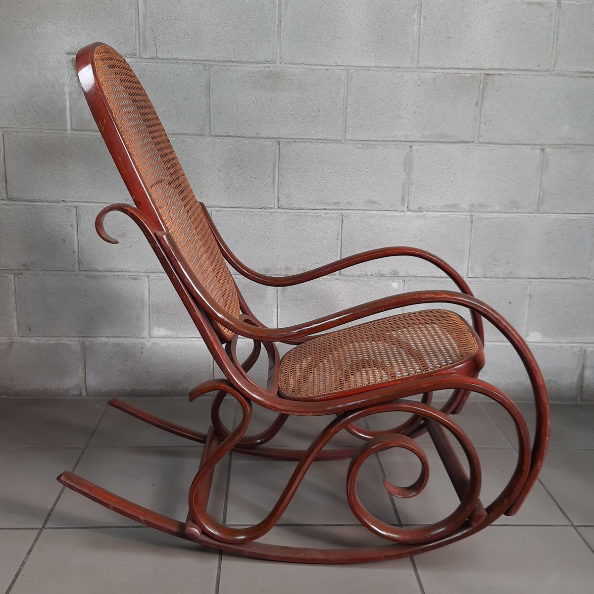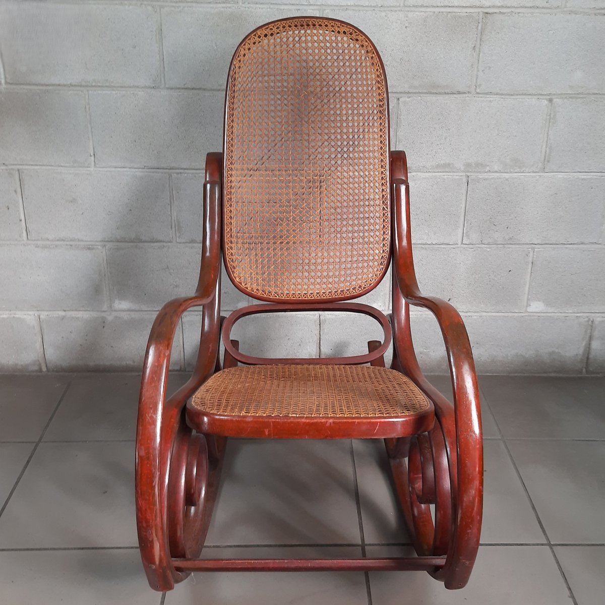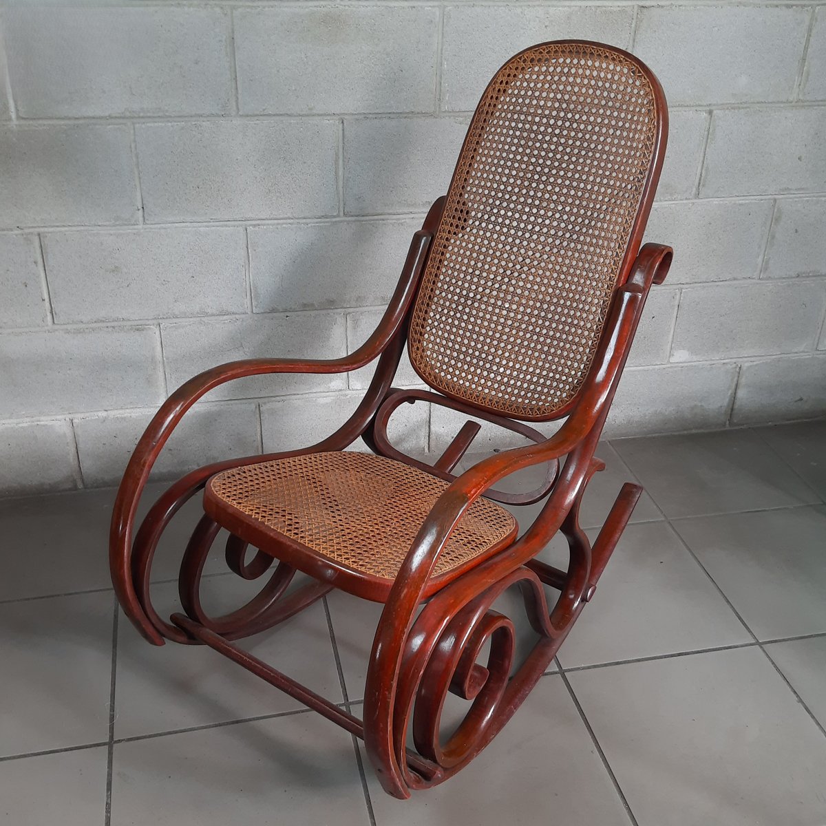Vintage Italian Bentwood Rocking Chair with Vienna Straw, 1920s