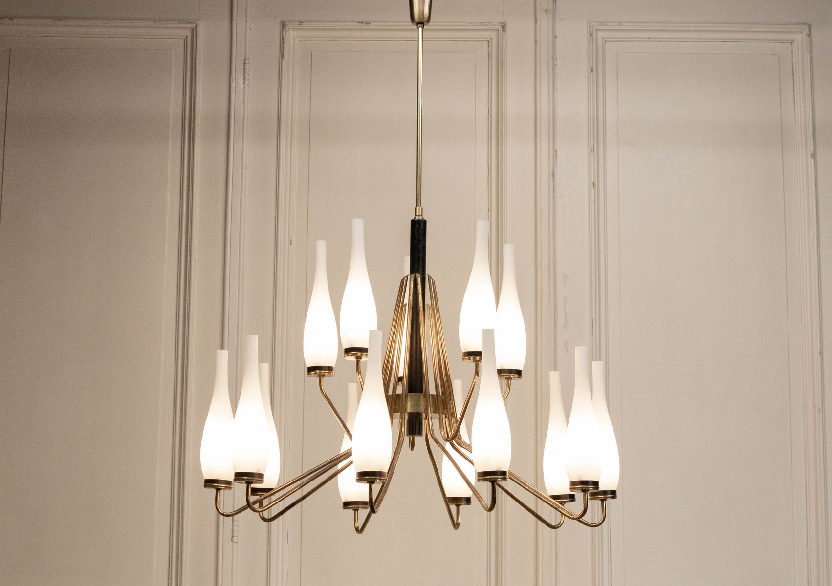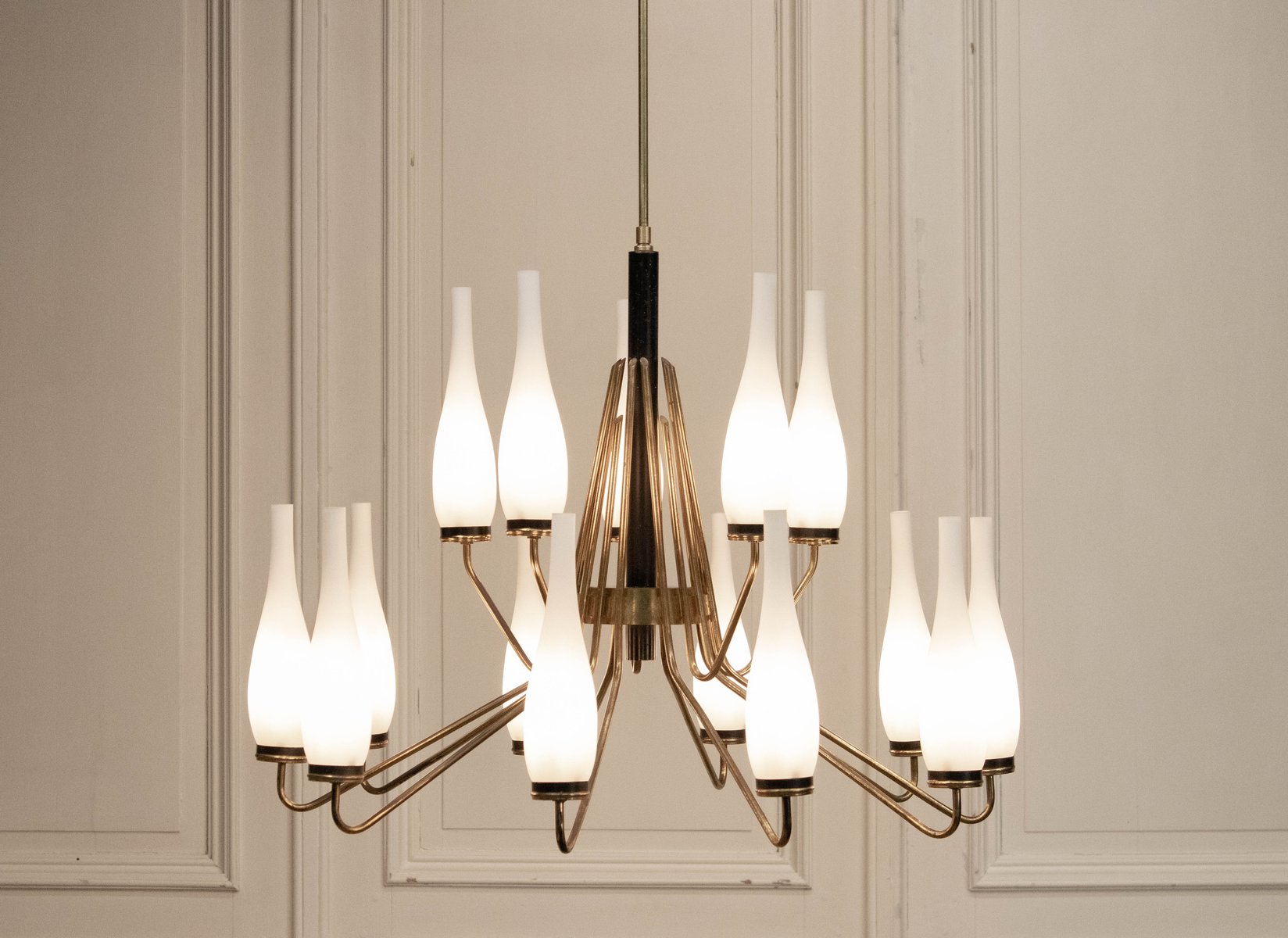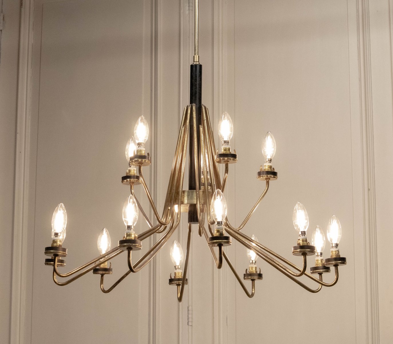 Vintage Italian Brass Chandelier from Stilnovo, 1950s
