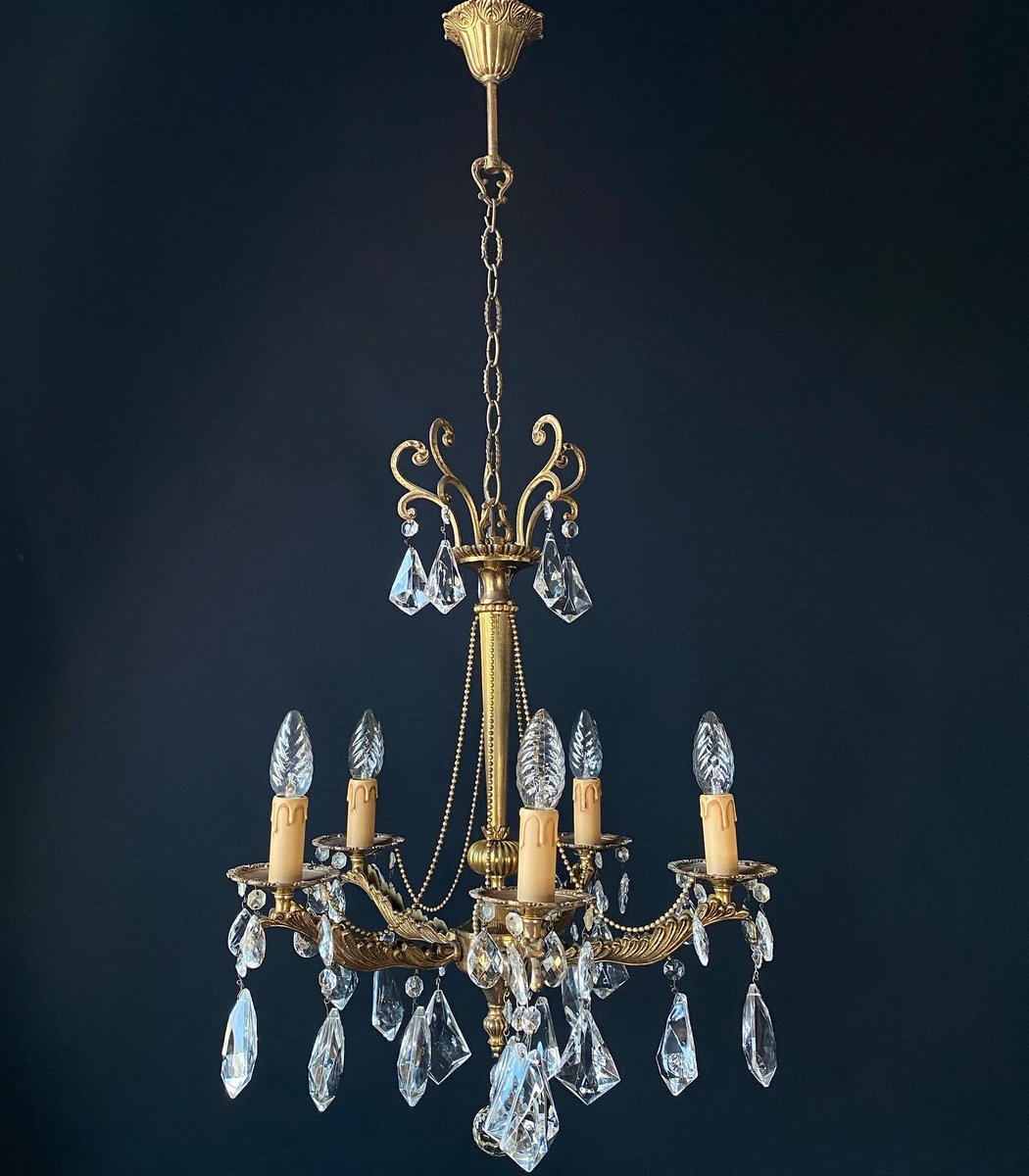 Vintage Italian Chandelier in Bronze and Brass, 1950s