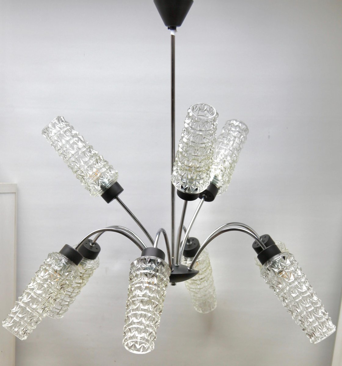 Vintage Italian Chandelier with Nine Arms and Chrome Details from Stilnovo, 1960s