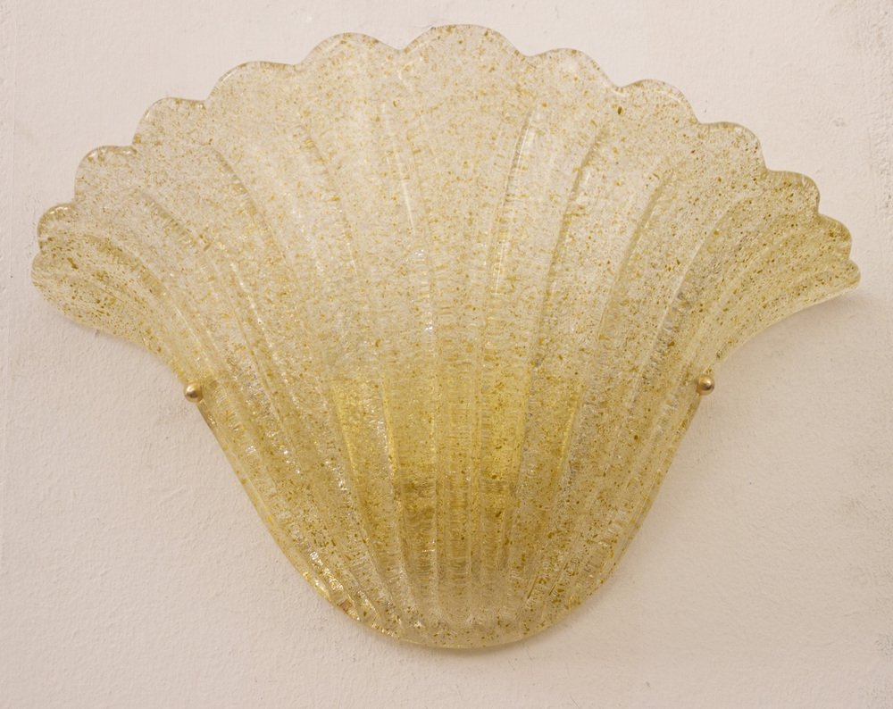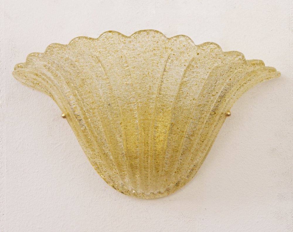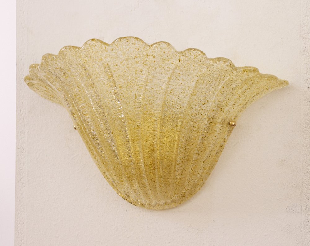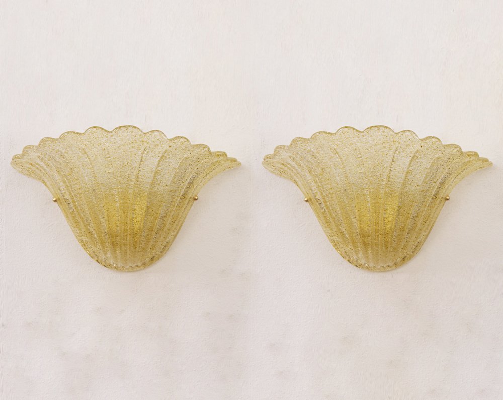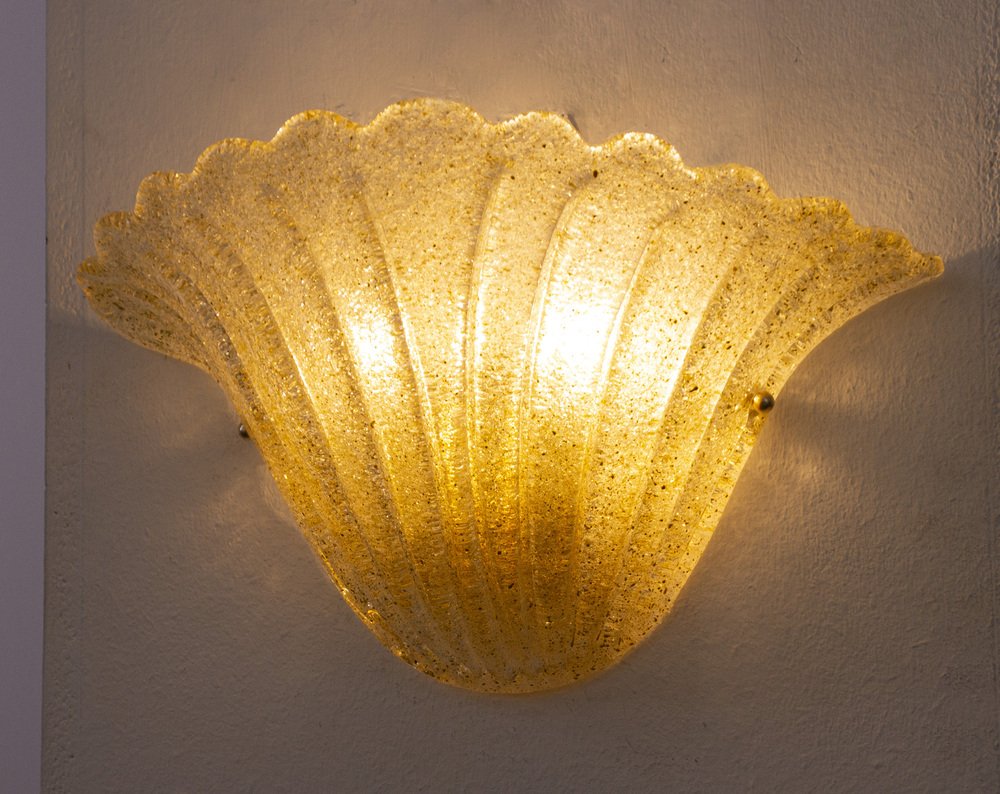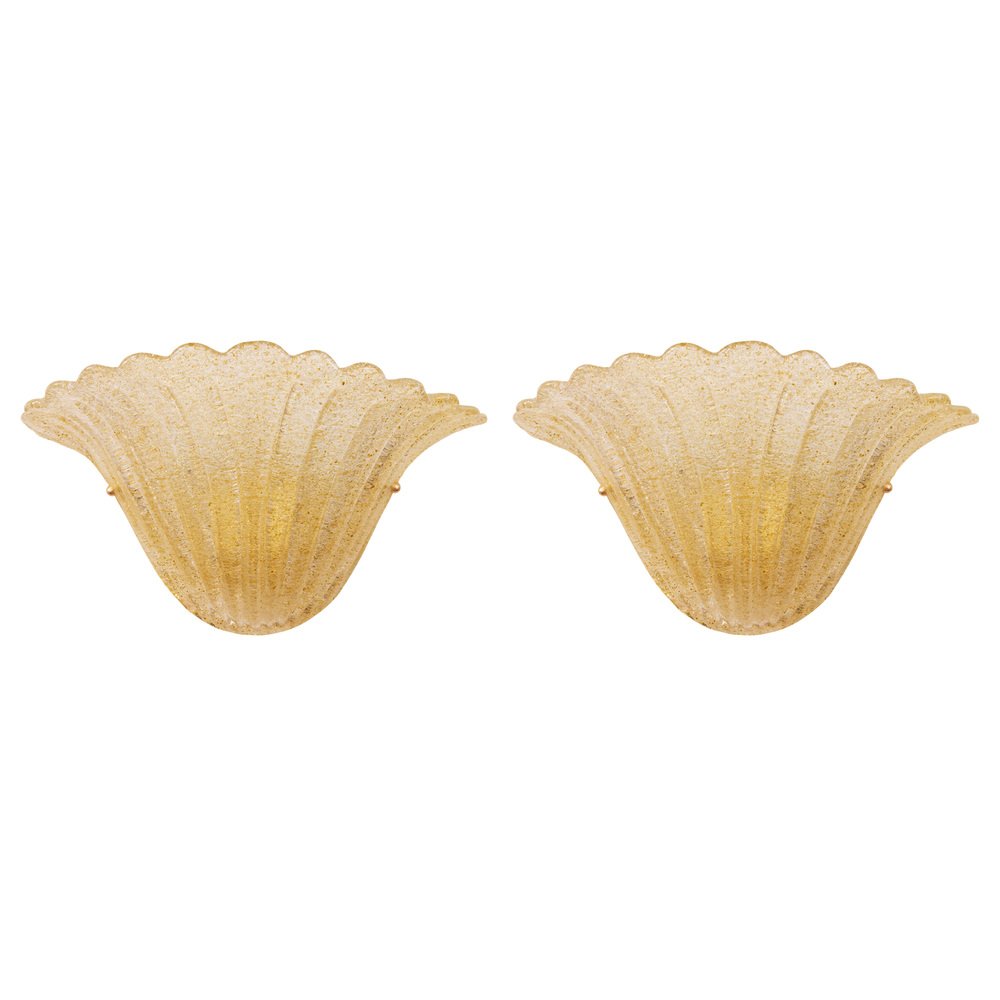 Vintage Italian Goldish Murano Glass Wall Sconces with Grit, 1990s, Set of 2