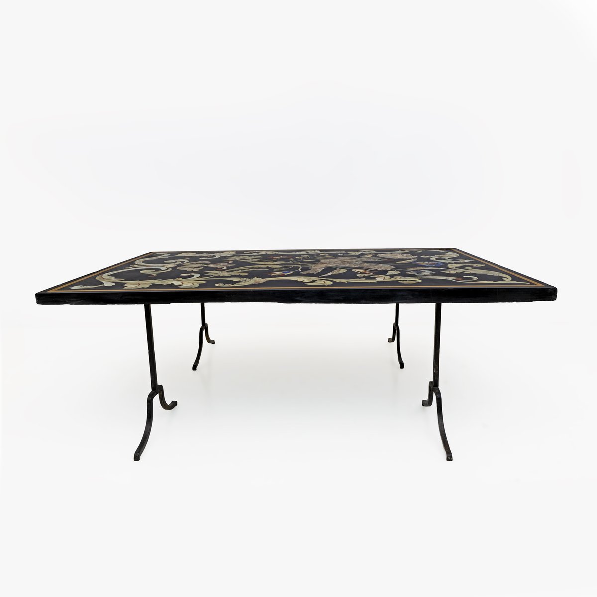 Vintage Italian Handmade Wrought Iron Coffee Table Frame with Inlaid Marble Top, 1990