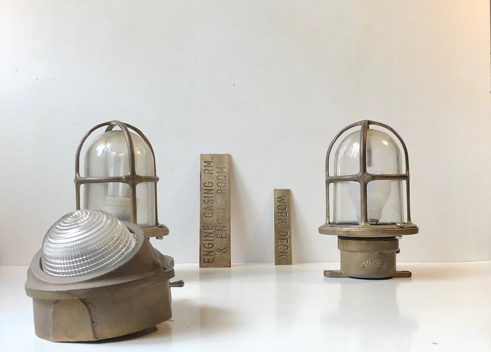 Vintage Italian Marine Ship Lights in Bronze from Miletich, 1970s, Set of 3